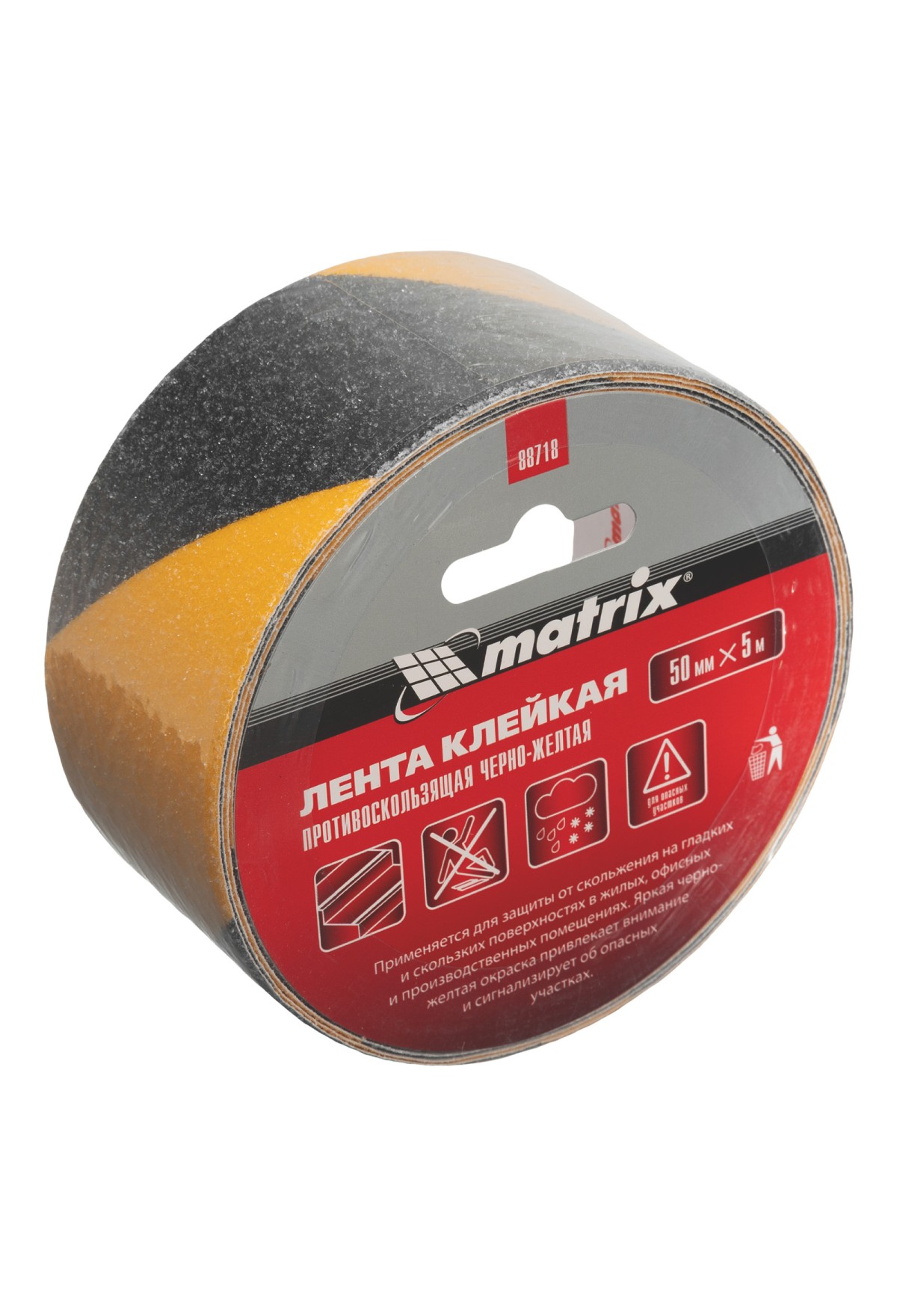 • Лента клейкая противоскользящая, черно-желтая 50 мм x 5 м Matrix