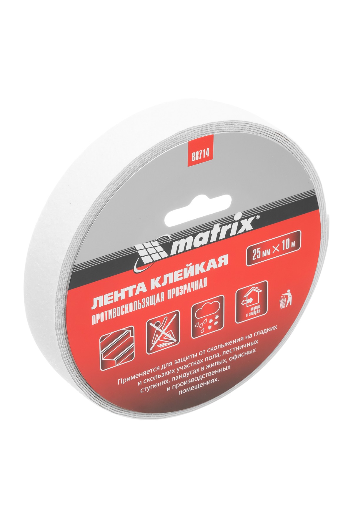 Клейкая противоскользящая лента Matrix 88714, прозрачная, шириной 25 мм и длиной 10 м, позволяет снизить риск получения травм на лестницах, кафеле и других скользких поверхностях. Пригодится в помещениях с большой посещаемостью: общественных зданиях, многоквартирных домах, бассейнах и др. Благодаря прочному клеевому составу лента крепится на любые поверхности: ламинат, кафель и т. д. Ленту следует монтировать при температуре выше +12 ℃ на предварительно очищенную сухую поверхность.