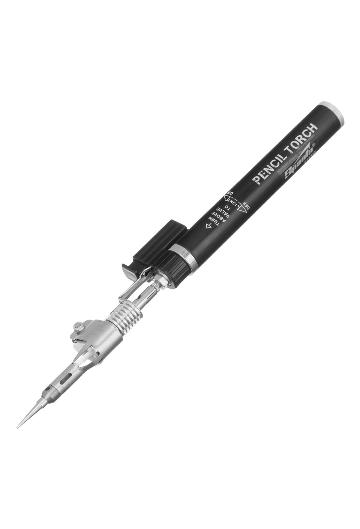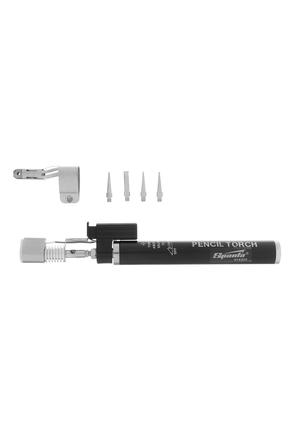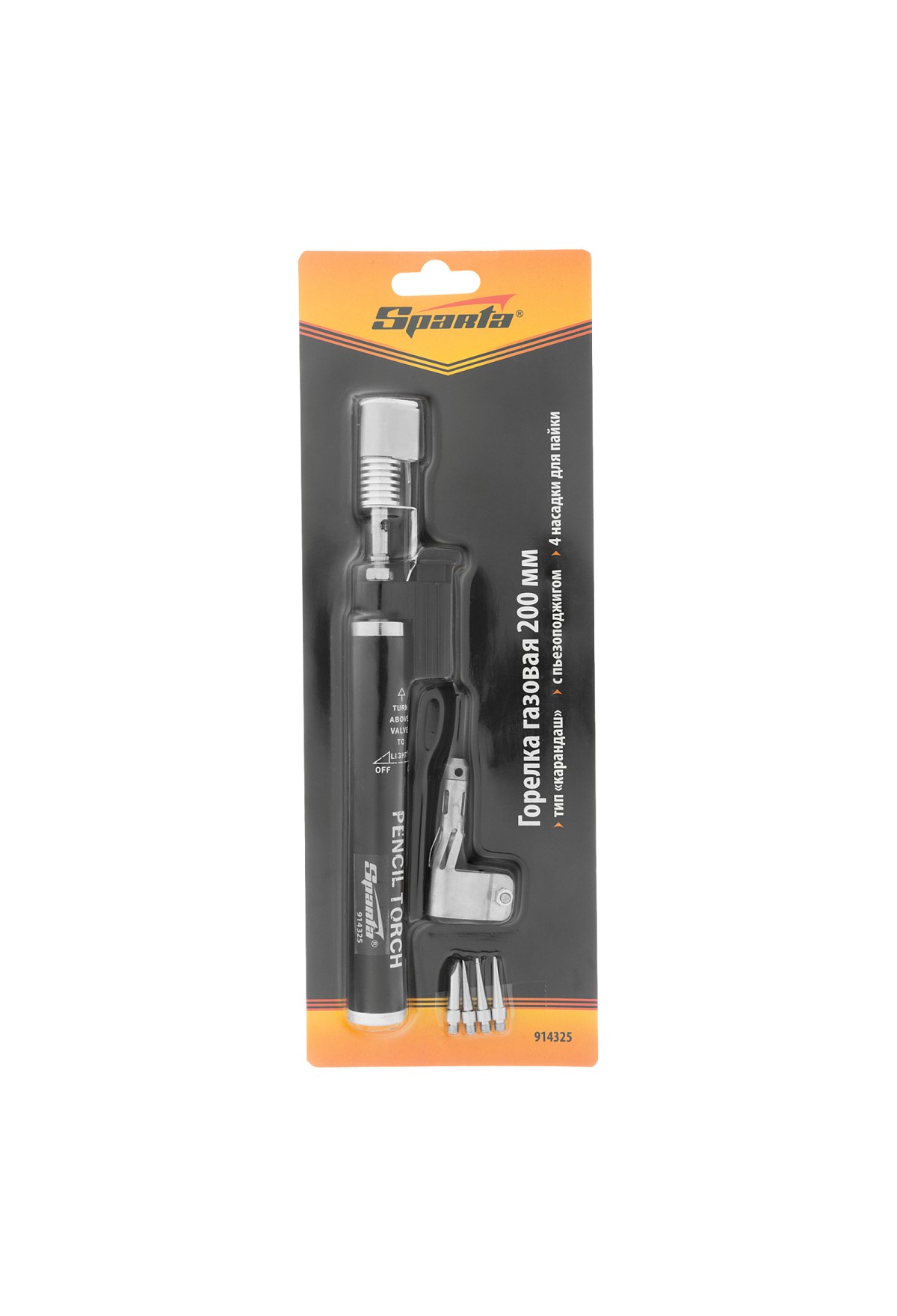 Газовая горелка Sparta 914325 типа «Карандаш», длиной 200 мм, с пьезоподжигом и 4 насадками, — портативный инструмент для пайки деталей и нагрева поверхностей. Включается моментально благодаря пьезоподжигу, позволяет получить устойчивое к ветру пламя. Пригодится домашнему мастеру, радиолюбителю или автовладельцу.
