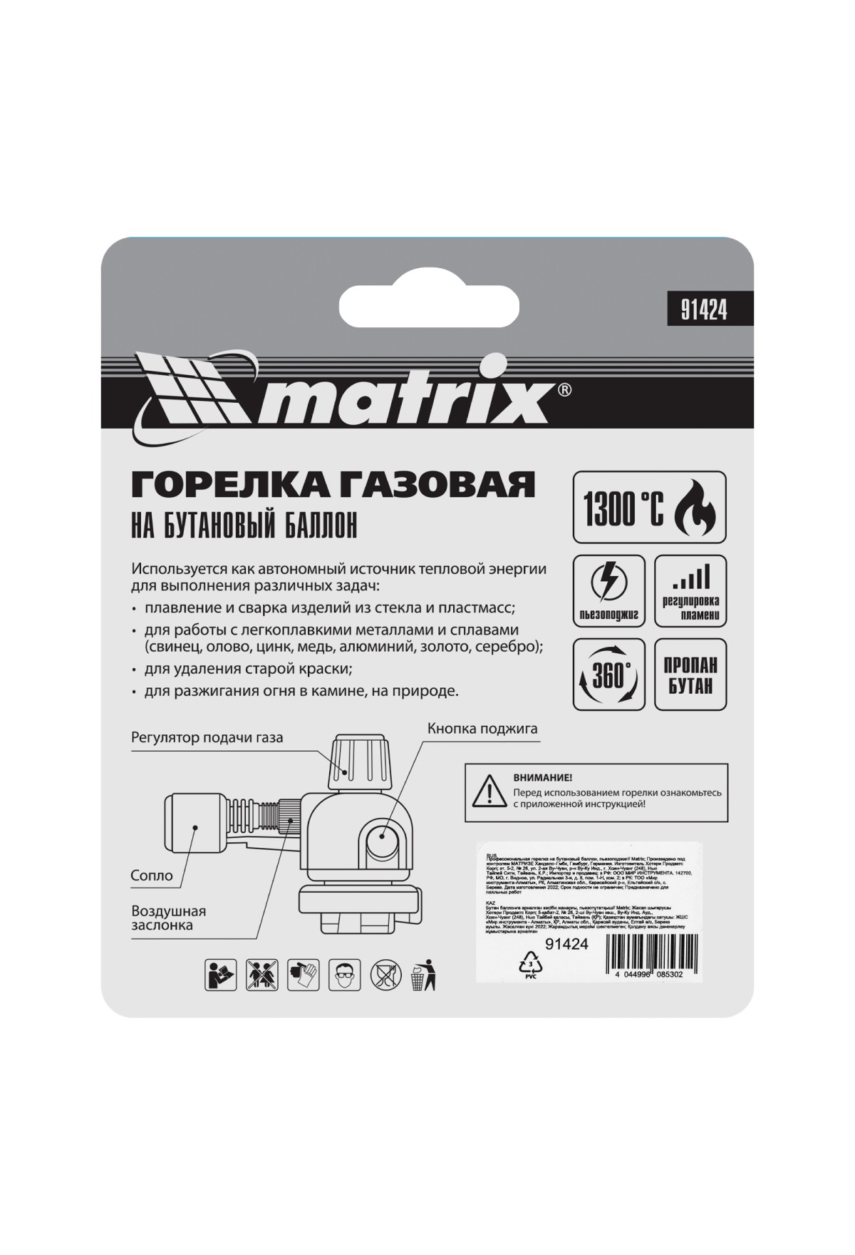Технические характеристики Профессиональная горелка на бутановый баллон, пьезоподжиг Matrix