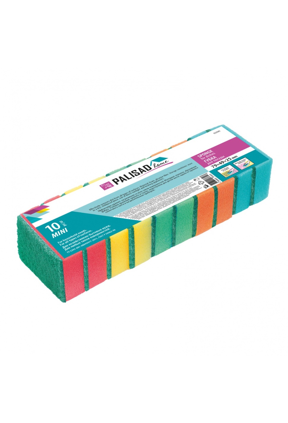 Технические характеристики Губки для посуды Mini, 79 x 49 x 25 мм, 10 шт., Home Palisad