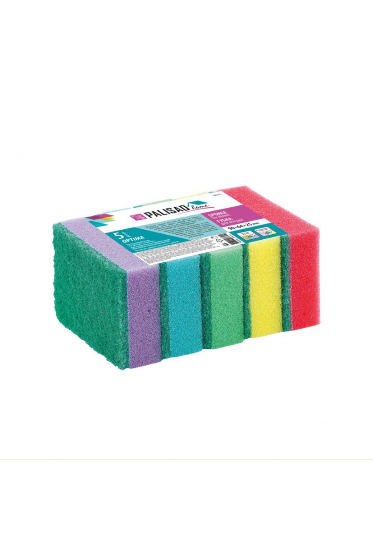 • Губки для посуды Optima, 90 x 64 x 25 мм, 5 шт., Home Palisad