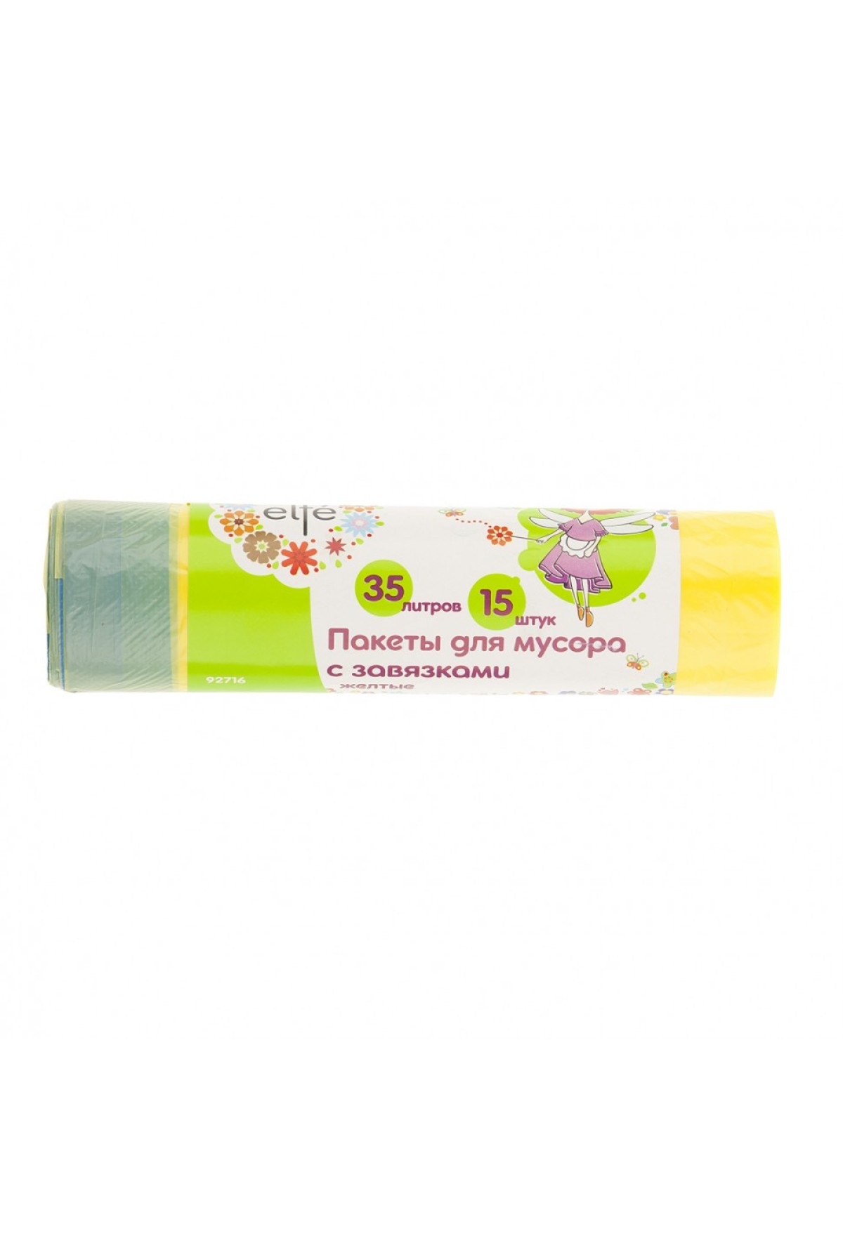 Пакеты для мусора с завязками 35 л х 15 шт, желтые, Россия Elfe