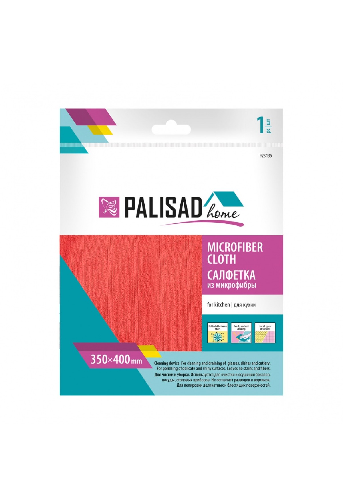 Технические характеристики Салфетка из микрофибры для кухни 350 x 400 мм, коралловая, Home Palisad