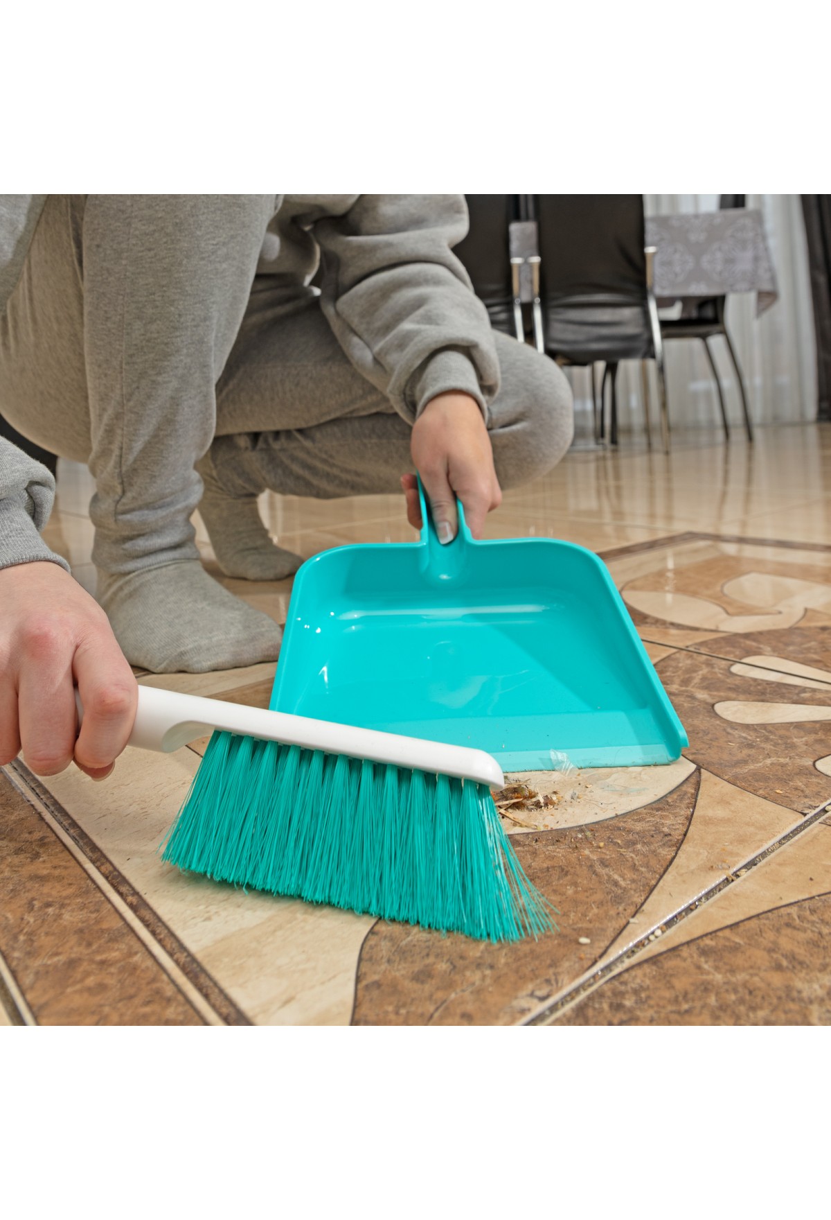 - Надежность — совок и щетка изготовлены из легкого, но прочного полипропилена.