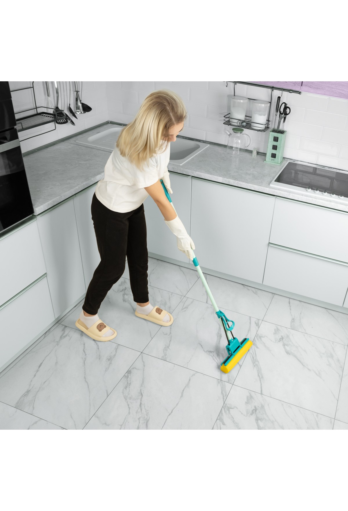 Отжимная швабра губкой PVA 26 х 5,5 х 6 см и телескопической рукояткой 110 см применяется для мытья полов любого типа, в том числе паркета, линолеума и кафеля. Отжимной механизм упрощает уборку, избавляет пользователя от необходимости постоянно нагибаться и контактировать с водой и чистящими средствами.
