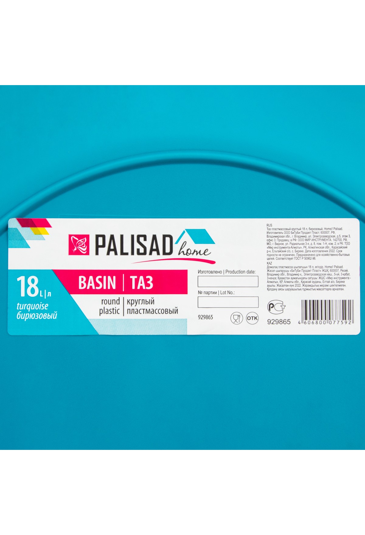 Тэги: Таз пластмассовый круглый 18 л, бирюзовый, Home Palisad, VR6-929865, PALISAD Home, VR6, VR6-Прочий инструмент, VR6-Тазы пластмассовые, VR6-Хозяйственные товары