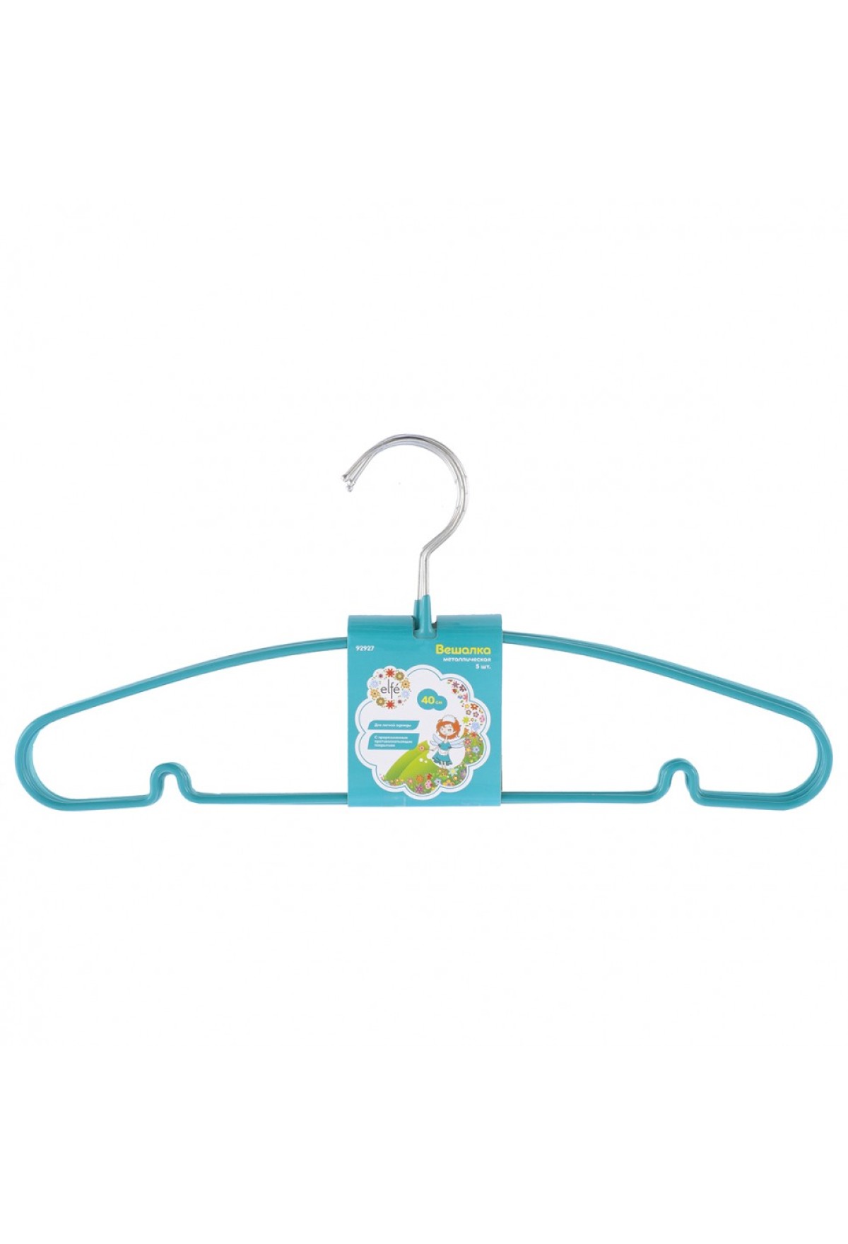 Комплект Elfe 92927 включает в себя 5 вешалок с прорезиненным противоскользящим покрытием, длиной 40 см каждая, обеспечивающих бережное хранения блузок, рубашек, летних брюк и другой легкой одежды. Благодаря мягкому резиновому покрытию на плечиках и перекладине одежда не соскальзывает и на ней не появляются заломы.