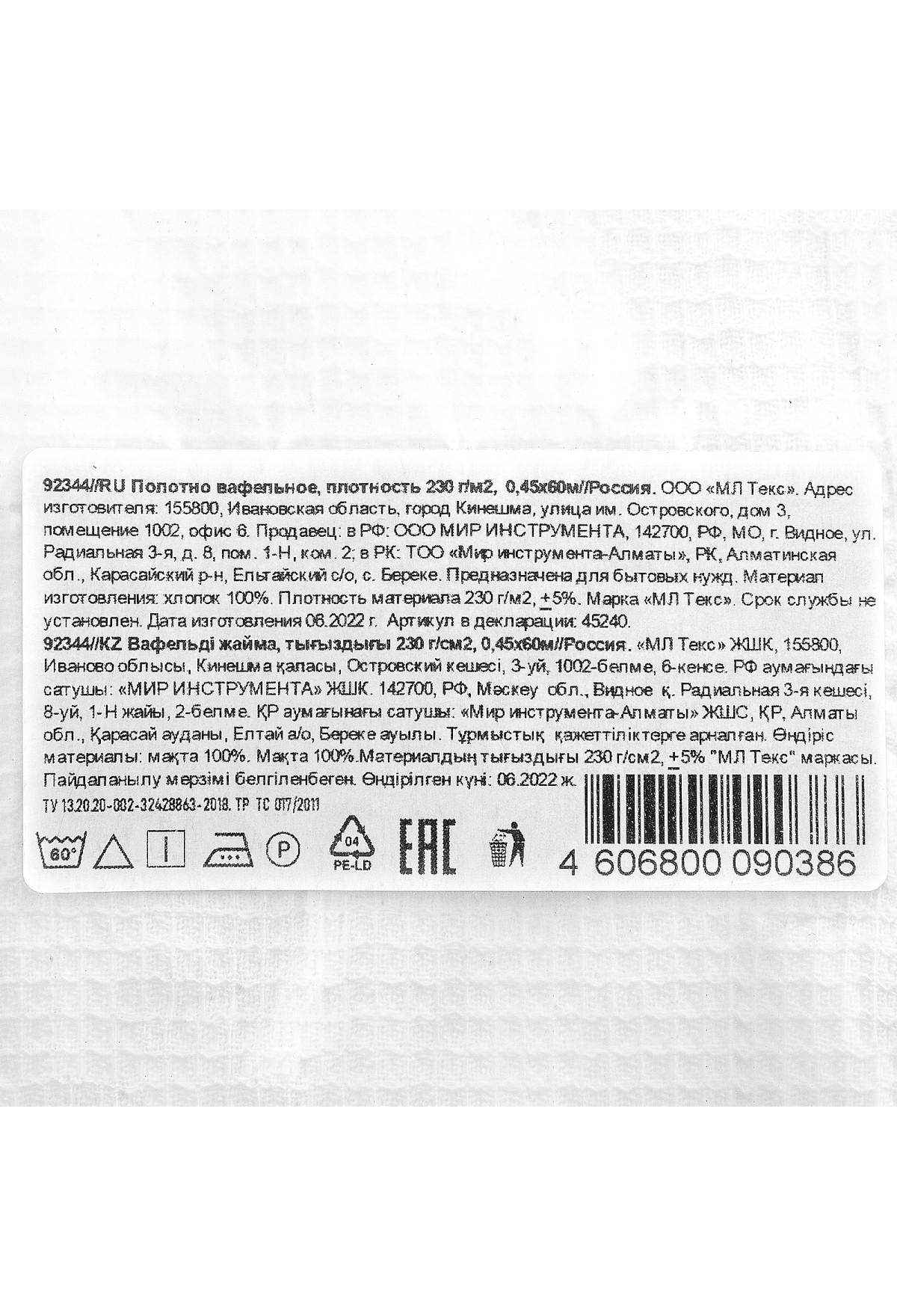 Тэги: Полотно вафельное, 45х60 м, VR6-92344, No name, VR6, VR6-Ветошь, VR6-Прочий инструмент, VR6-Хозяйственные товары