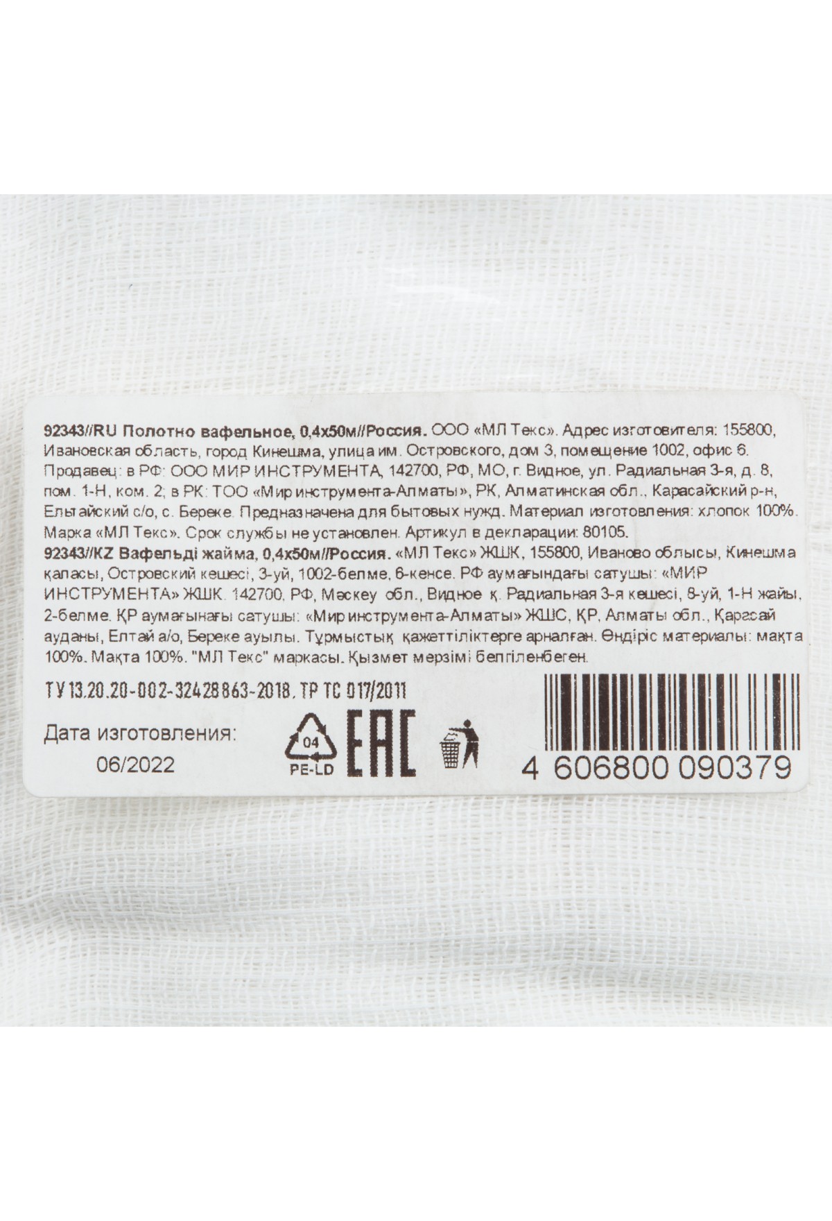 Тэги: Полотно вафельное, 4х50 м, VR6-92343, -, VR6, VR6-Ветошь, VR6-Прочий инструмент, VR6-Хозяйственные товары