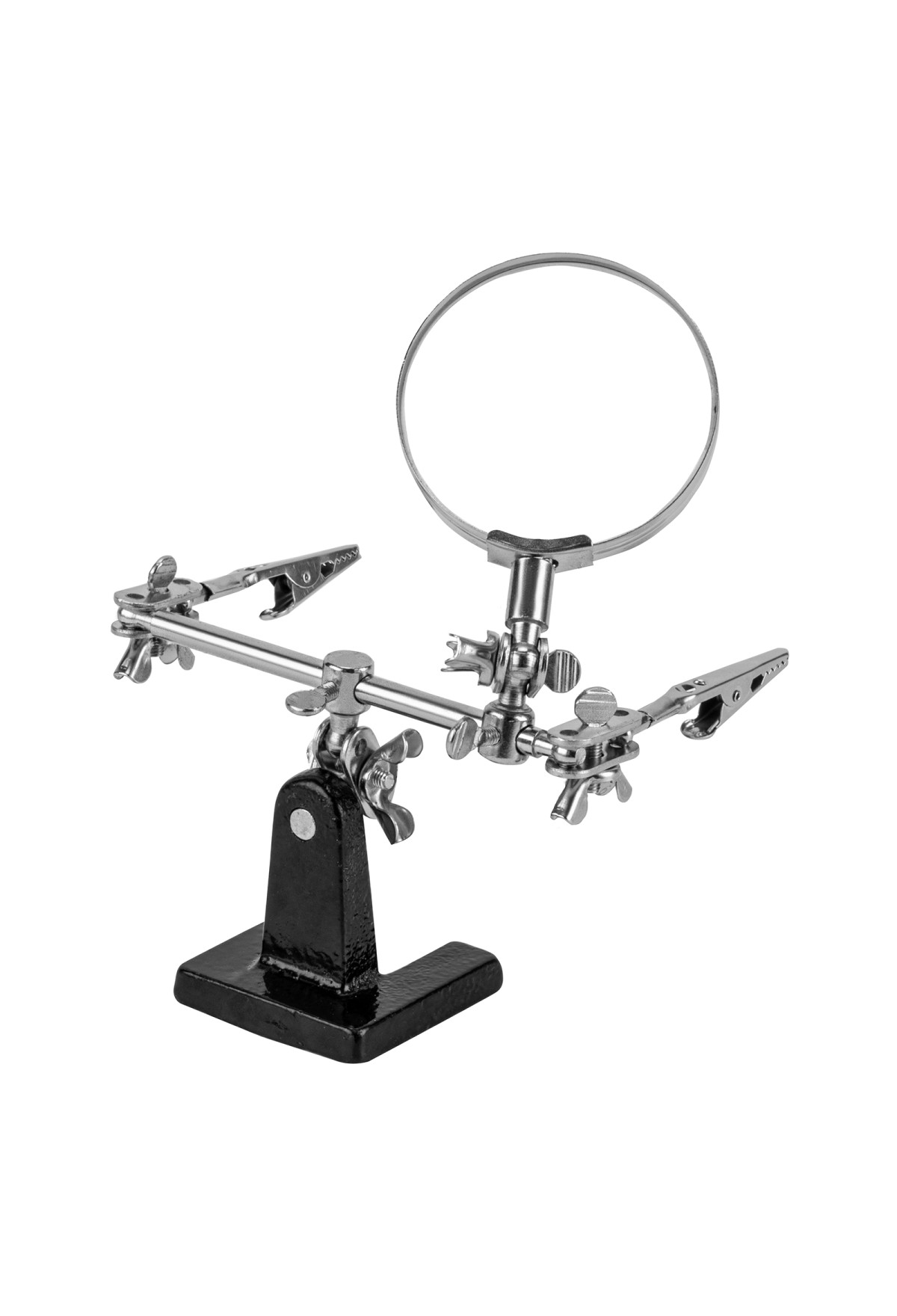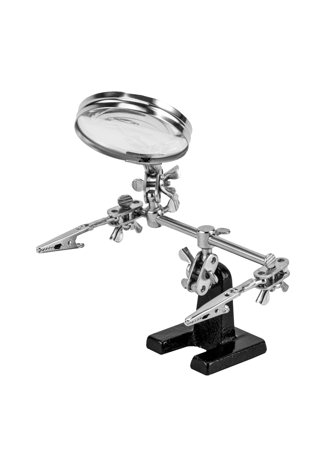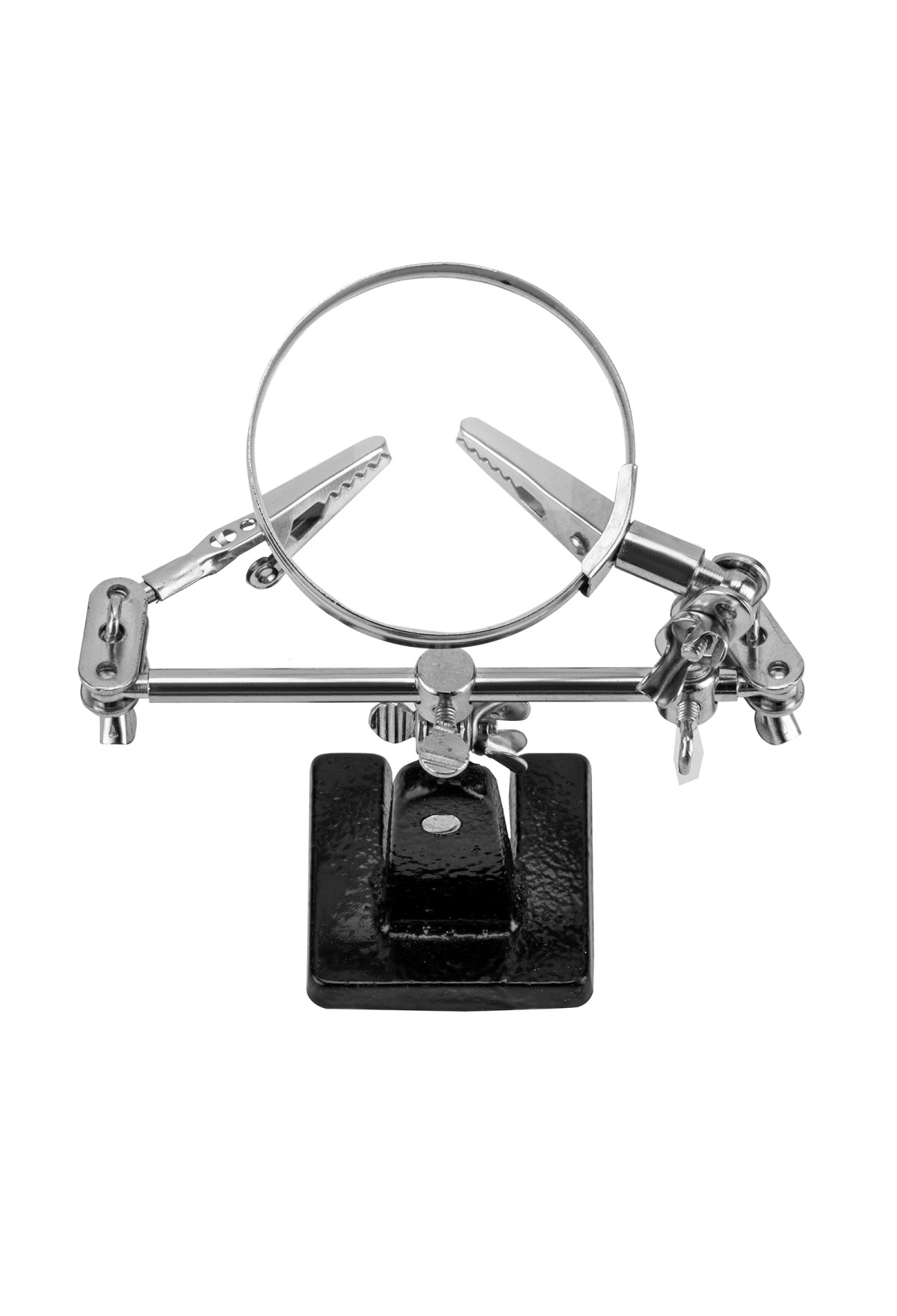 - Фиксация предметов под различными углами — благодаря шарнирным креплениям зажимы и лупу можно установить в любом удобном положении.