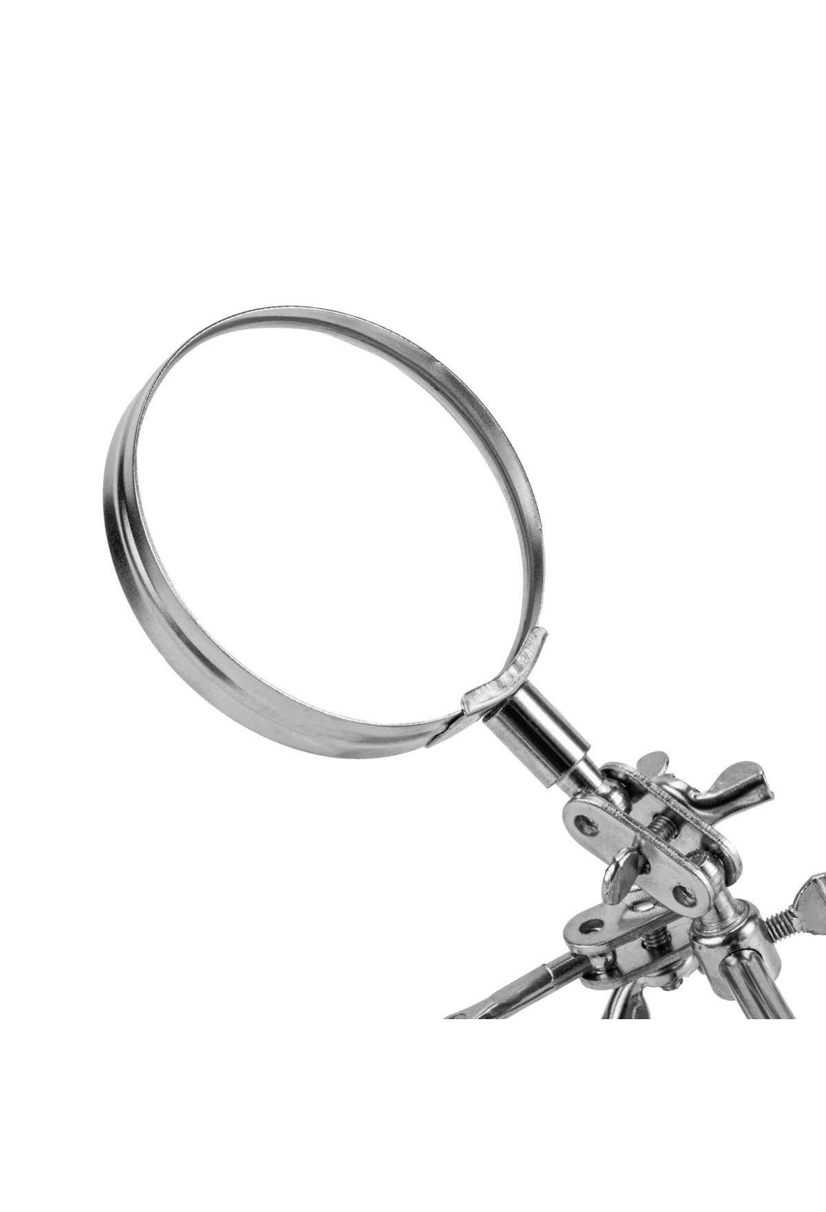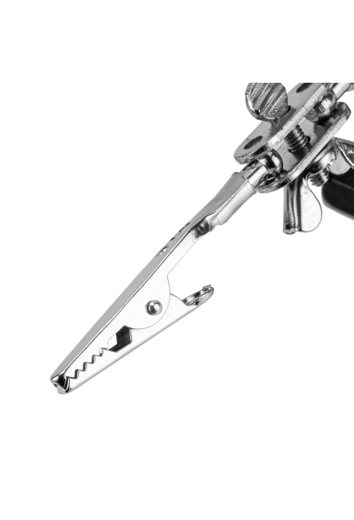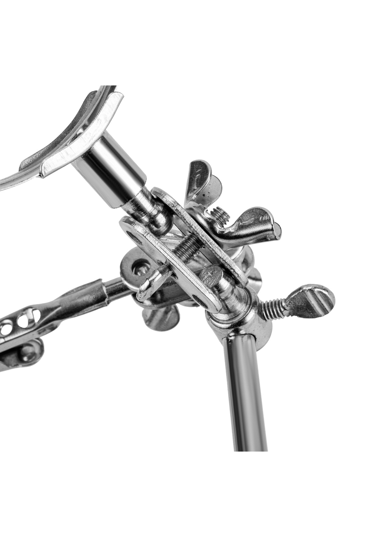 - Фиксация предметов под различными углами — благодаря шарнирным креплениям зажимы и лупу можно установить в любом удобном положении.