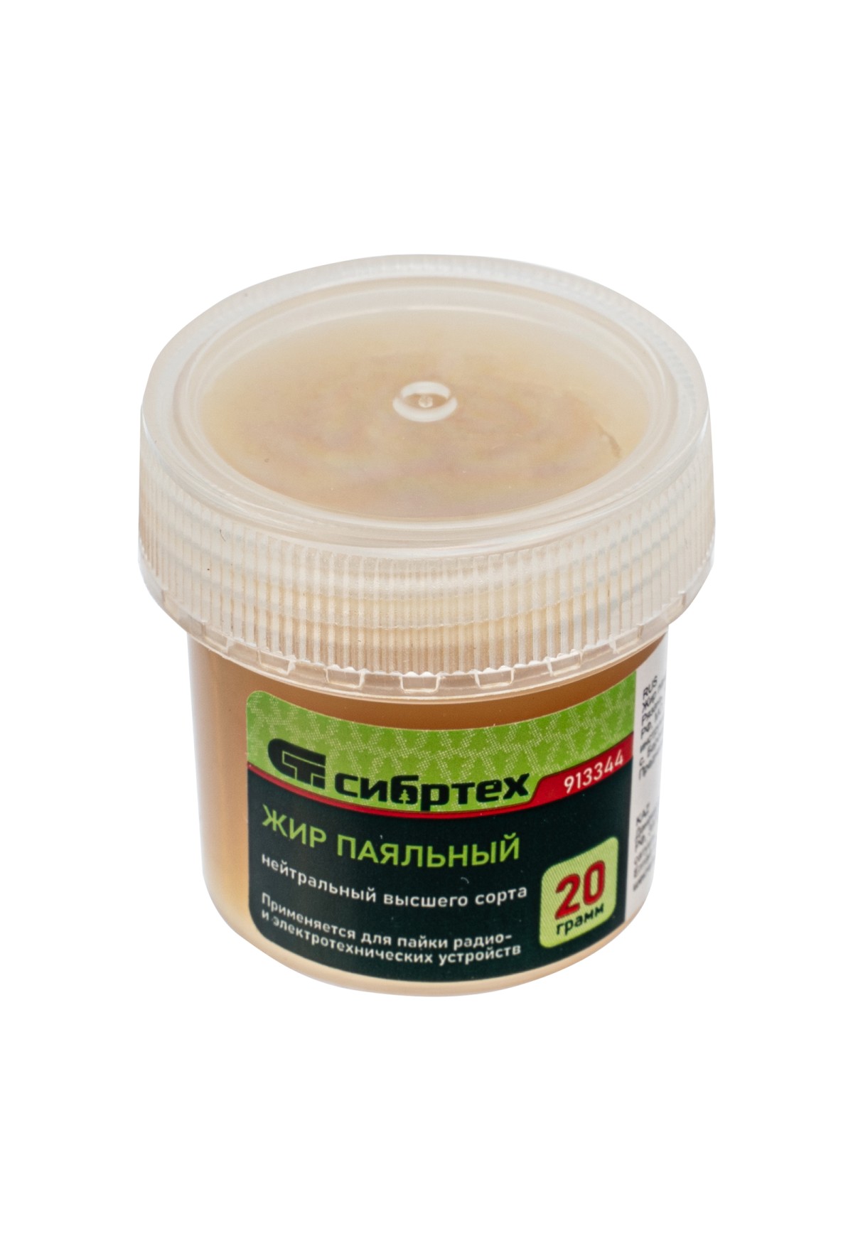 Паяльный жир Сибртех 913344, поставляющийся в банке объемом 20 г, — нейтральный флюс для пайки проводов и компонентов радиоэлектронной аппаратуры. Используется также для лужения жала паяльника. Жир эффективно удаляет окислы в месте пайки и обеспечивает прочность соединения, а после окончания работы легко смывается. Пригодится для ремонта электроники.