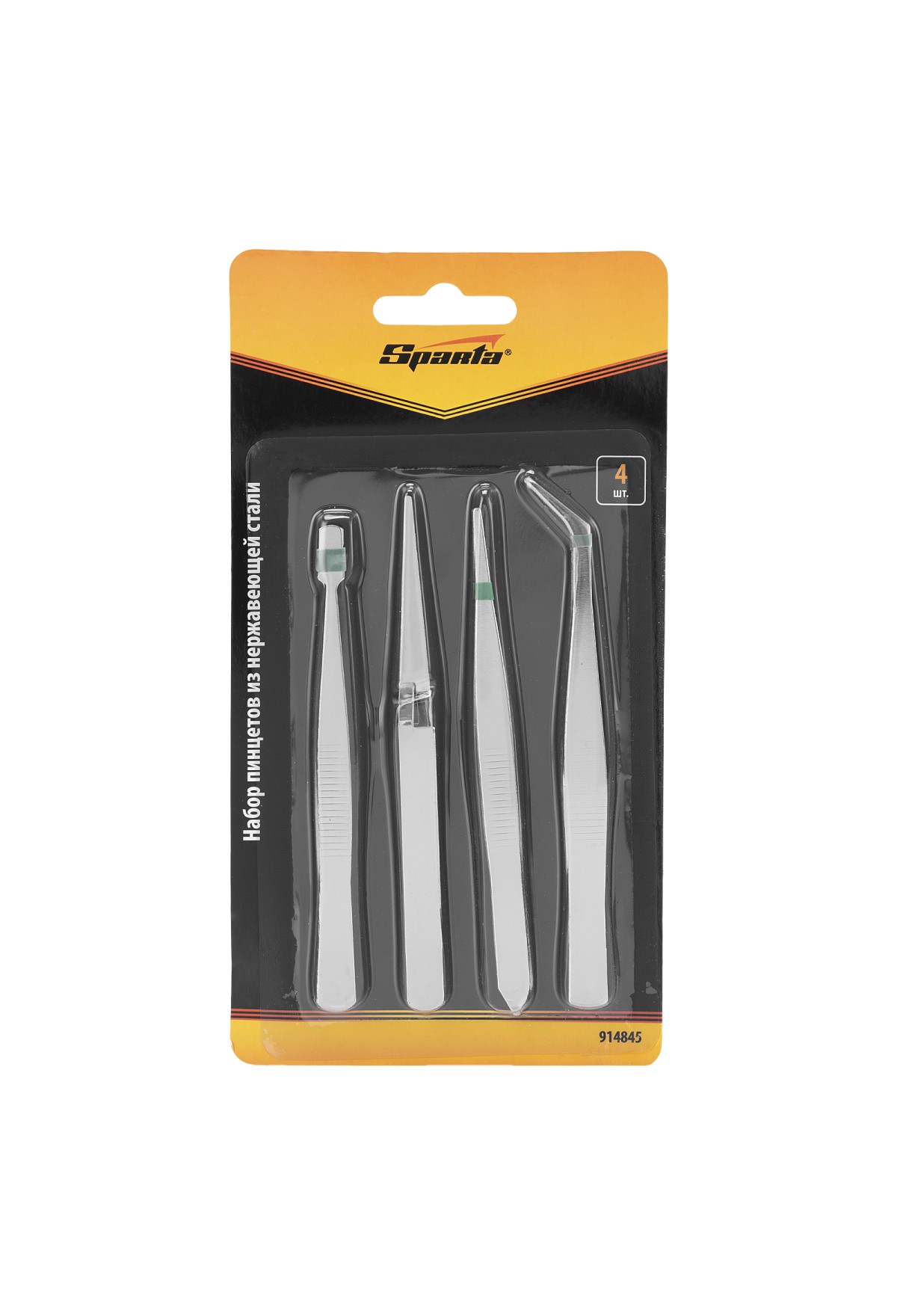 Набор пинцетов из нержавеющей стали, 4 шт, Sparta