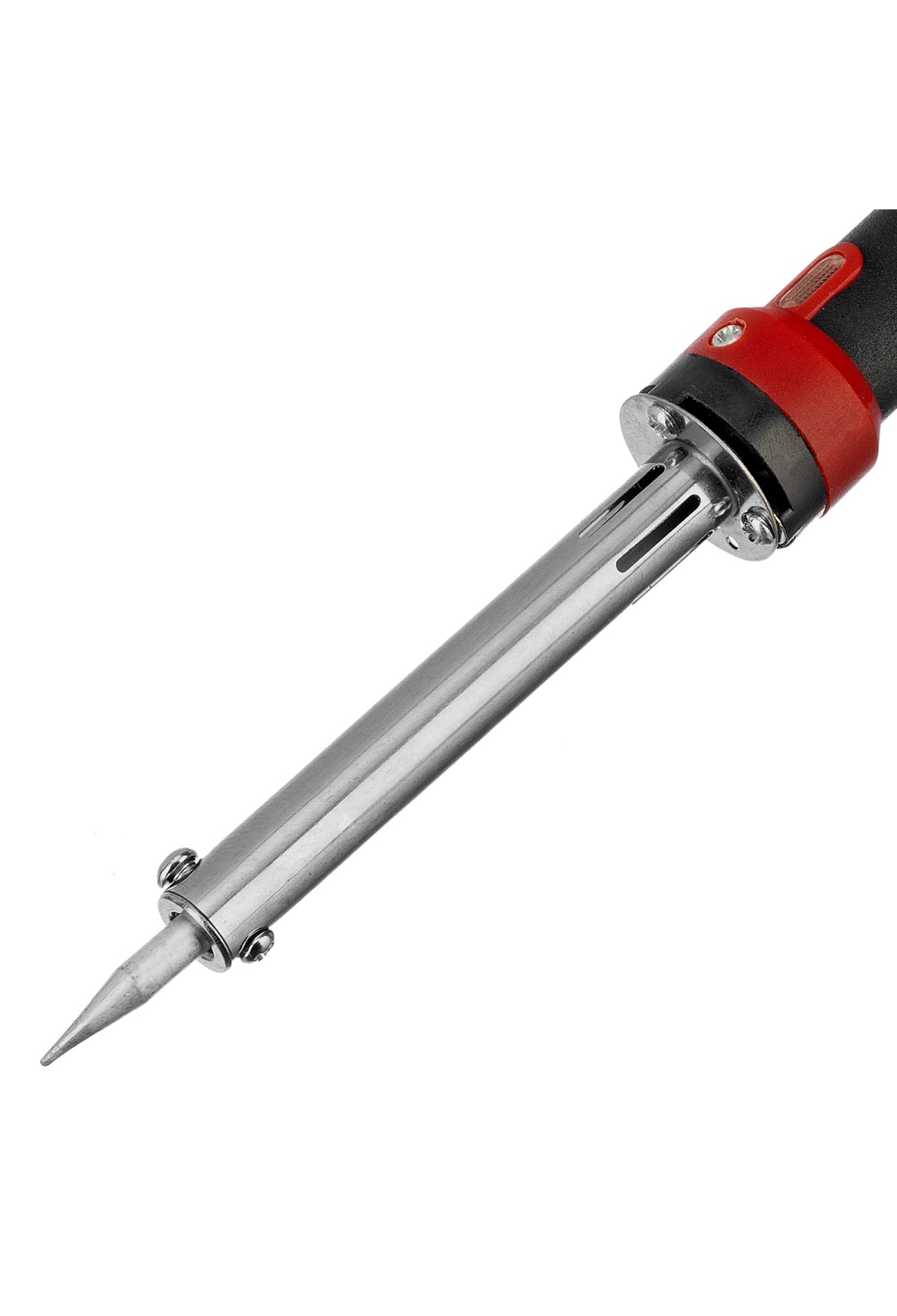 - Продолжительная работа с паяльником не вызывает усталость благодаря удобной пластиковой рукоятке с мягкой накладкой.