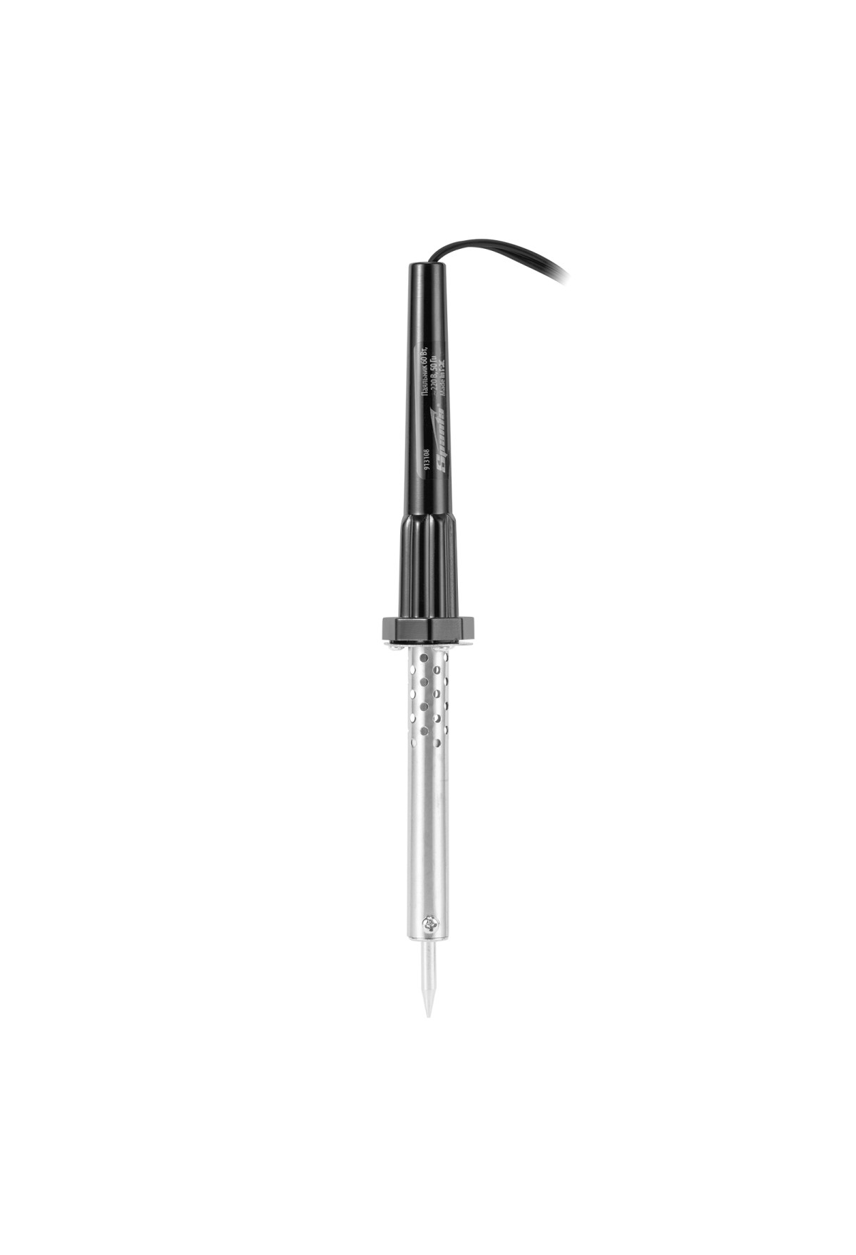 Паяльник Sparta 913108 мощностью 60 Вт, с пластиковой ручкой, работает от сети 220 В, предназначен для пайки микросхем, транзисторов, проводов и используется для ремонта электроники и бытовой техники. Нагревательным элементом является нихромовая спираль, что повышает устойчивость прибора к повреждениям в результате удара или падения. Съемное жало при необходимости можно заменить.