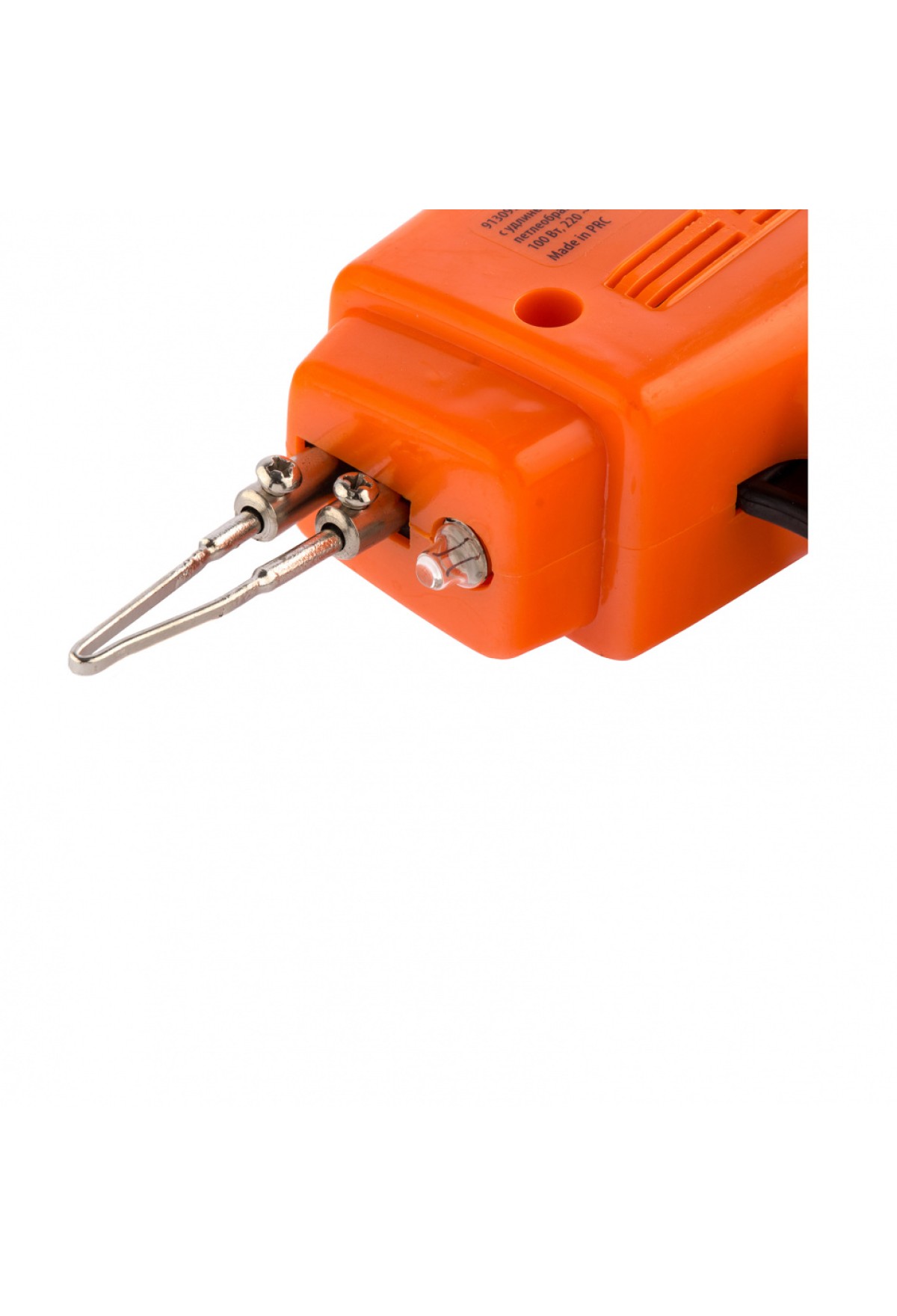 Паяльник Sparta 913095, 100 Вт, 220 В, с удлиненным петлеобразным жалом предназначен для пайки электронных компонентов. Удлиненное жало облегчает работу в условиях нехватки пространства. Лампочка подсветки обеспечивает дополнительное освещение зоны пайки, что способствует повышению качества работ. Паяльник рассчитан на непрерывную работу в течение 20-25 мин. Прибор будет полезен радиолюбителям и мастерам домашнего ремонта.