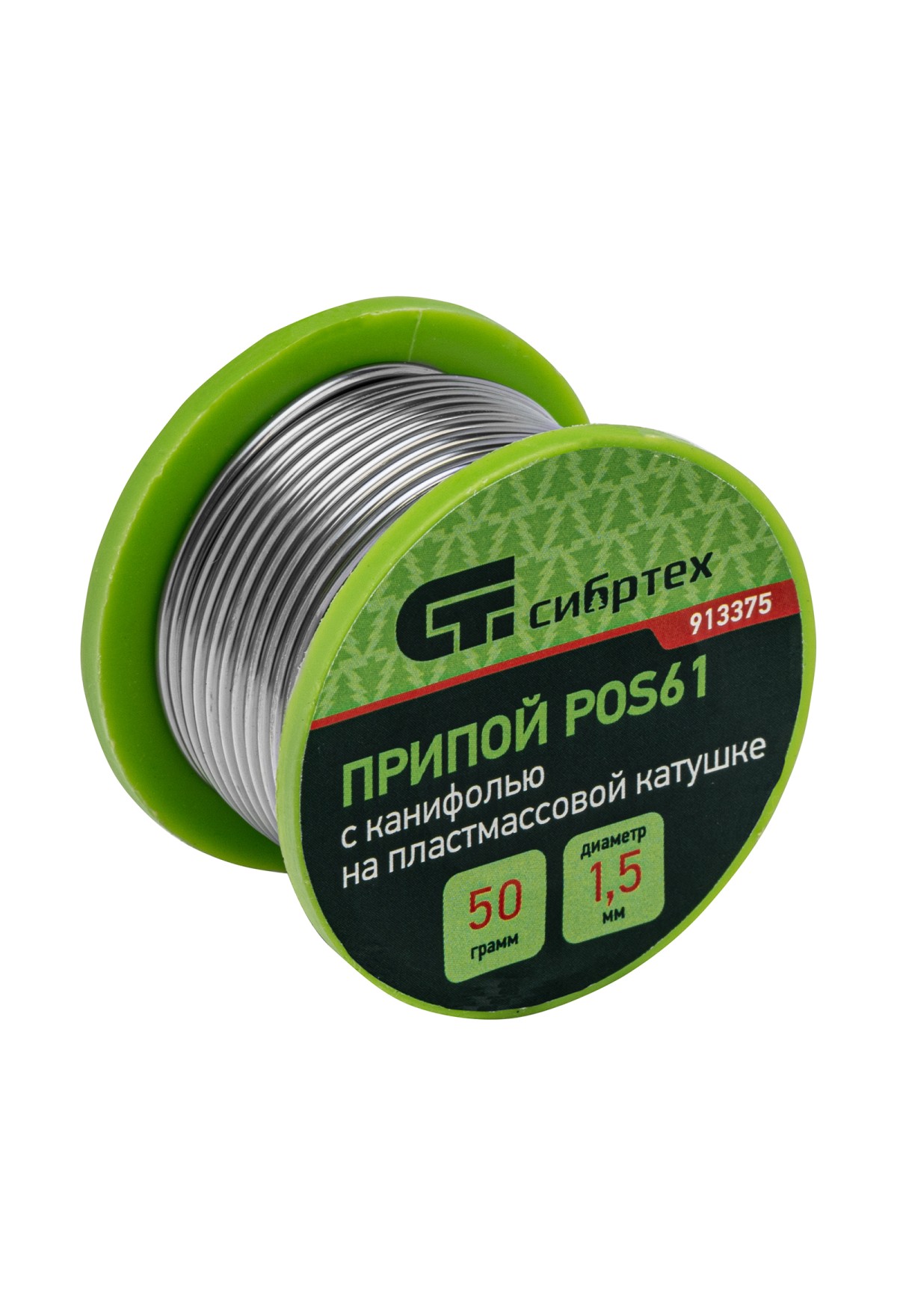 Припой с канифолью, D 1.5 мм, 50 г, POS61, на пластмассовой катушке Сибртех