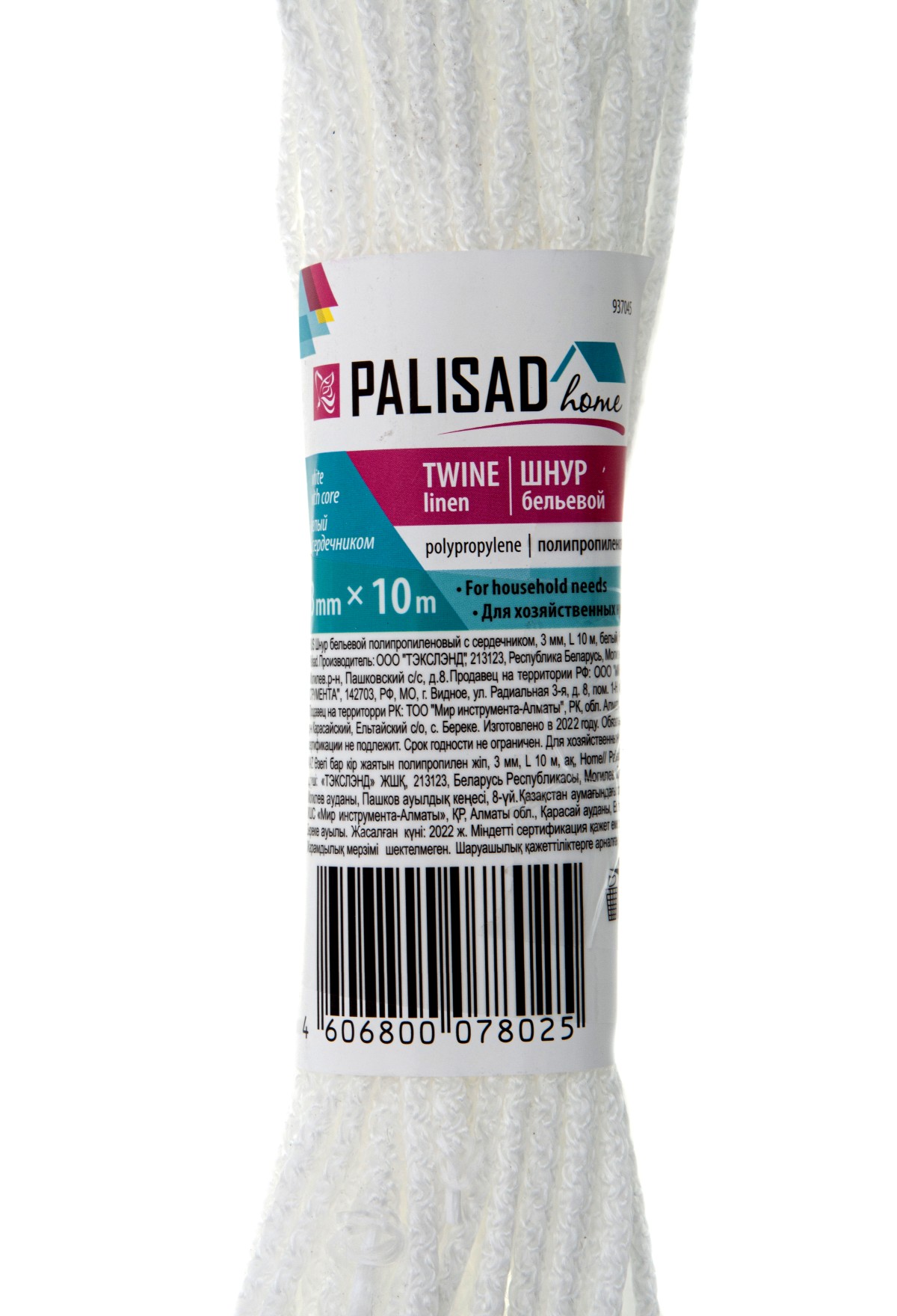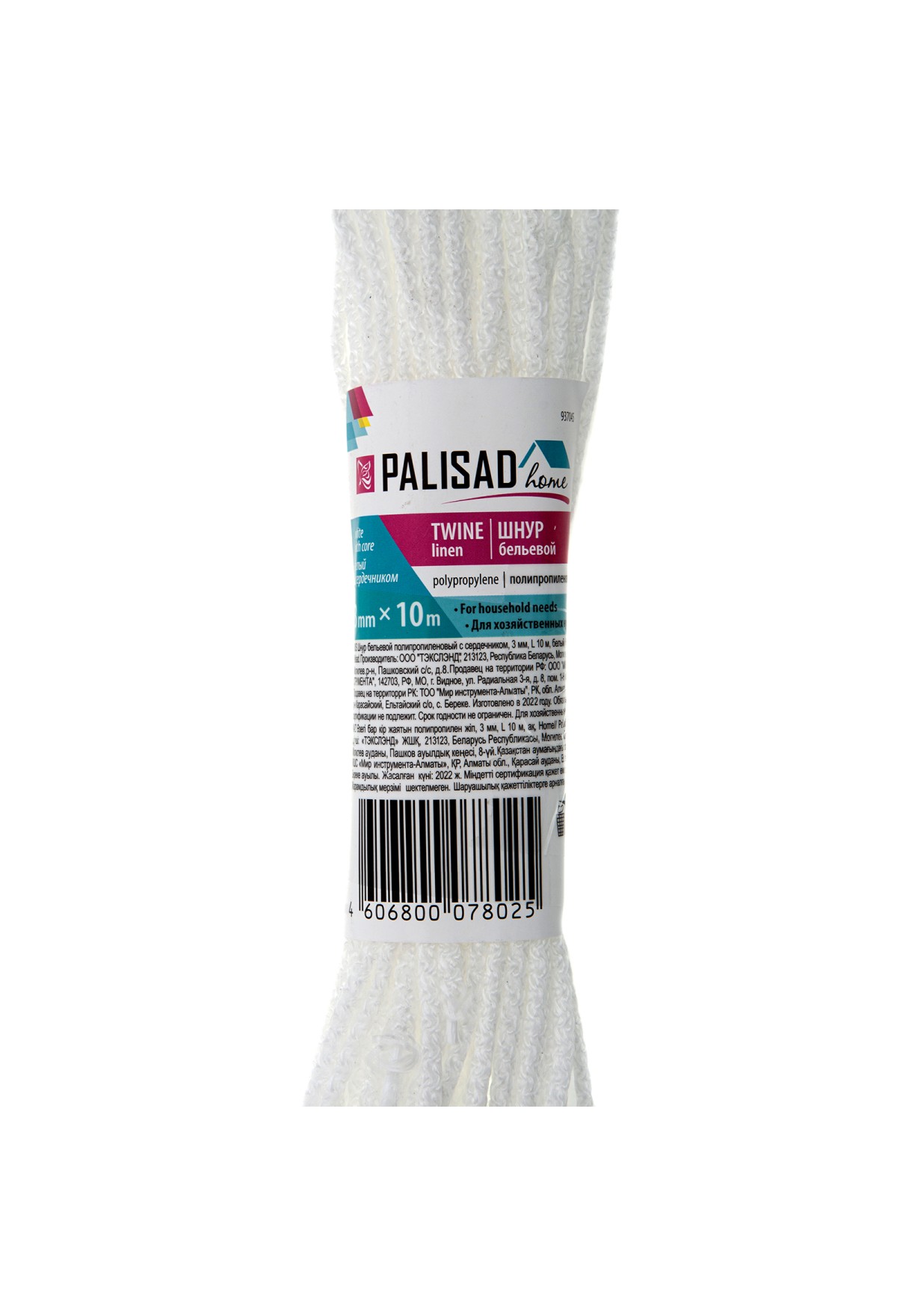 Белый полипропиленовый бельевой шнур Palisad Home 937045 с сердечником, диаметром 3 мм и длиной 10 м, используется для сушки белья, а также в качестве хозяйственной веревки в быту, на рыбалке или в походе. От обычной бельевой веревки для сушки он отличается сердечником из полипропилена, увеличивающим стойкость к нагрузкам. Шнур с полипропиленовой оплеткой выдерживает разрывную нагрузку до 30 кгс, устойчив к растяжению и не провисает под весом мокрых вещей.