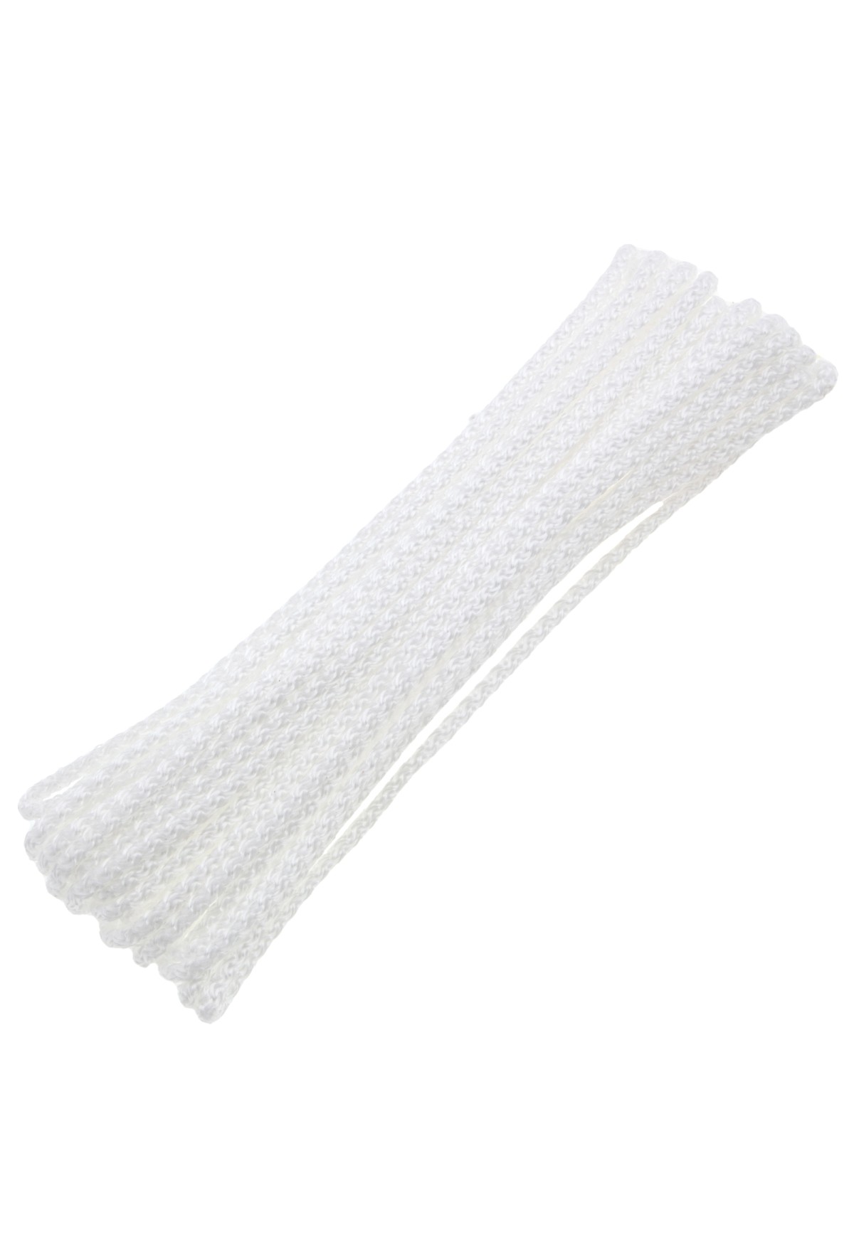 Белый полипропиленовый бельевой шнур Palisad Home 937075 с сердечником, диаметром 5 мм и длиной 10 м, используется для сушки белья, а также в качестве хозяйственной веревки в быту, на рыбалке или в походе. От обычной бельевой веревки для сушки он отличается сердечником из полипропилена, увеличивающим стойкость к нагрузкам. Шнур с полипропиленовой оплеткой выдерживает разрывную нагрузку до 70 кгс, устойчив к растяжению и не провисает под весом мокрых вещей.