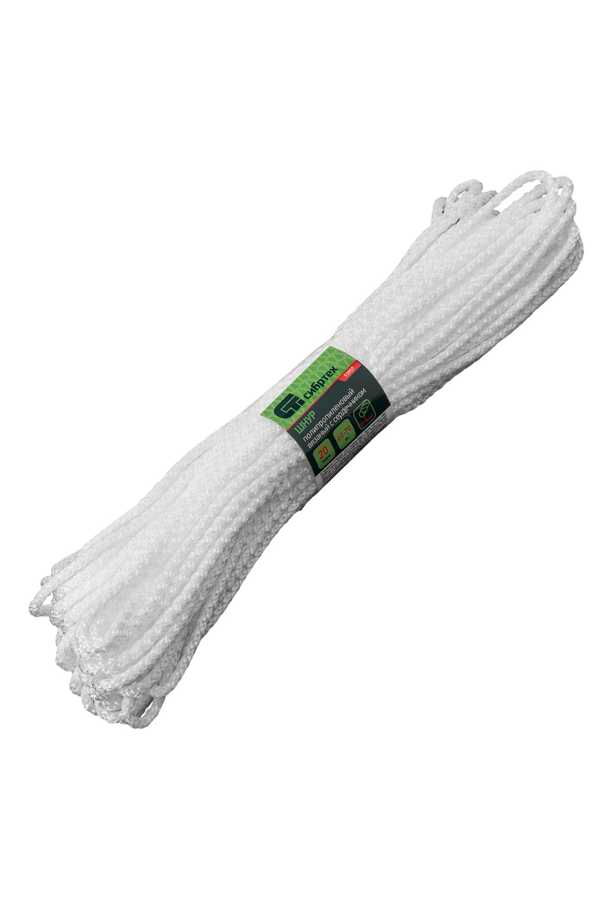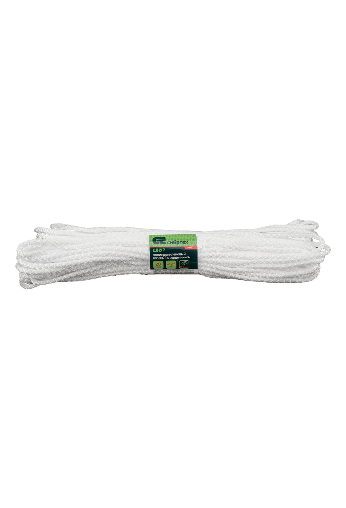 Технические характеристики Шнур вязаный полипропиленовый с серд. белый, 4 мм, L 20 м, Россия Сибртех