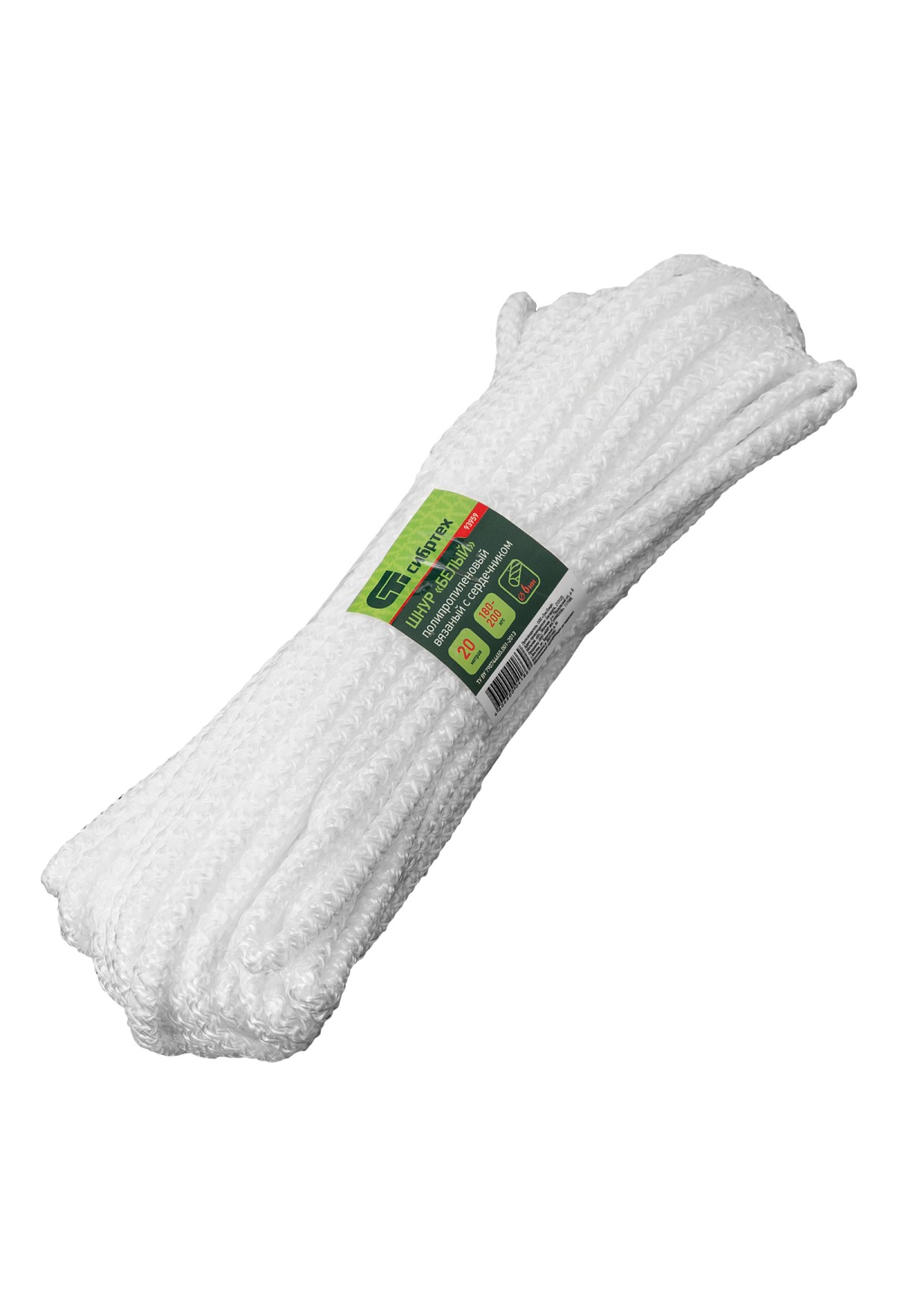Технические характеристики Шнур вязаный полипропиленовый с серд. белый, 6 мм, L 20 м, Россия Сибртех