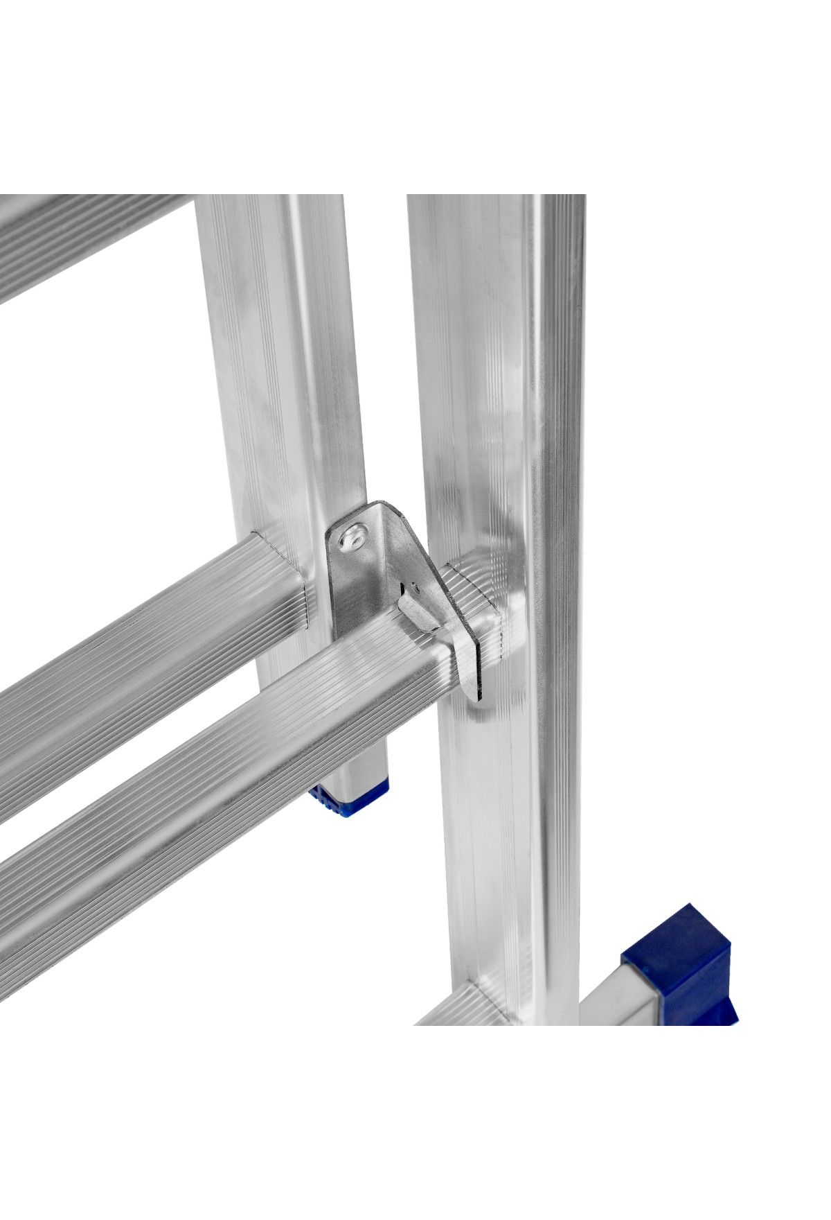 - 3 рабочих положения — стремянка, двухсторонняя стремянка, приставная лестница с одной или двумя секциями.