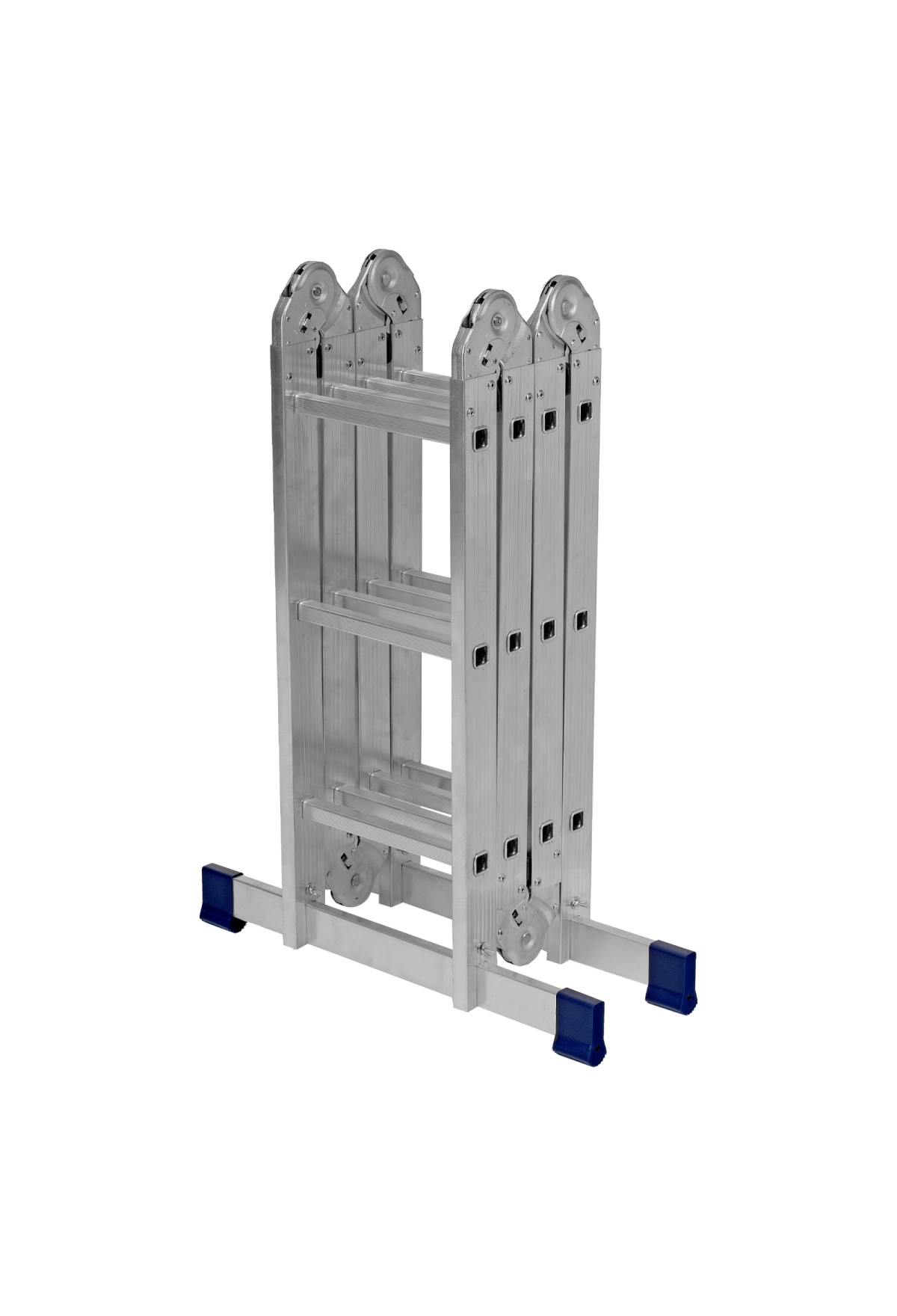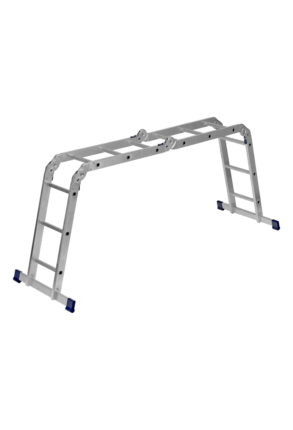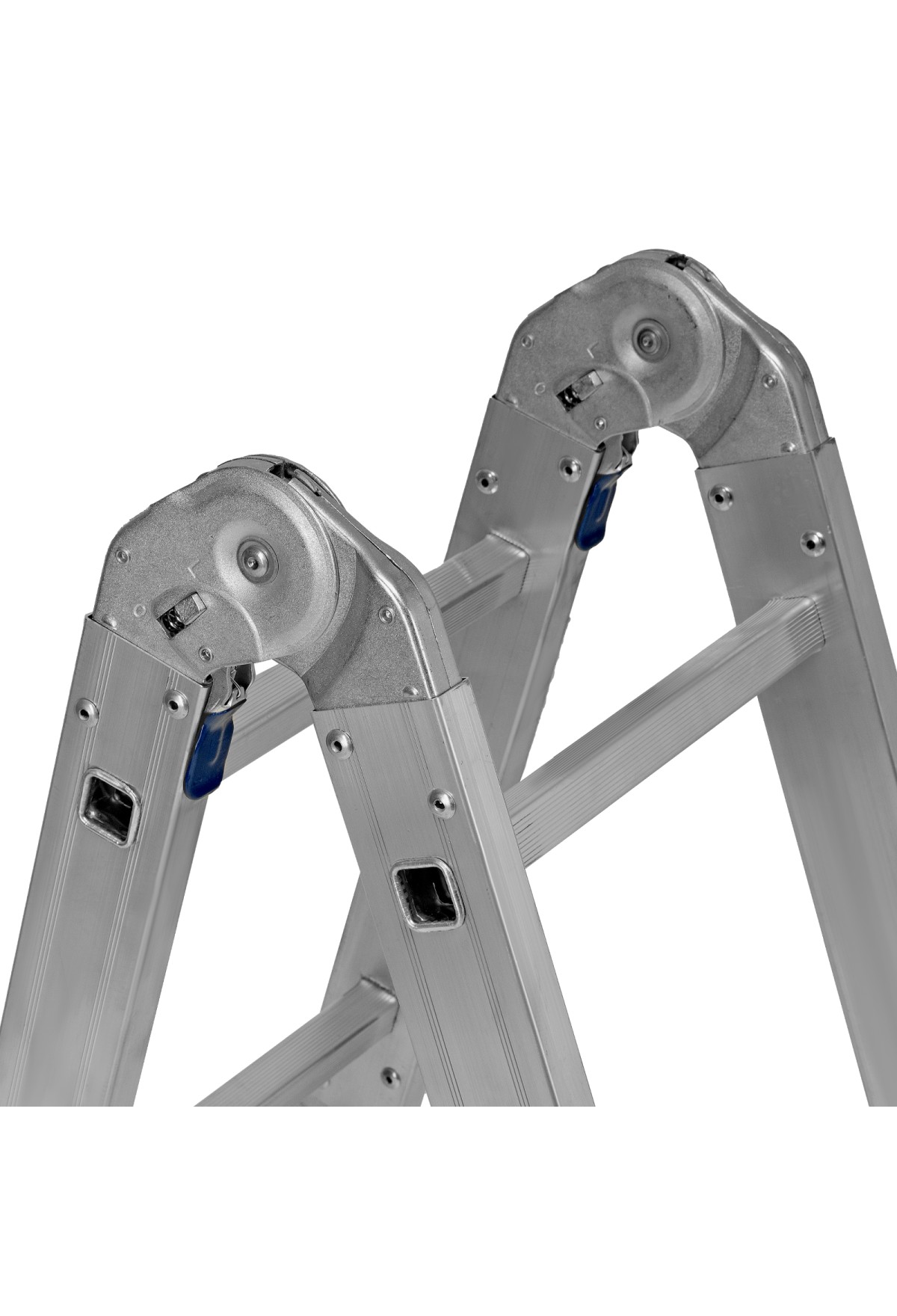 Шарнирная алюминиевая лестница Сибртех 97881 представляет собой 4 секции по 3 ступени, которые можно настроить в нескольких рабочих положениях. Она может использоваться в качестве приставной лестницы, двухсторонней стремянки и помоста. Будет полезна как в быту, так и на небольших стройках, в гараже и магазинах.