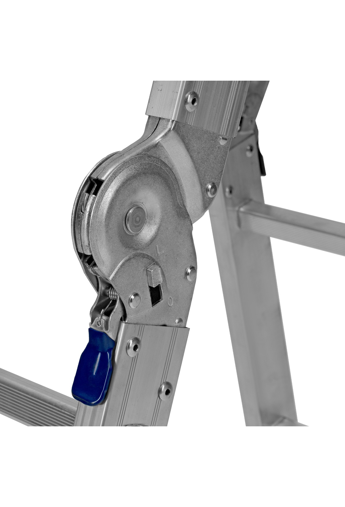 • Надежные шарнирные механизмы — лестница не шатается в рабочих положениях, смена рабочих положений происходит быстро и легко.
