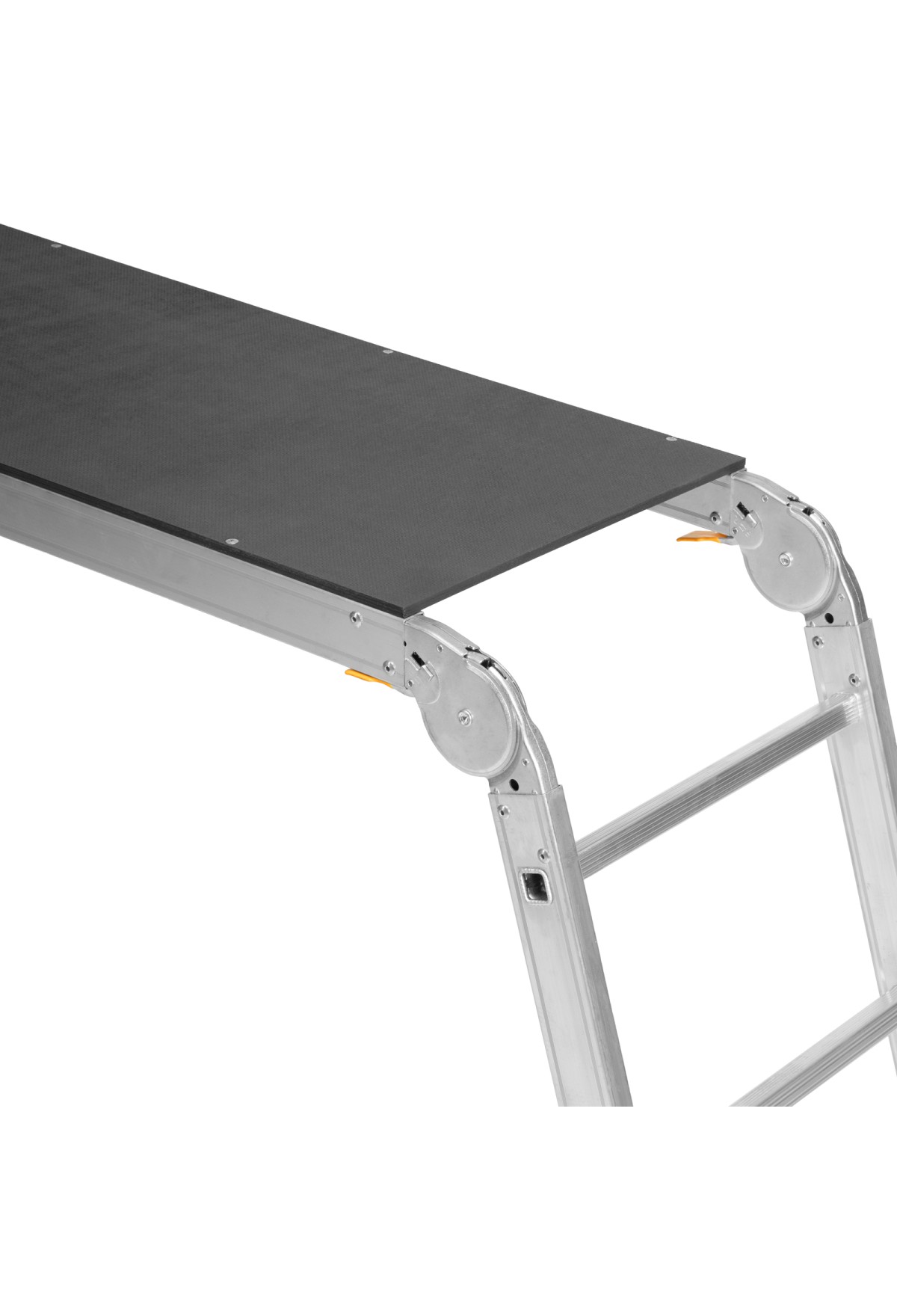 • Простая установка — подмости быстро устанавливаются и складываются, шарнирные замки легко регулируются и автоматически фиксируются.