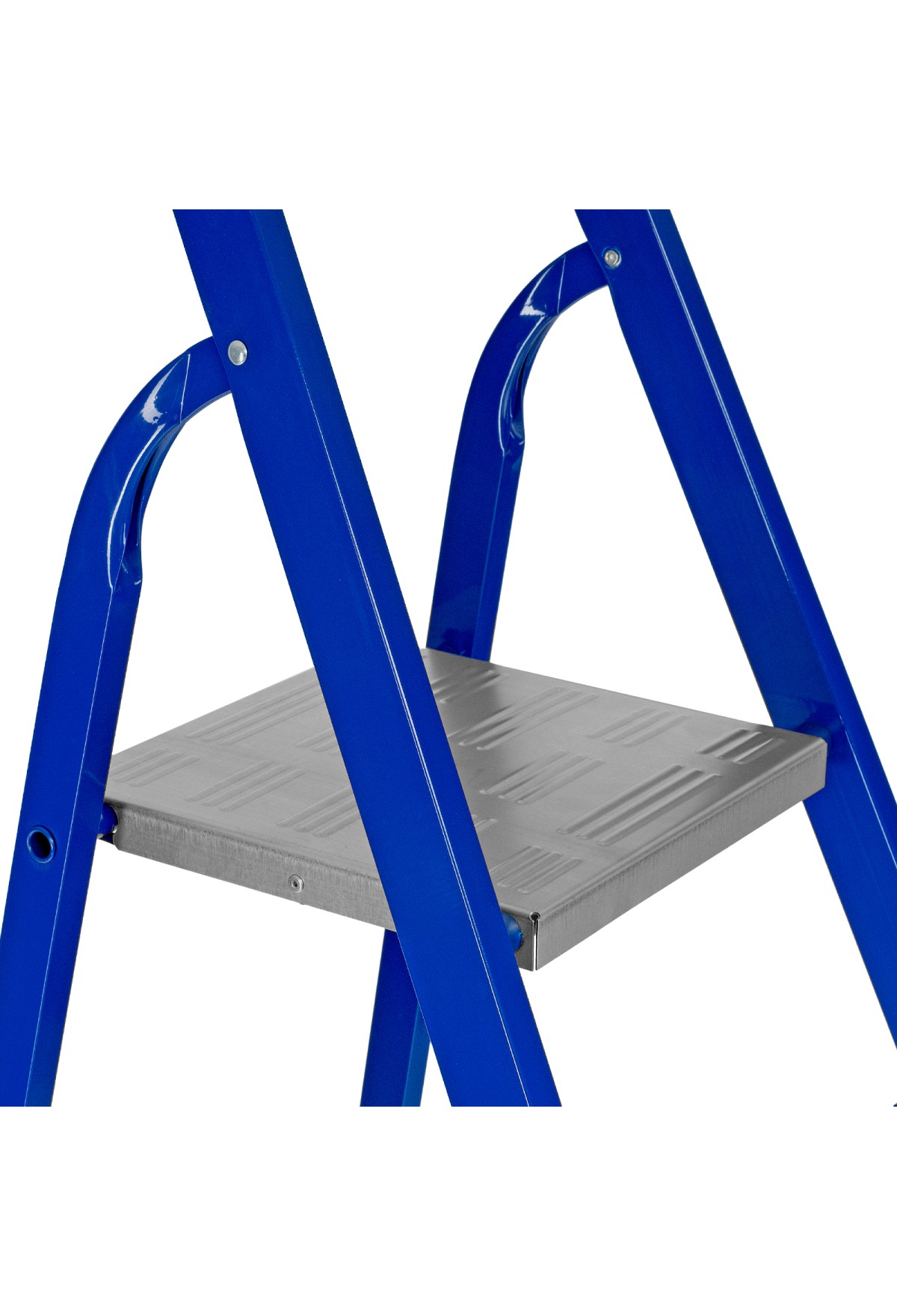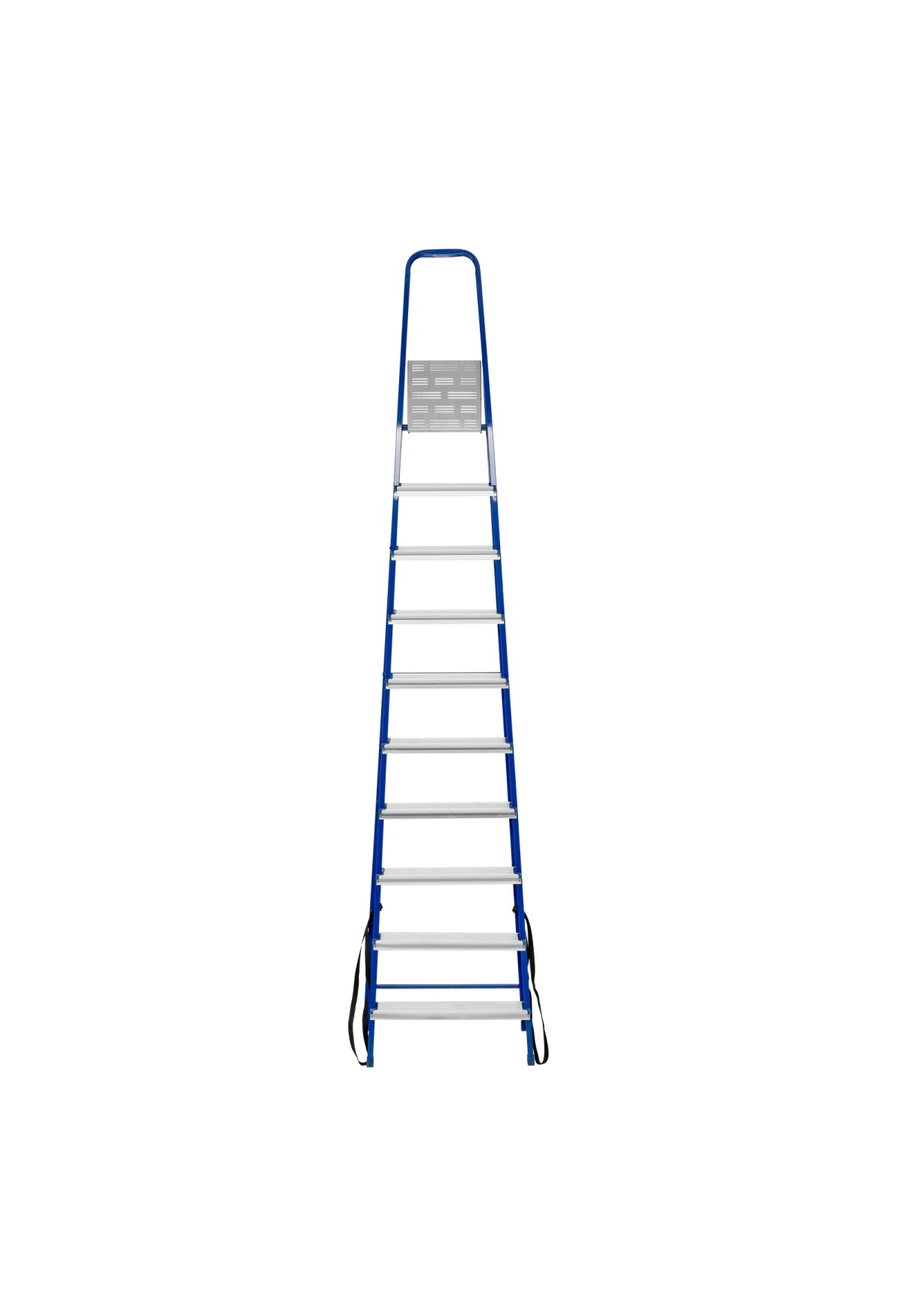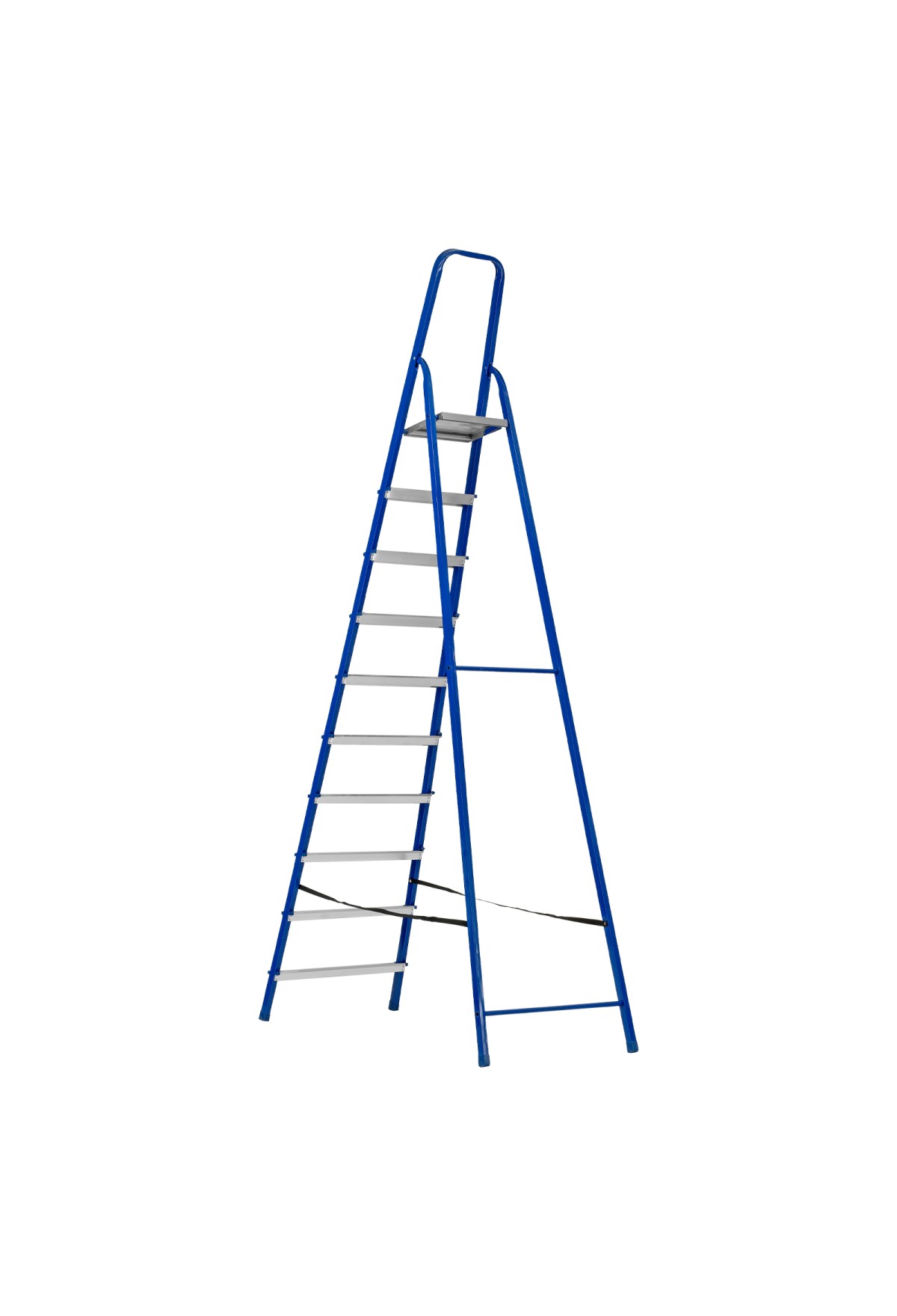 Стремянка Сибртех 97960 со стальным профилем и 10 ступенями, 9 из которых алюминиевые, упрощает доступ к предметам, расположенным на антресолях, шкафах, высоких полках. Также будет полезна для проведения отделочных и монтажных работ. Лестница обладает высокой прочностью при весе 10,2 кг и выдерживает нагрузку до 150 кг. Площадка находится на высоте 210,2 см от опорной поверхности, рабочая высота стремянки составляет 410,2 см (при среднем росте пользователя 170 см).