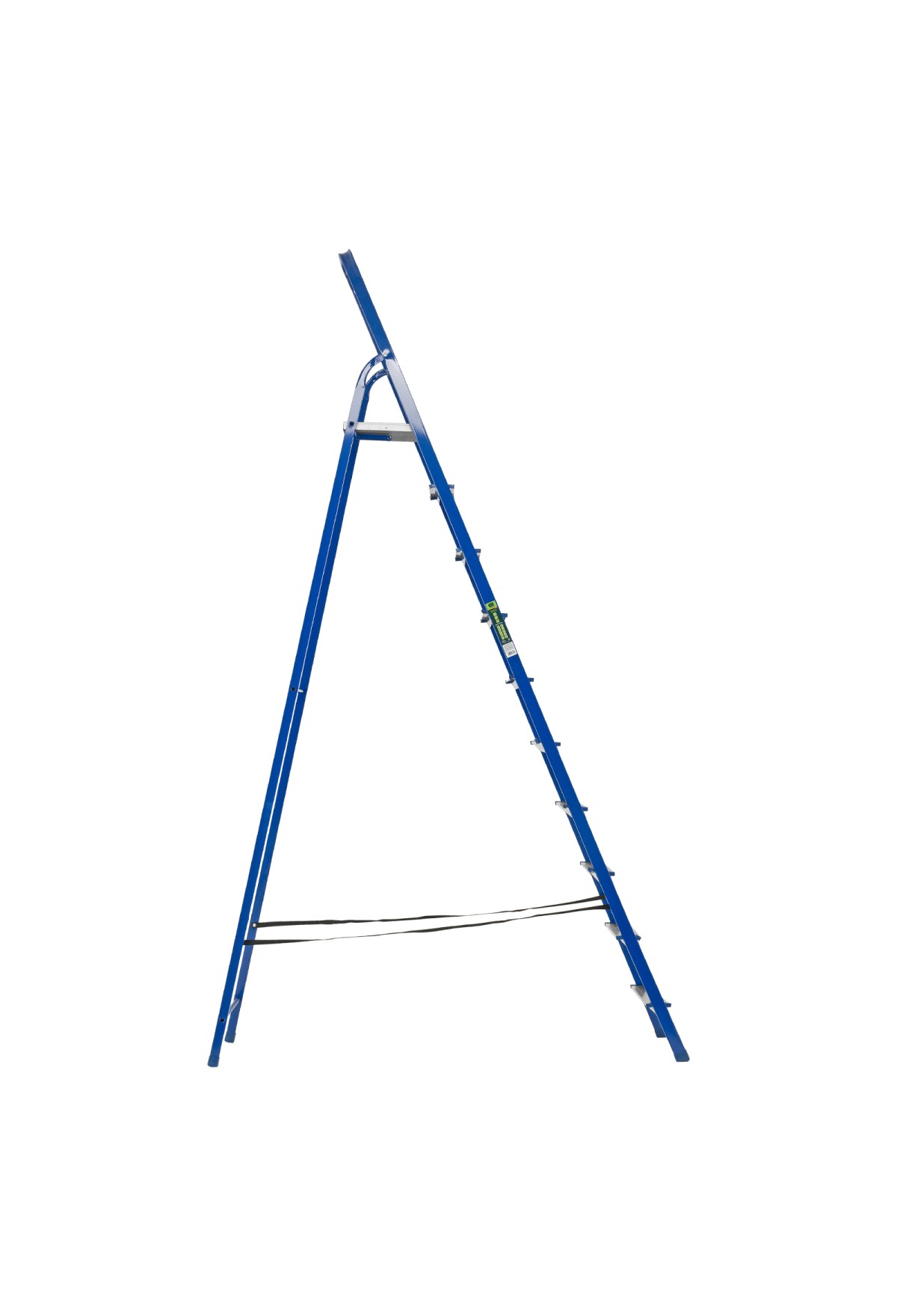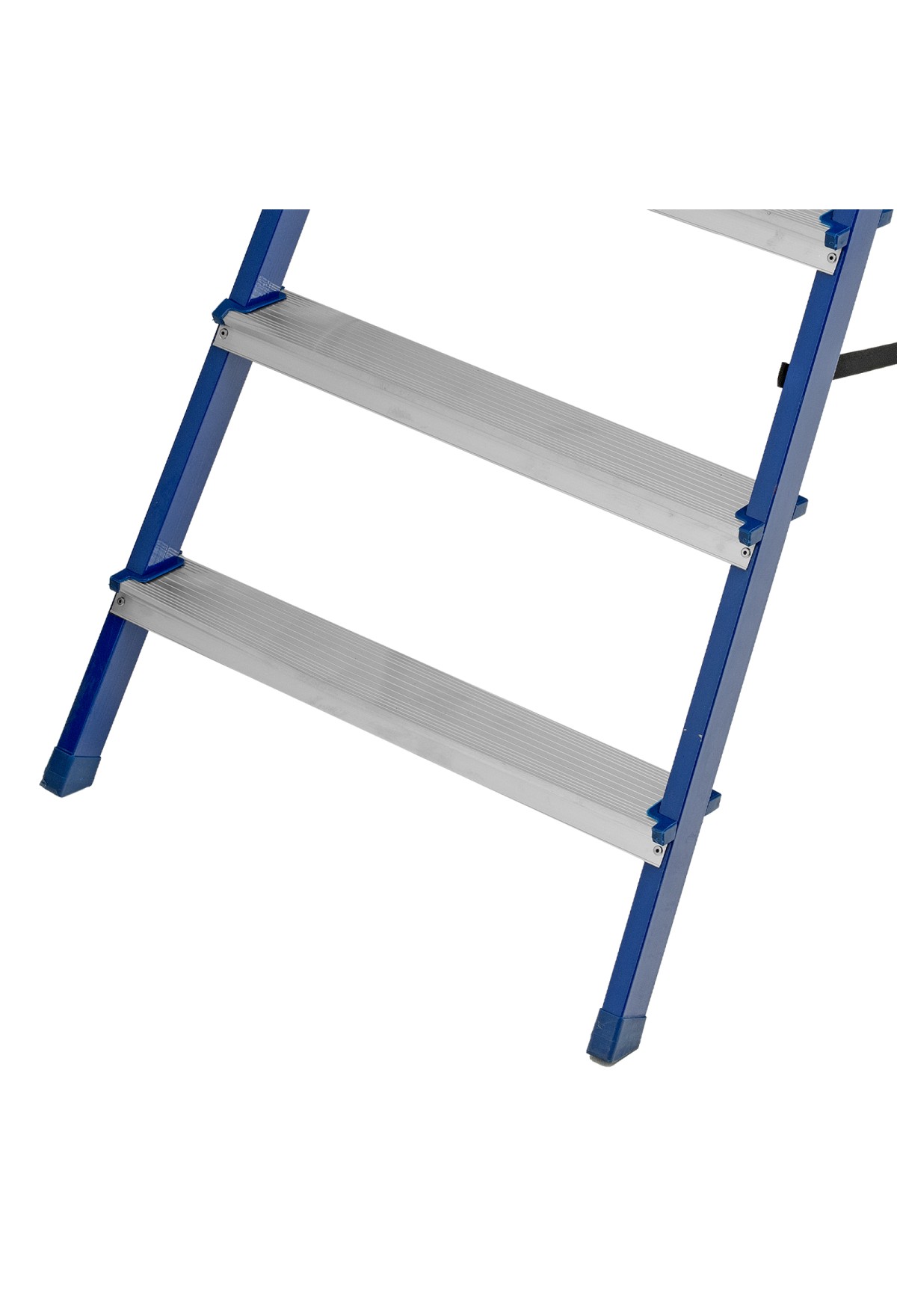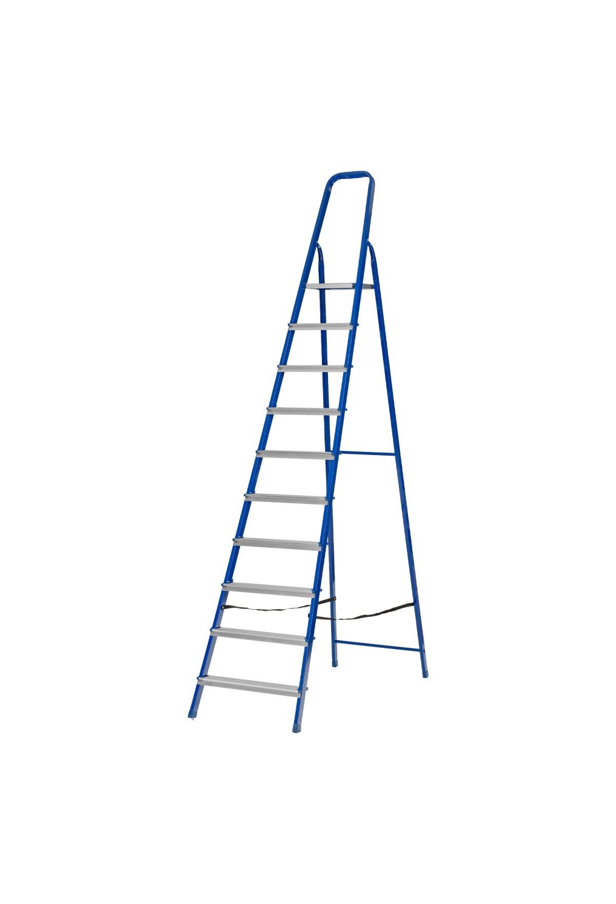 Стремянка Сибртех 97960 со стальным профилем и 10 ступенями, 9 из которых алюминиевые, упрощает доступ к предметам, расположенным на антресолях, шкафах, высоких полках. Также будет полезна для проведения отделочных и монтажных работ. Лестница обладает высокой прочностью при весе 10,2 кг и выдерживает нагрузку до 150 кг. Площадка находится на высоте 210,2 см от опорной поверхности, рабочая высота стремянки составляет 410,2 см (при среднем росте пользователя 170 см).
