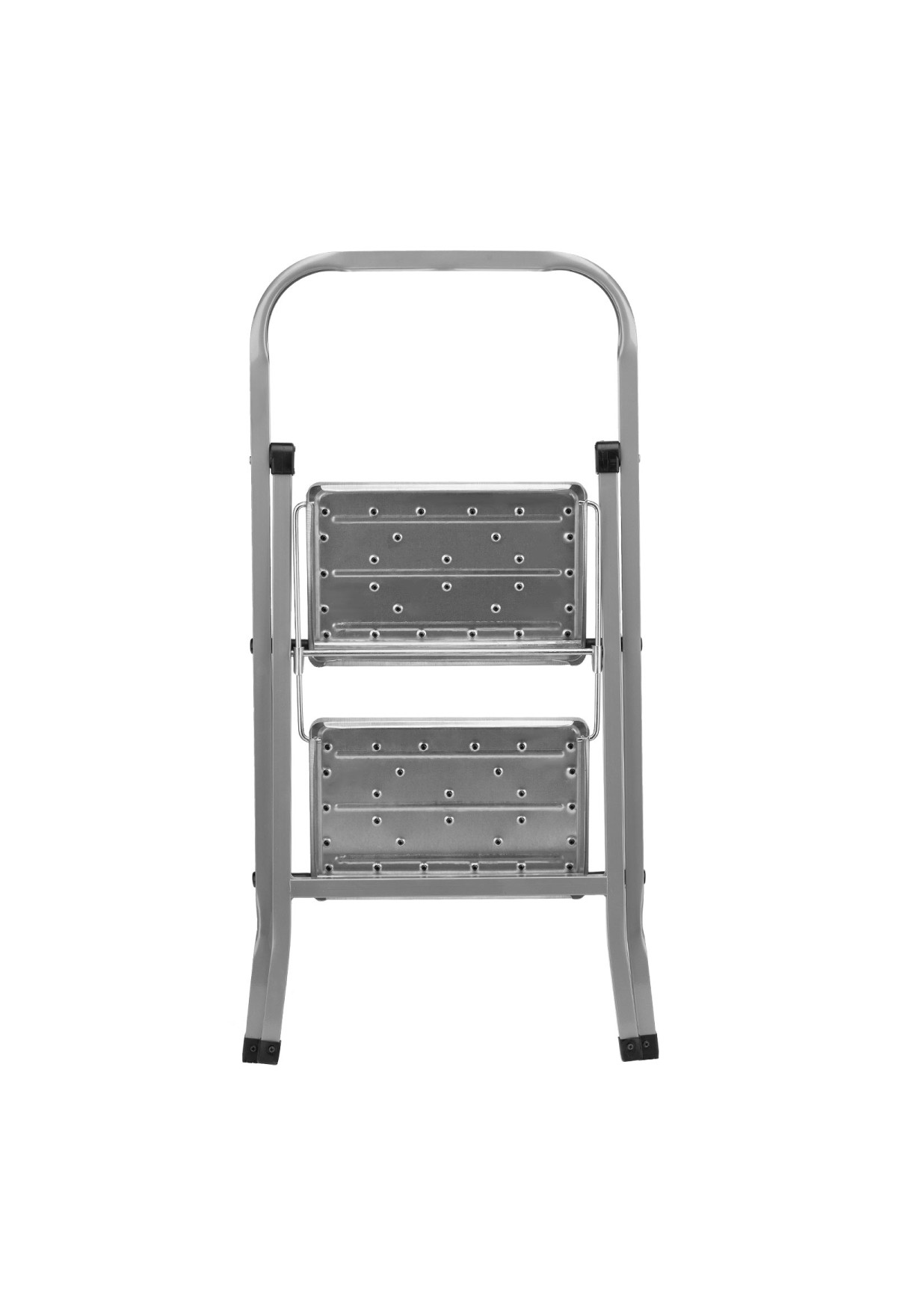 - Прочность — рама и ступени изготовлены из стали, поэтому стремянка выдерживает нагрузку 120 кг.