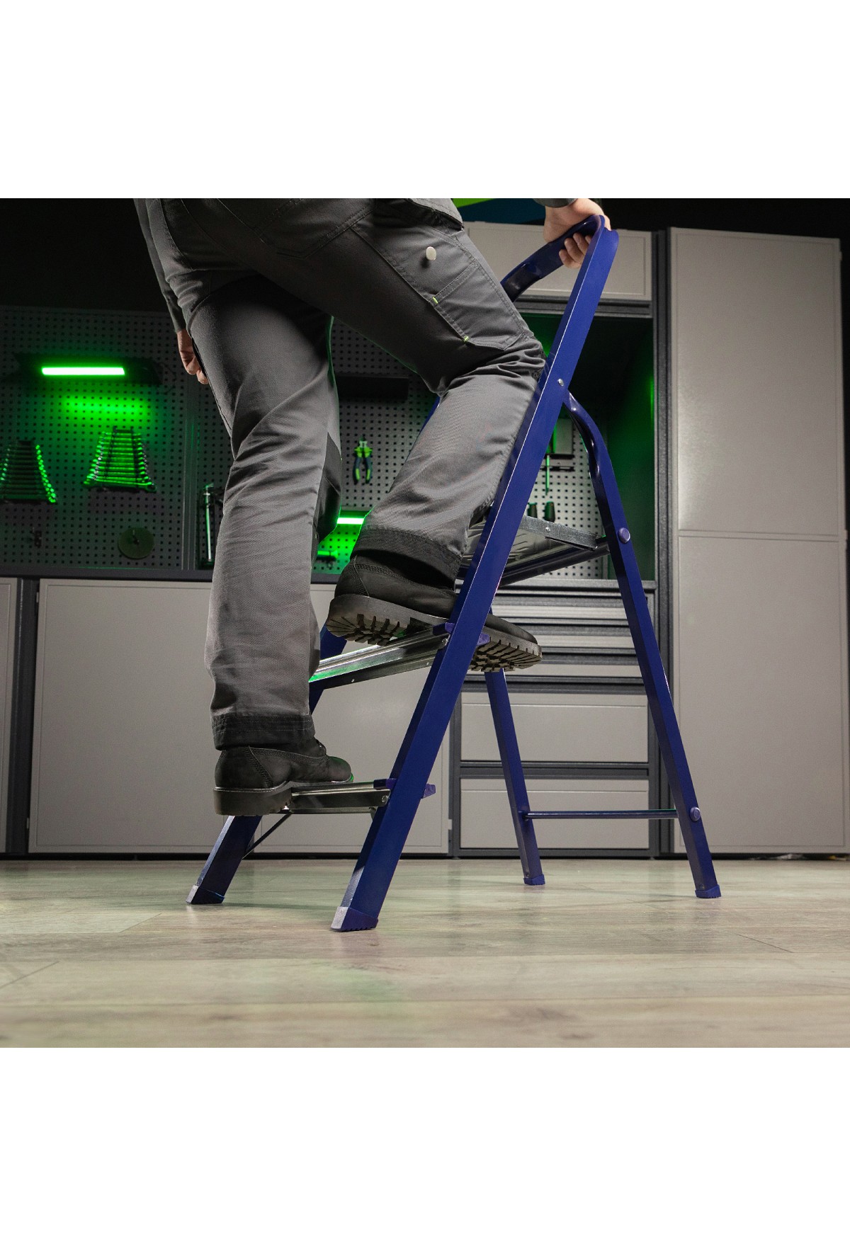 • Повышенная прочность — рама и ступеньки изготовлены из стали и выдерживают нагрузку до 150 кг.