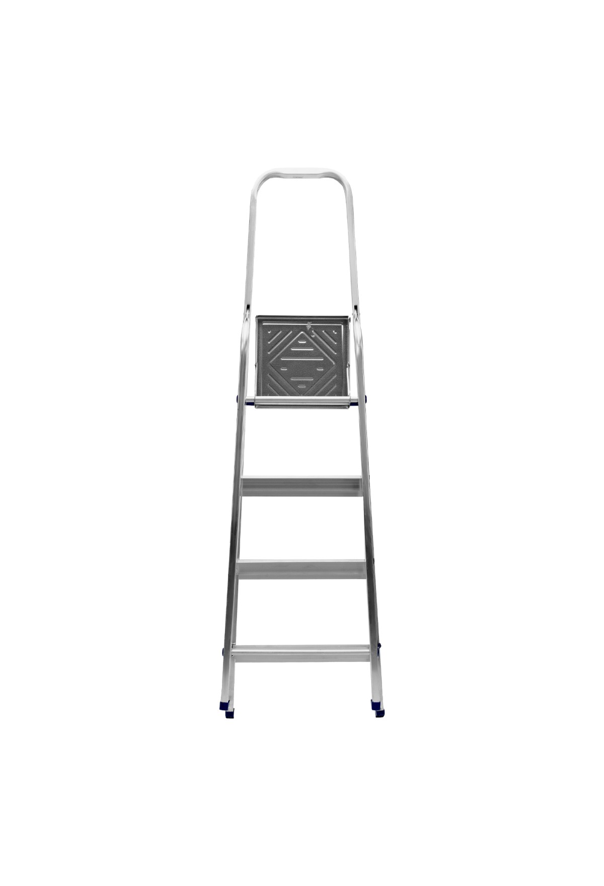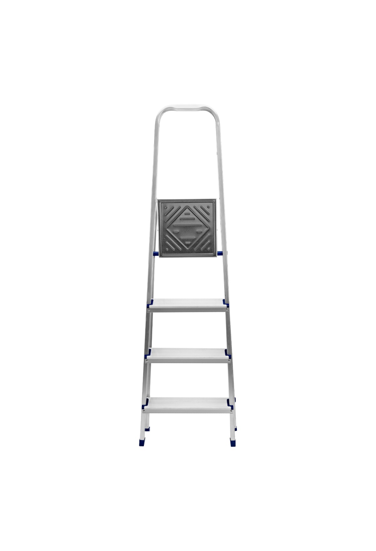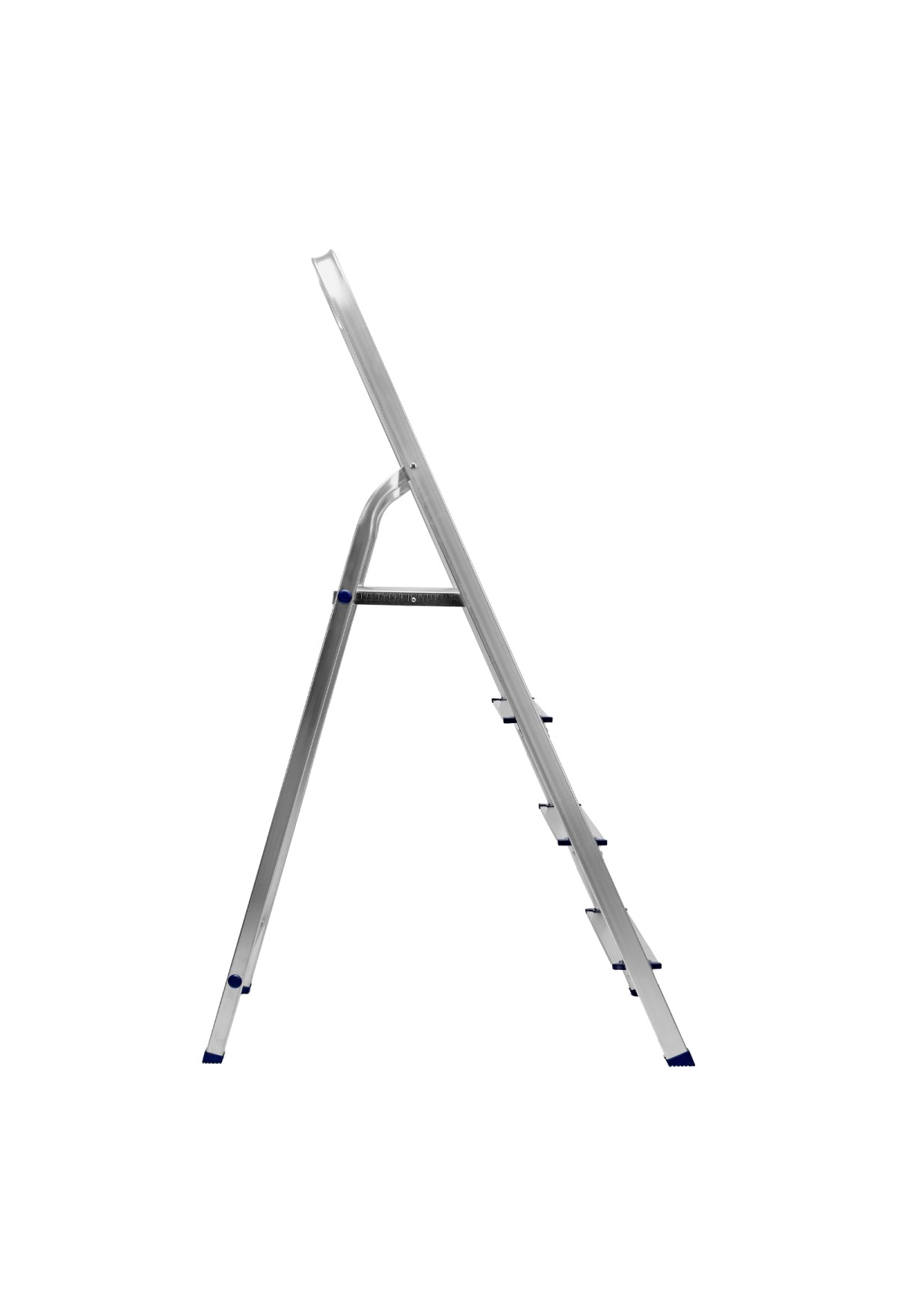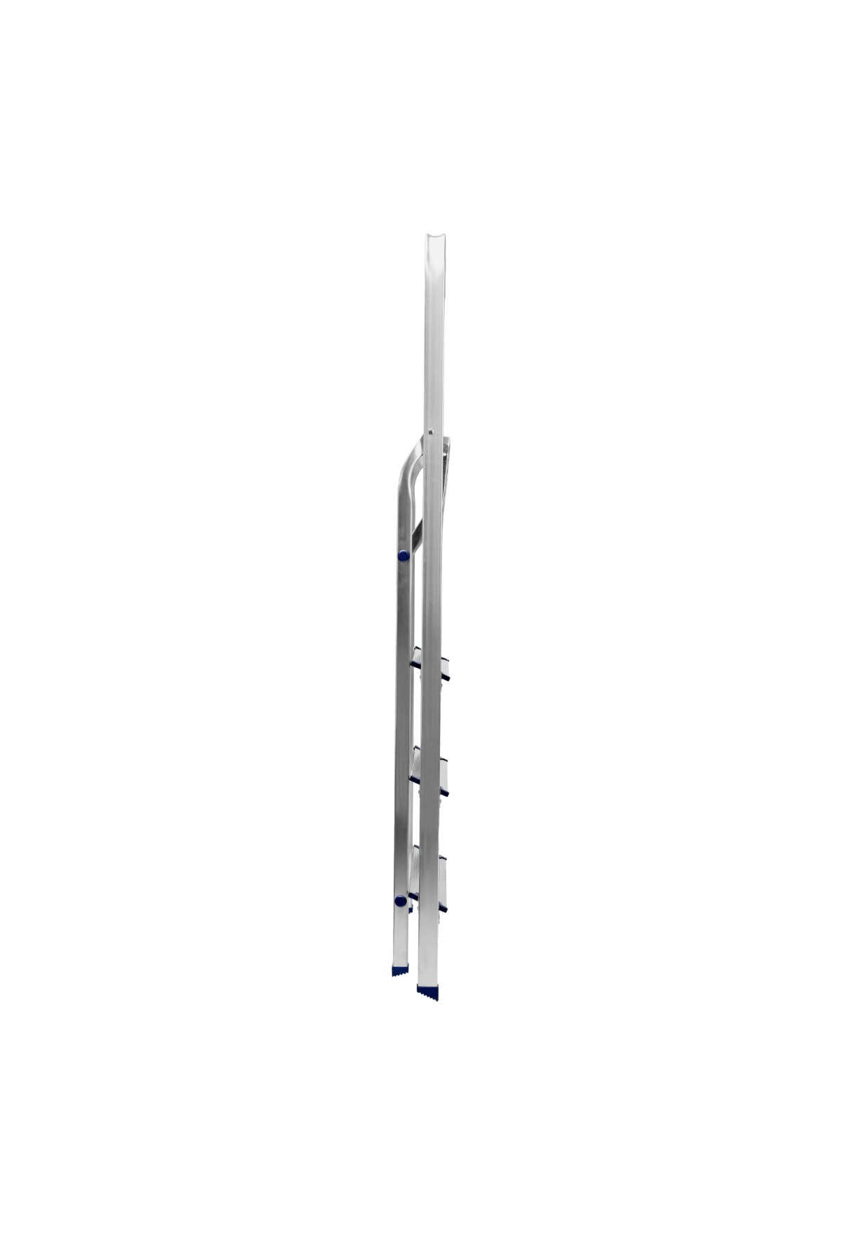 • Надежность — рама из прямоугольного алюминиевого профиля выдерживает нагрузку до 150 кг, широкие ступени закреплены заклепками.