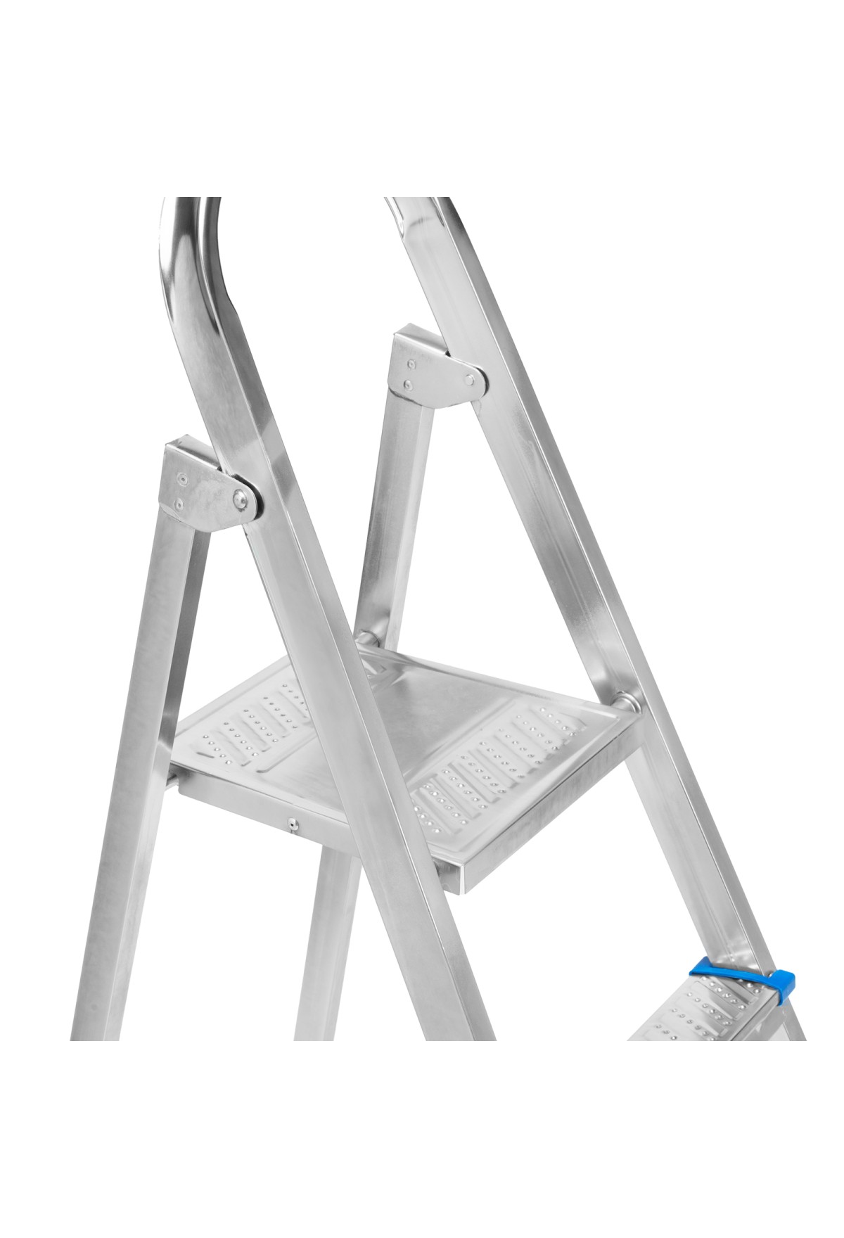 - Простая установка — на верхней площадке предусмотрены специальные зацепы для фиксации стремянки в разложенном состоянии.