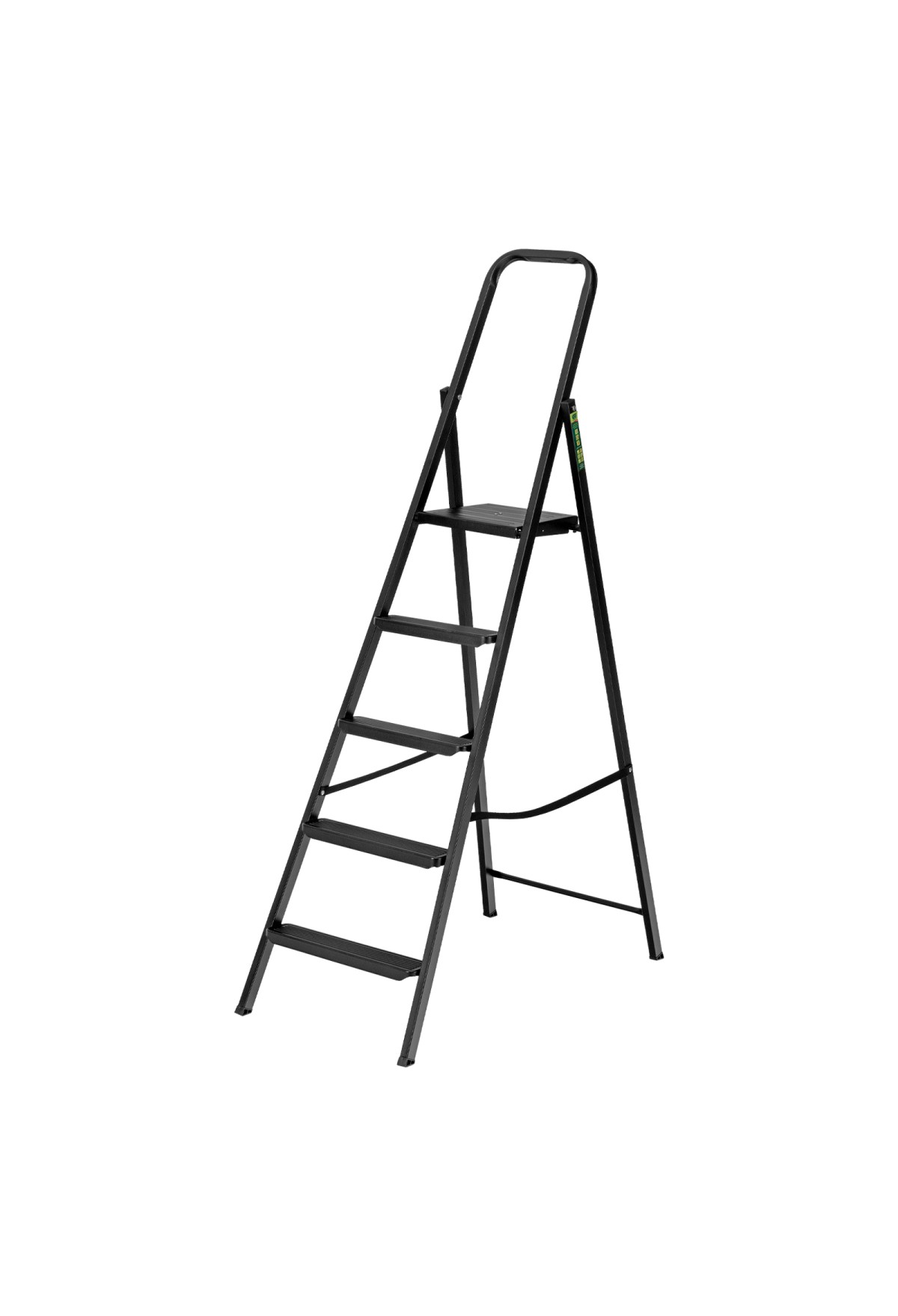 Стремянка компактная стальная Сибртех 97945 с 5 ступенями служит для проведения работ на высоте, превышающей человеческий рост. Стальные профилированные рама и ступени рассчитаны на нагрузку до 150 кг. Площадка находится на высоте 110 см от опорной поверхности, рабочая высота стремянки составляет 310 см (при среднем росте пользователя 170 см). Использовать стремянку можно дома, на даче или в гараже, а также во время строительства и ремонта.