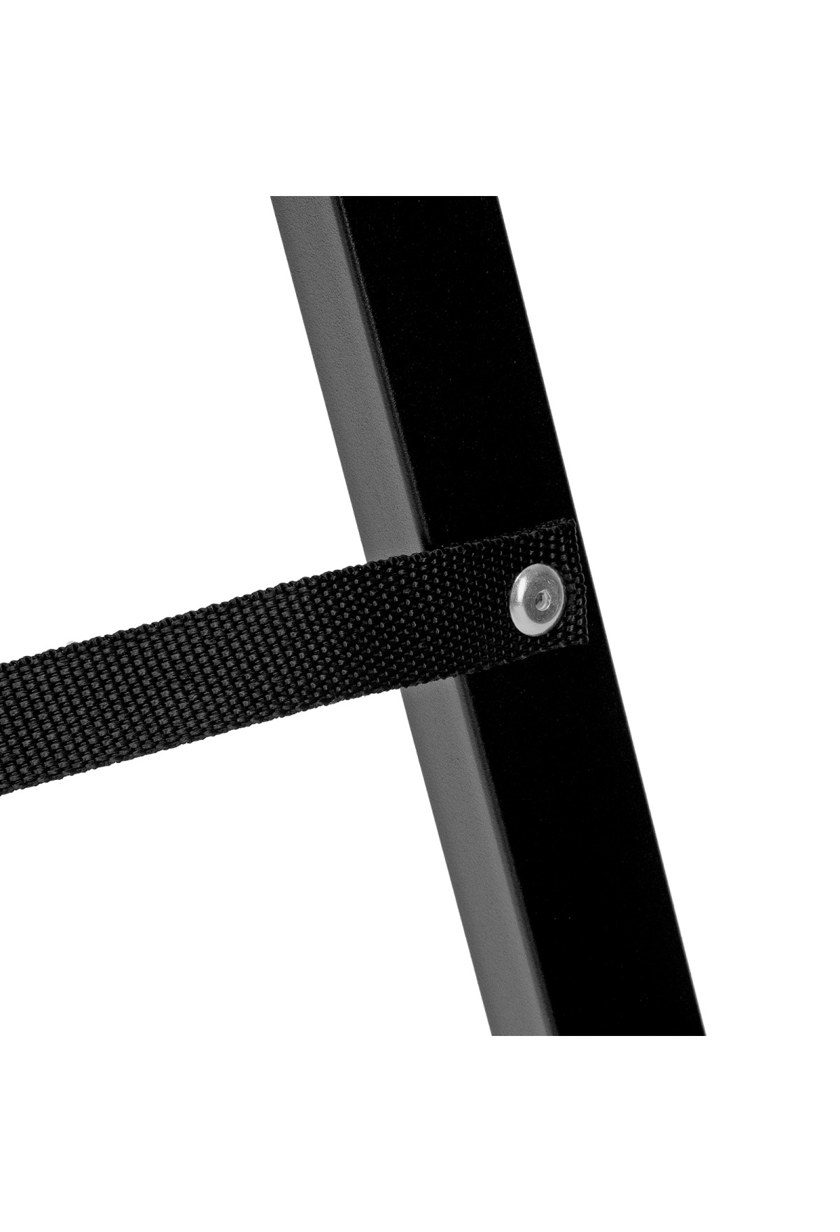 - Надежная фиксация в рабочем положении — на верхней площадке имеются специальные зацепы, опоры дополнительно удерживаются страховочными лентами.