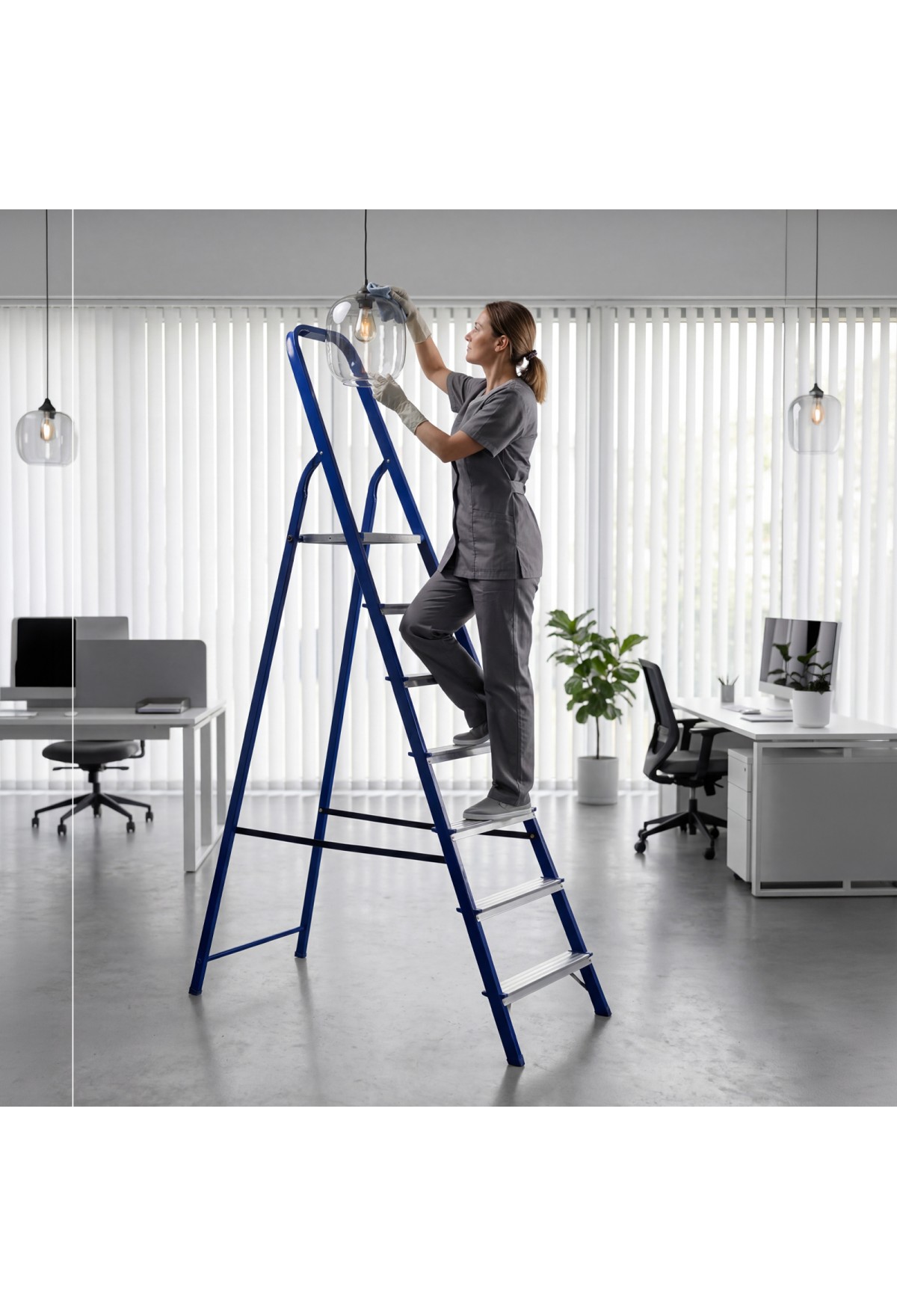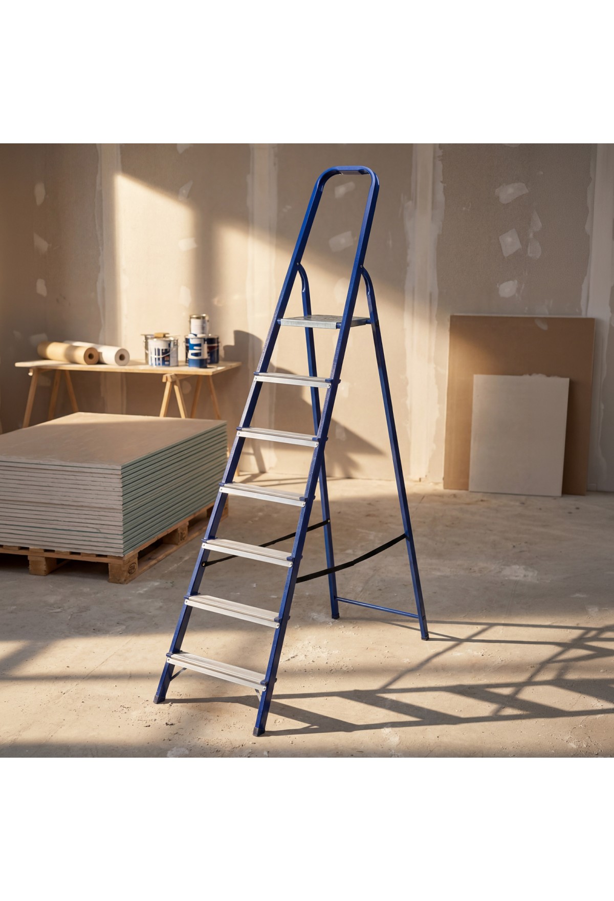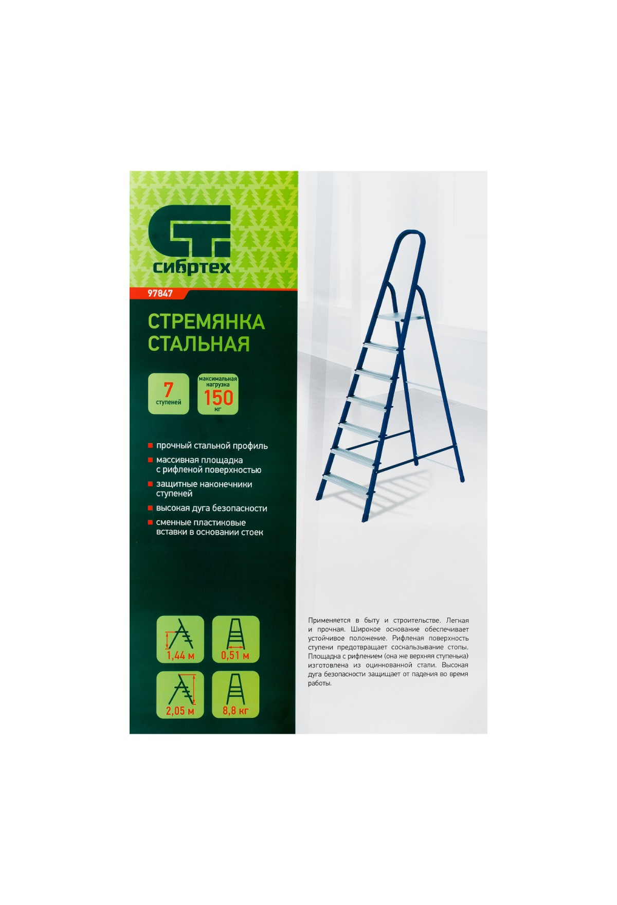 Стремянка стальная Сибртех 97847 с 7 ступенями облегчает выполнение ремонтных, отделочных, а также различных бытовых работ на высоте, превышающей человеческий рост. Площадка находится на высоте 142,5 см от опорной поверхности, рабочая высота стремянки составляет 342,5 см (при среднем росте пользователя 170 см). Высокая дуга безопасности обеспечивает удобную эксплуатацию. Стремянка пригодится дома и на даче.