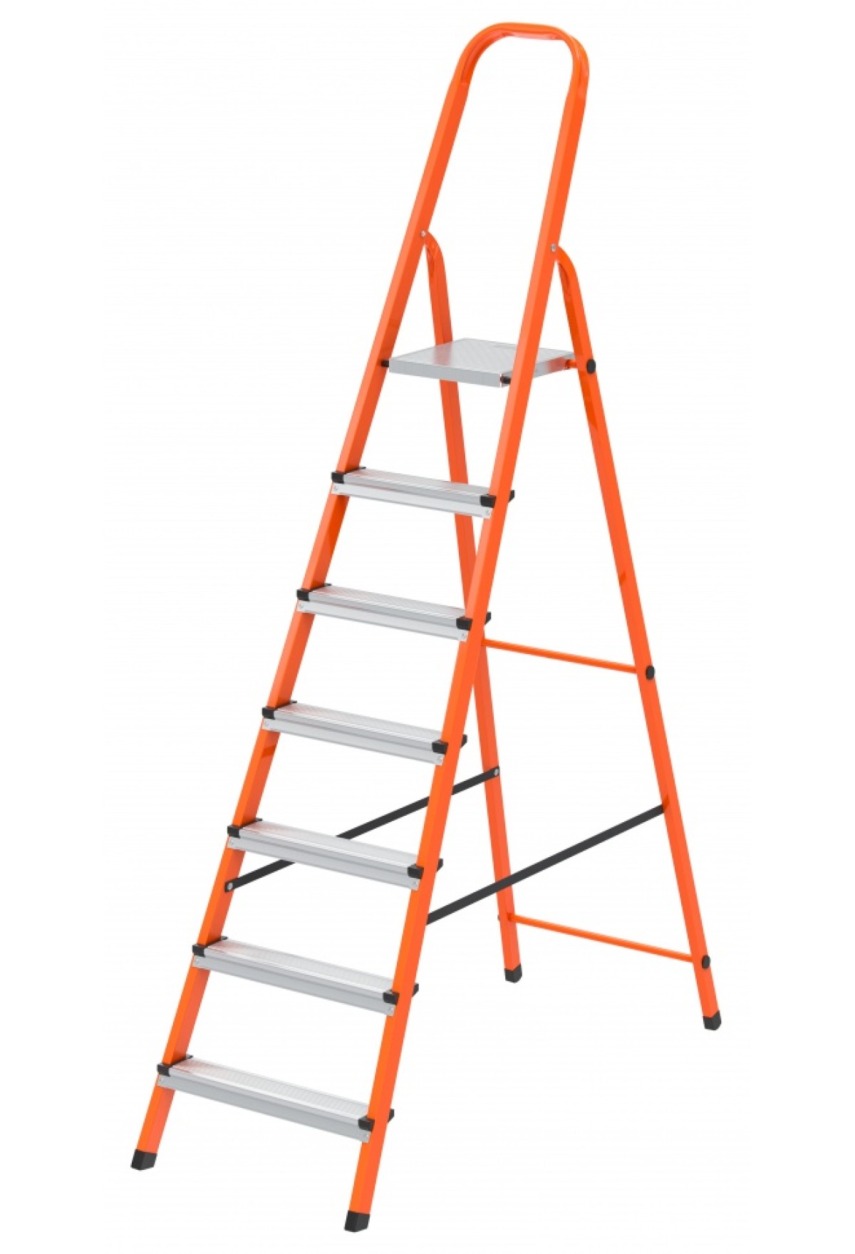 Технические характеристики Стремянка, 7 ступеней, стальной профиль, ступени сталь, оранжевая, Россия, Сибртех