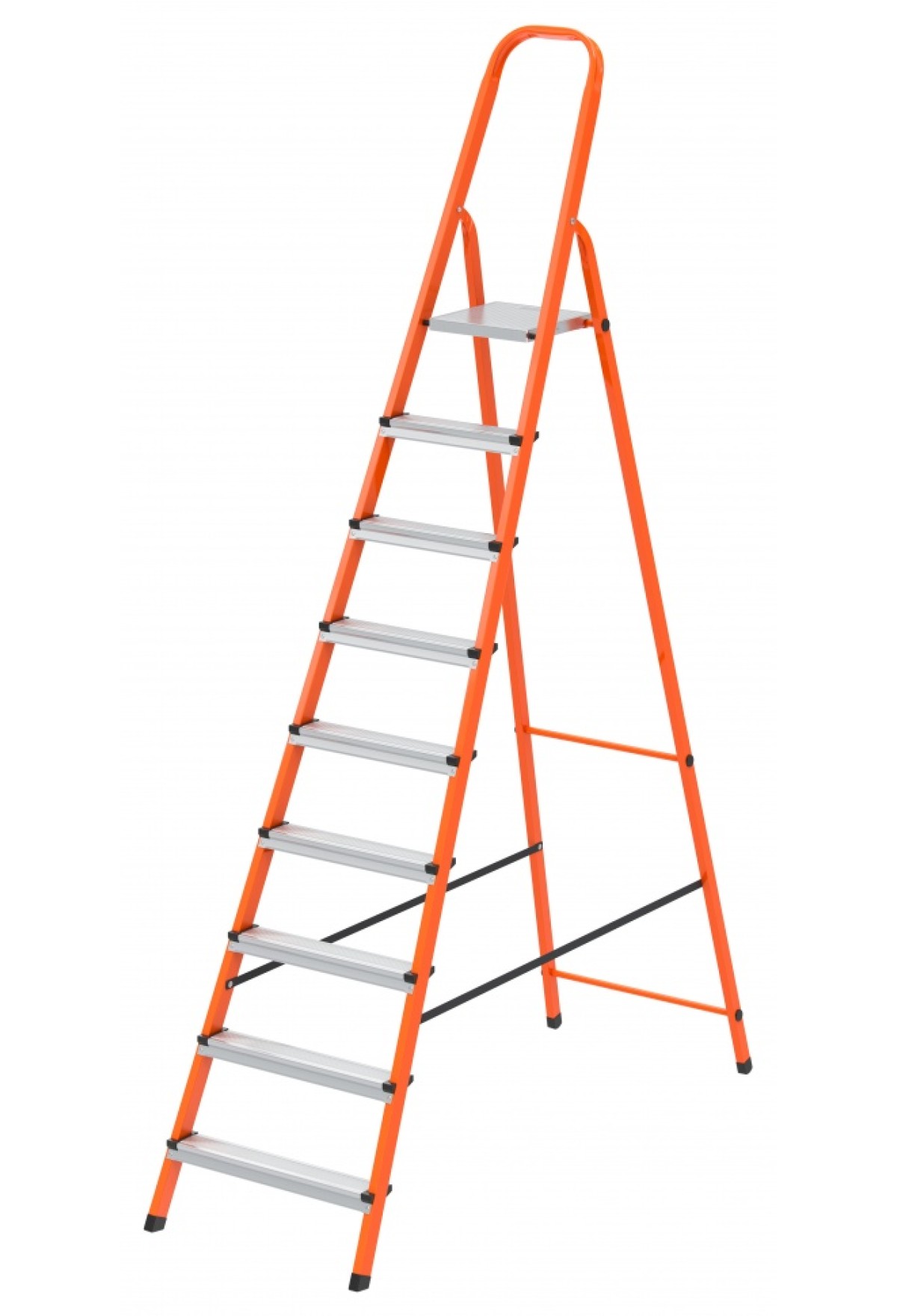 Технические характеристики Стремянка, 9 ступеней, стальной профиль, ступени сталь, оранжевая, Россия, Сибртех