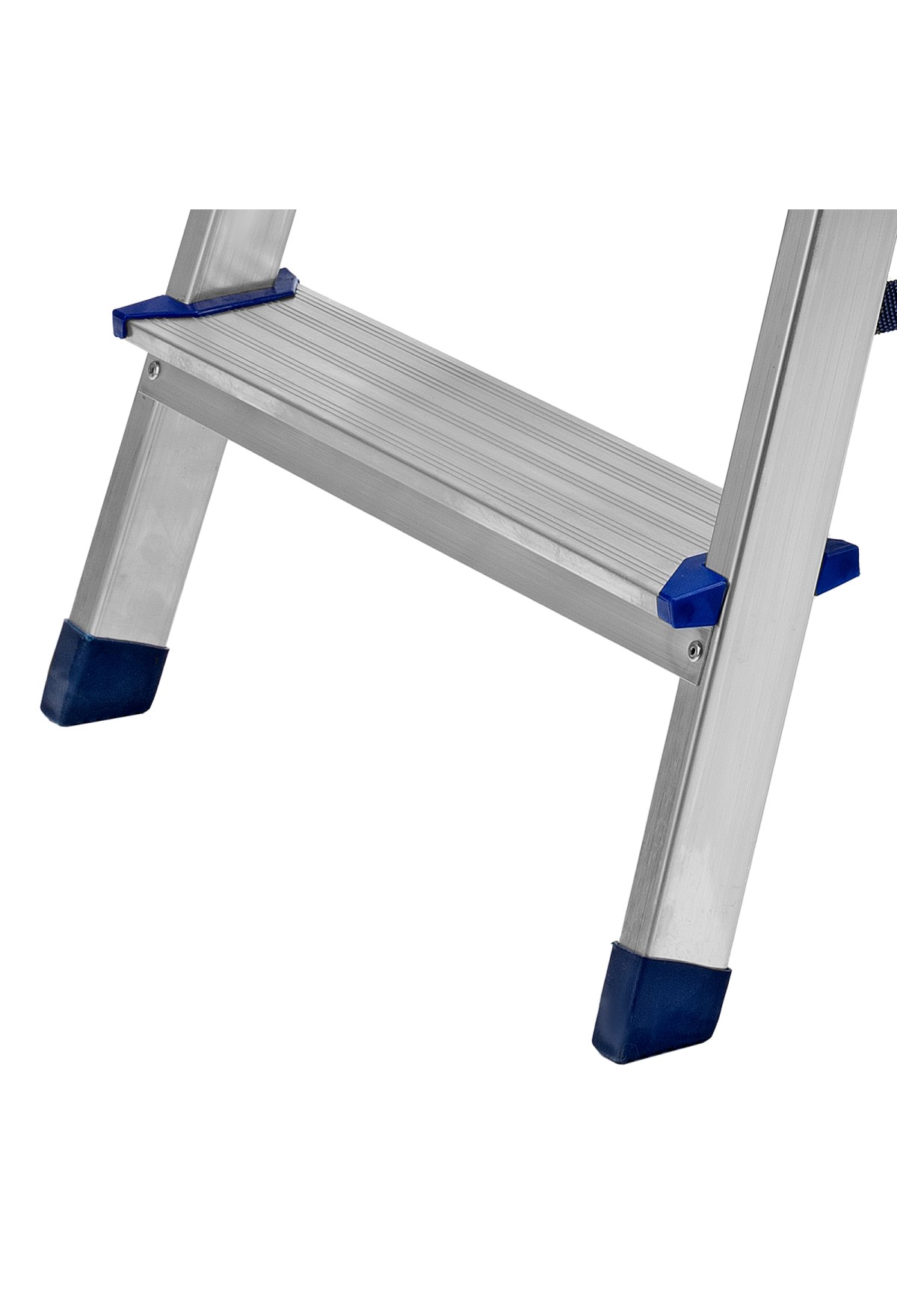 - Долговечность — стремянка выполнена из легкого, но прочного алюминия, устойчивого к коррозии.