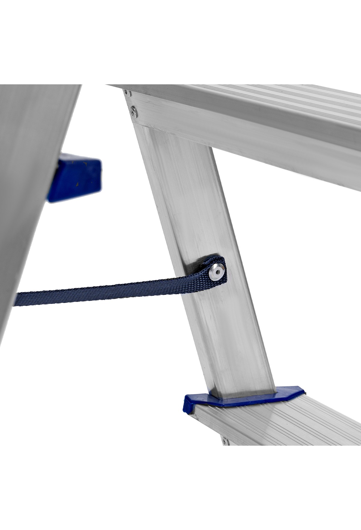 - Продуманная конструкция — нейлоновые страховочные стяжки повышают надежность фиксации стремянки в рабочем положении.