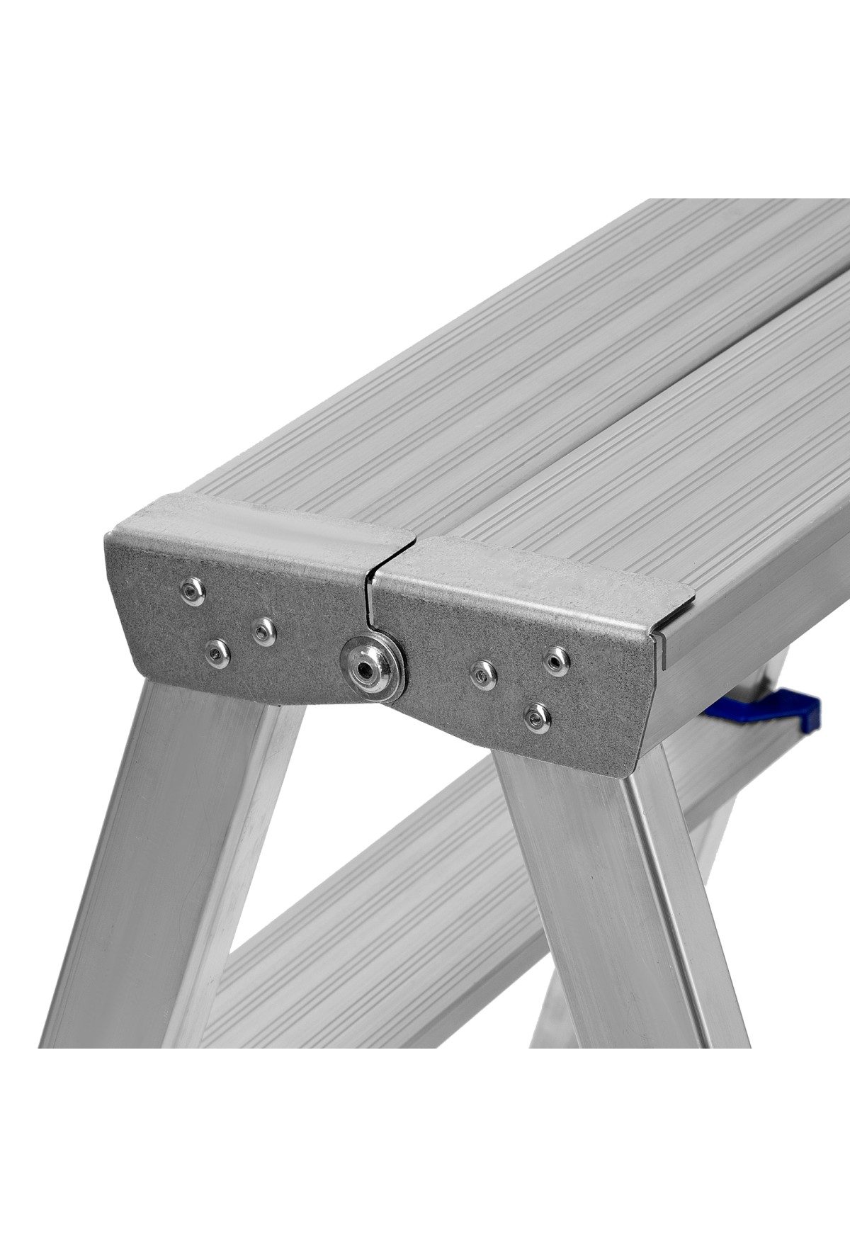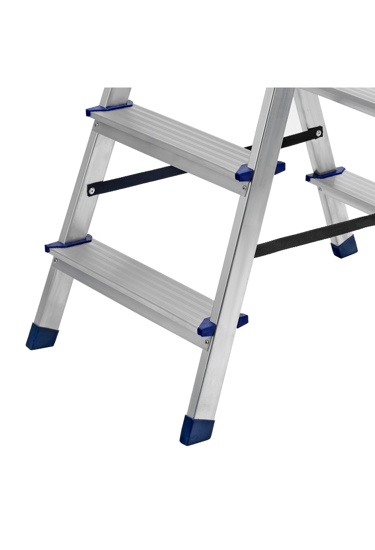 - Продуманная конструкция — нейлоновые страховочные стяжки повышают надежность фиксации стремянки в рабочем положении.