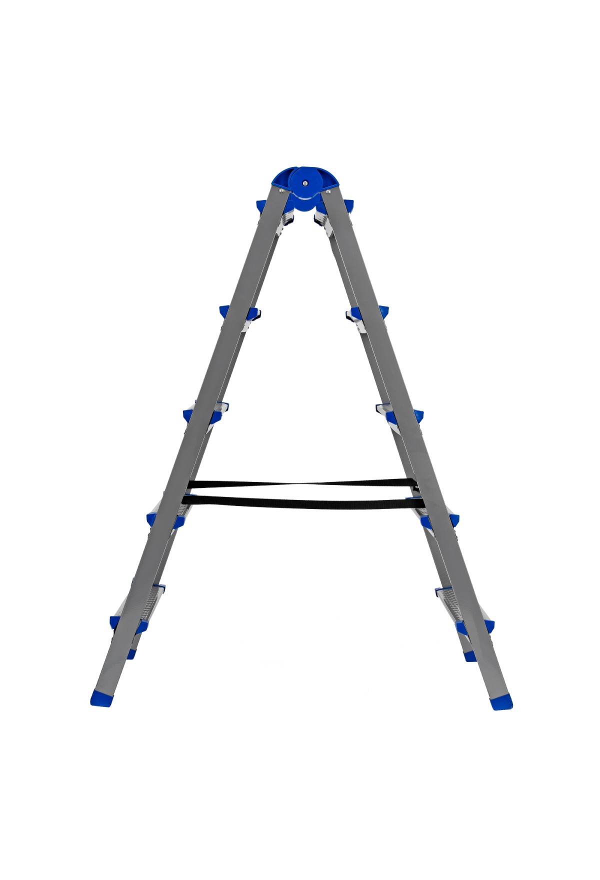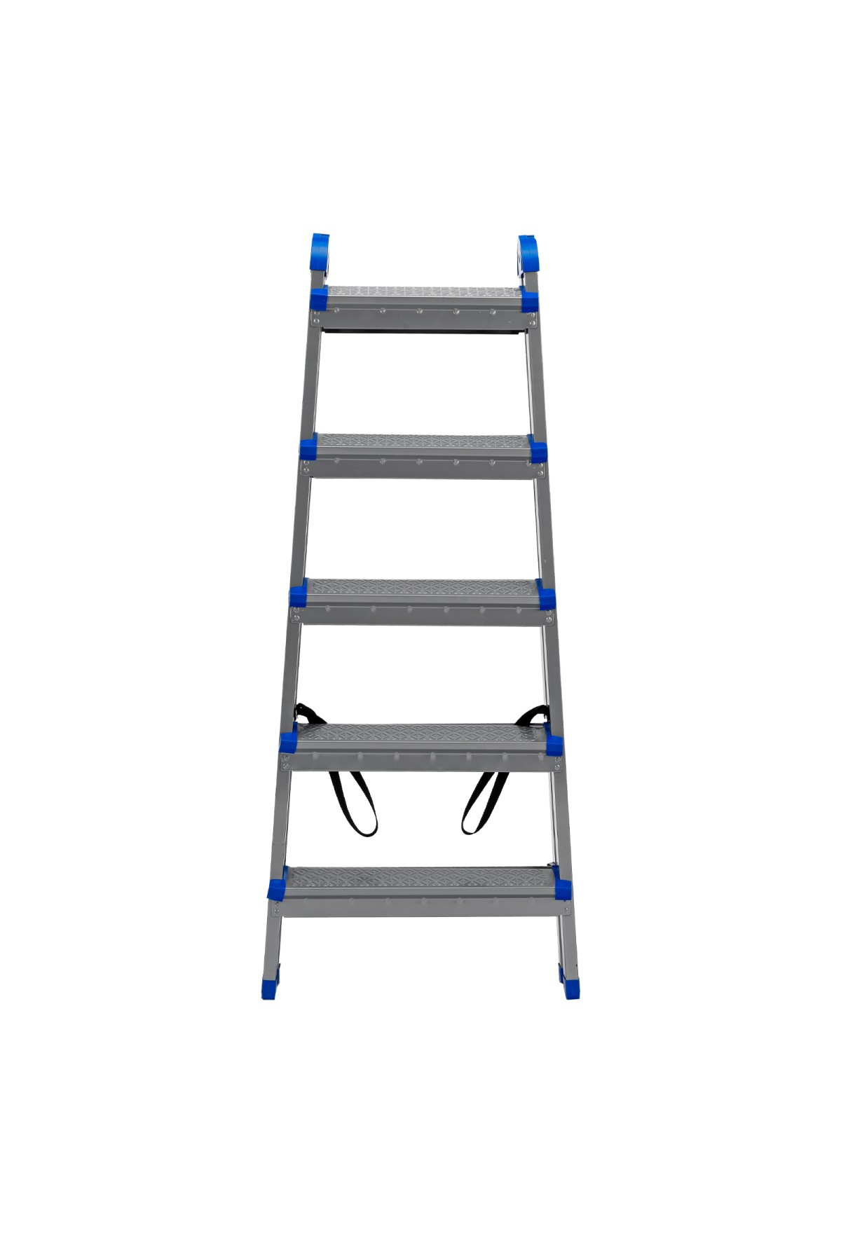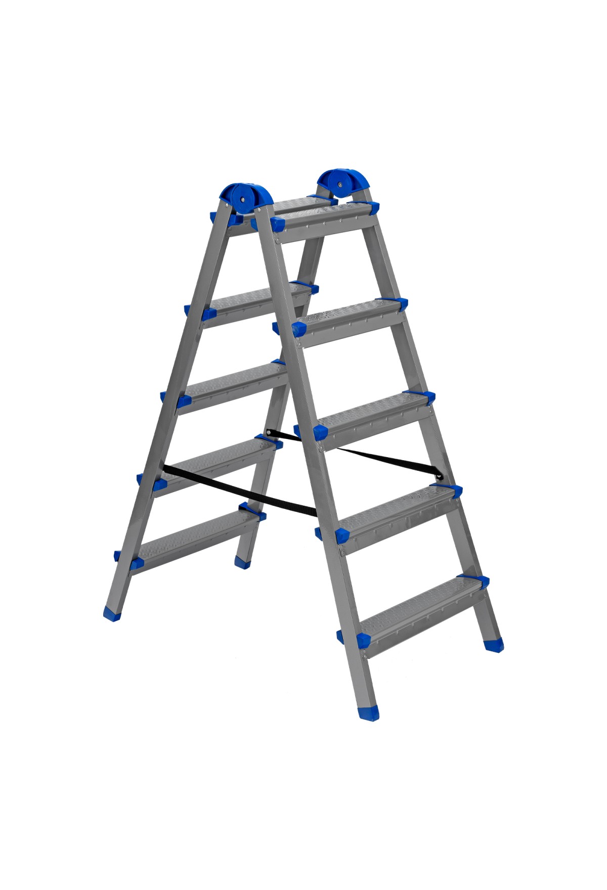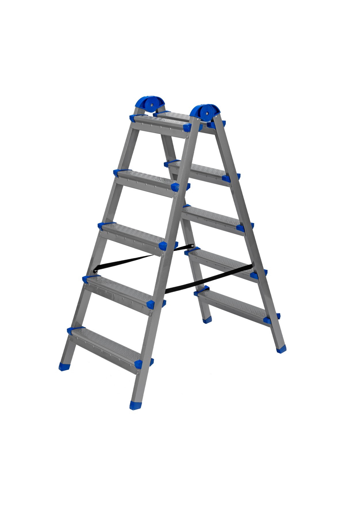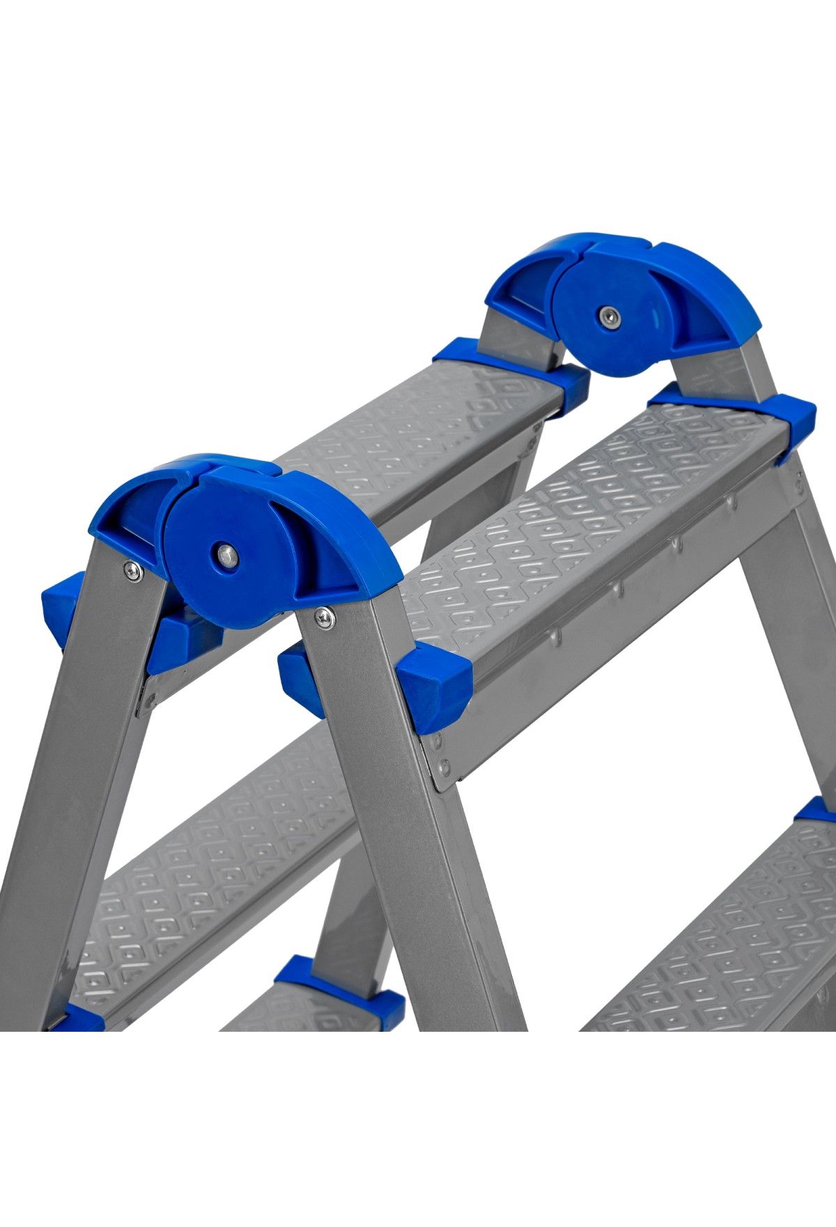 Стремянка двухсторонняя Сибртех 97985 со стальным профилем и 5 стальными ступенями помогает решать бытовые задачи на высоте, превышающей человеческий рост. Ее используют, чтобы доставать предметы с антресолей или шкафов, проводить уборку, менять лампочки, вешать полки или картины. Работать с электроинструментом на ней не рекомендуется. Стремянка с пластиковым складным механизмом повышенной стабильности и широким основанием очень устойчива на ровной поверхности. Площадка находится на высоте 110 см от опорной поверхности, рабочая высота стремянки составляет 310 см (при среднем росте пользователя 170 см).