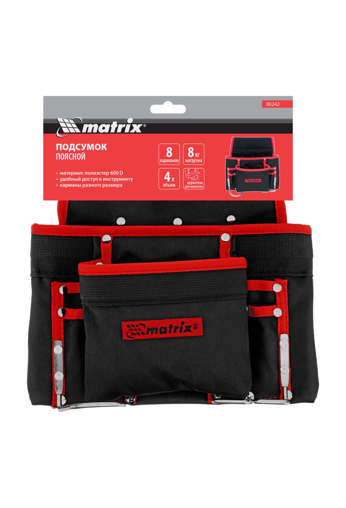 Подсумок поясной, 8 карманов, держатель для молотка, для клещей Matrix