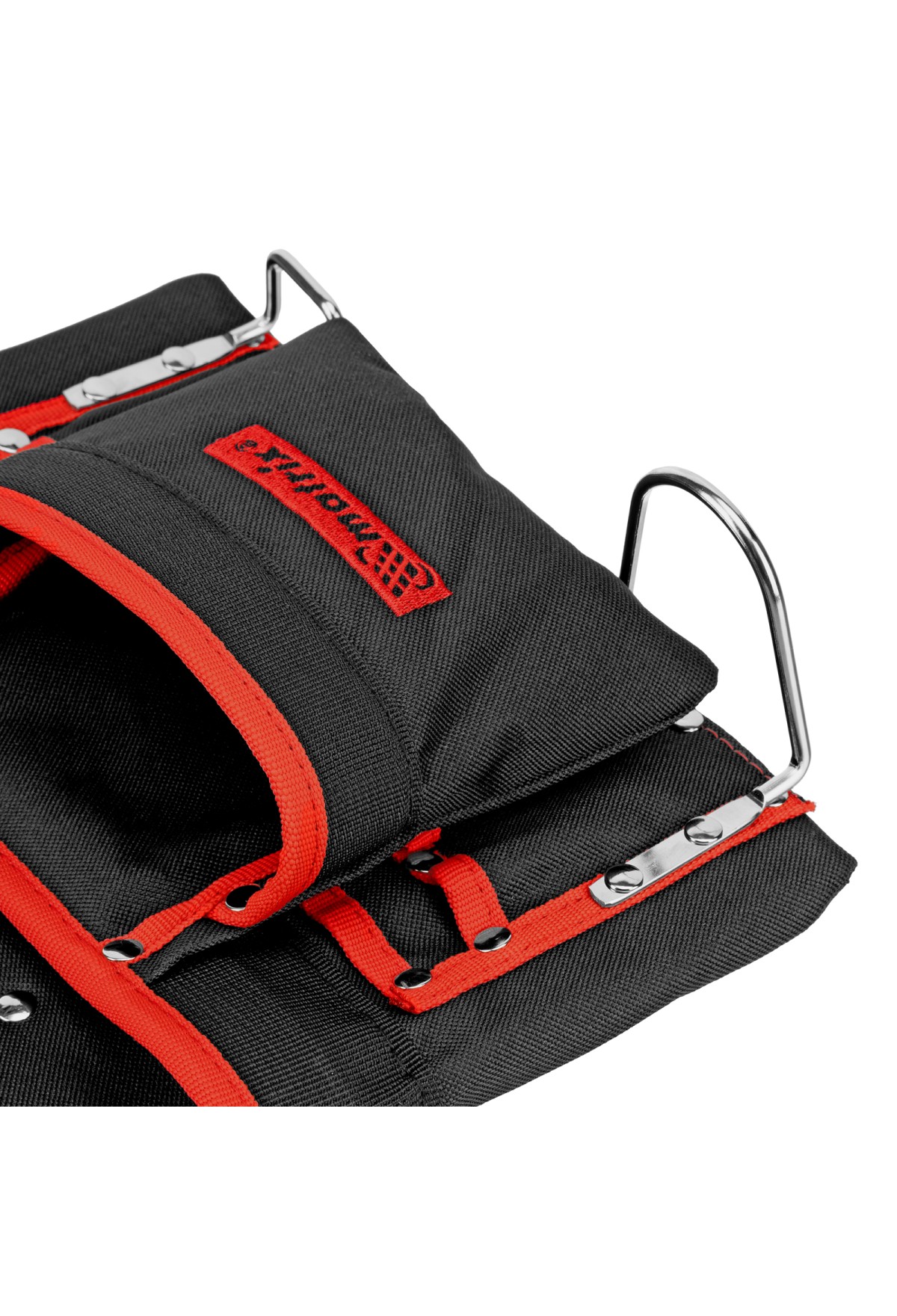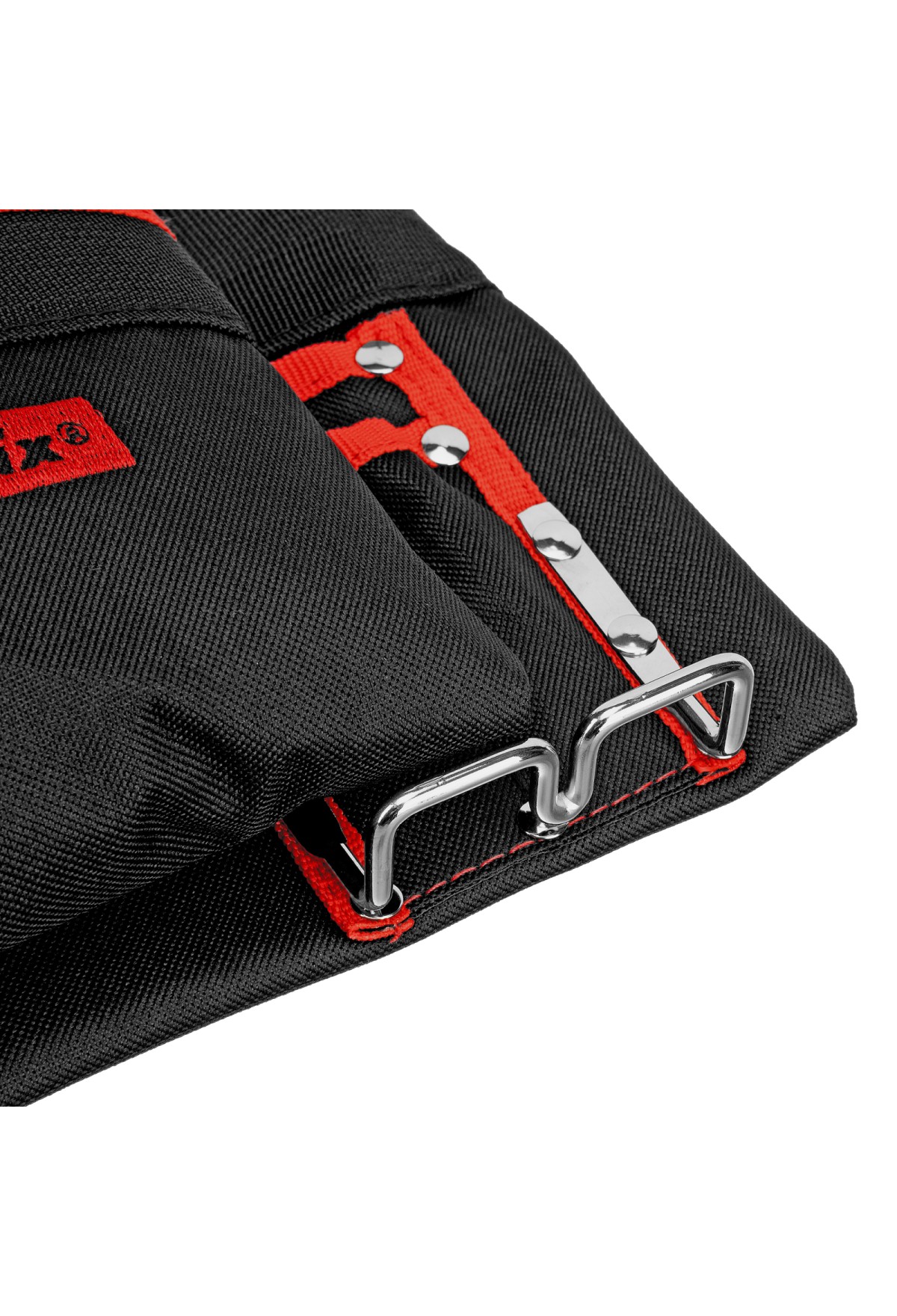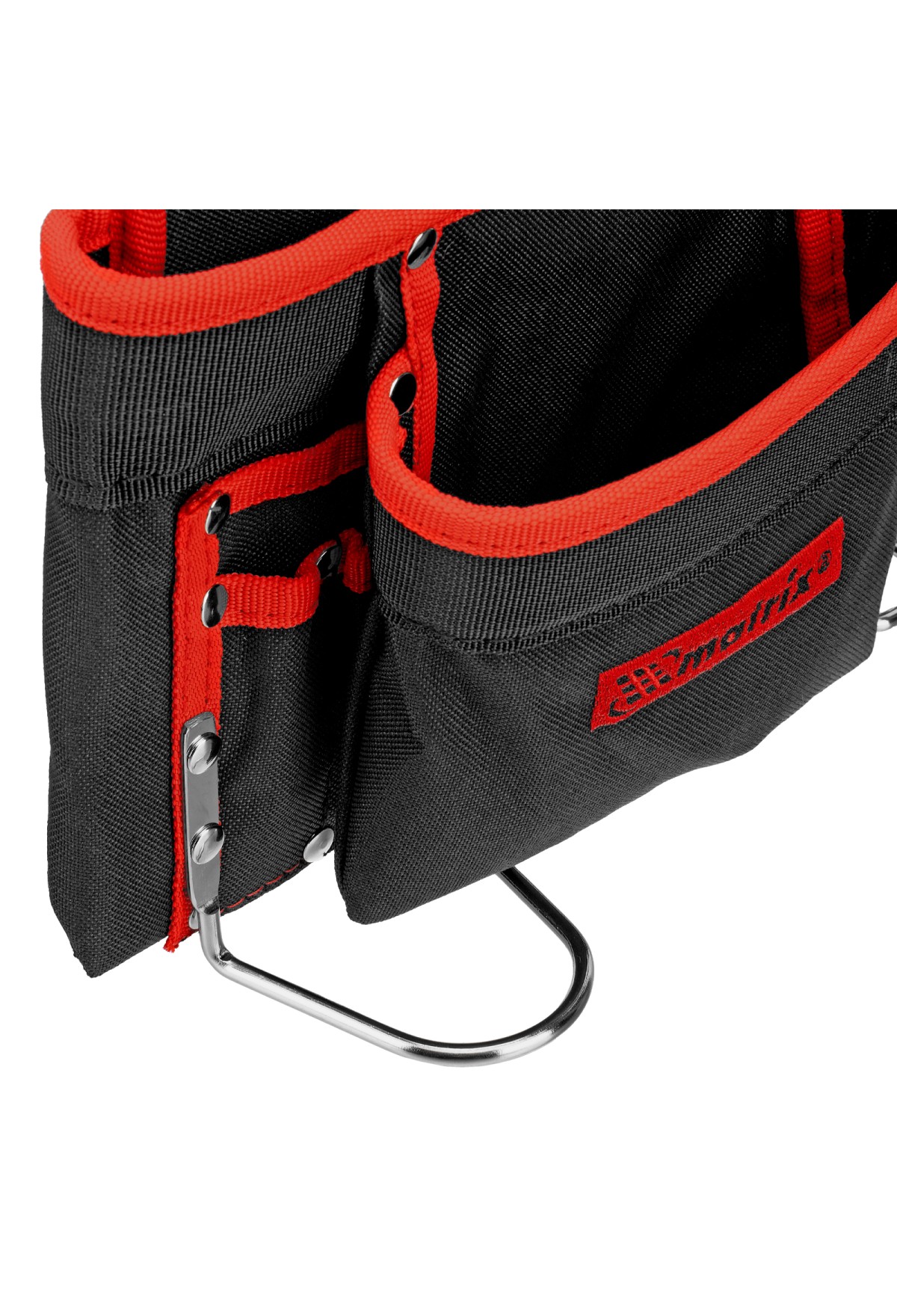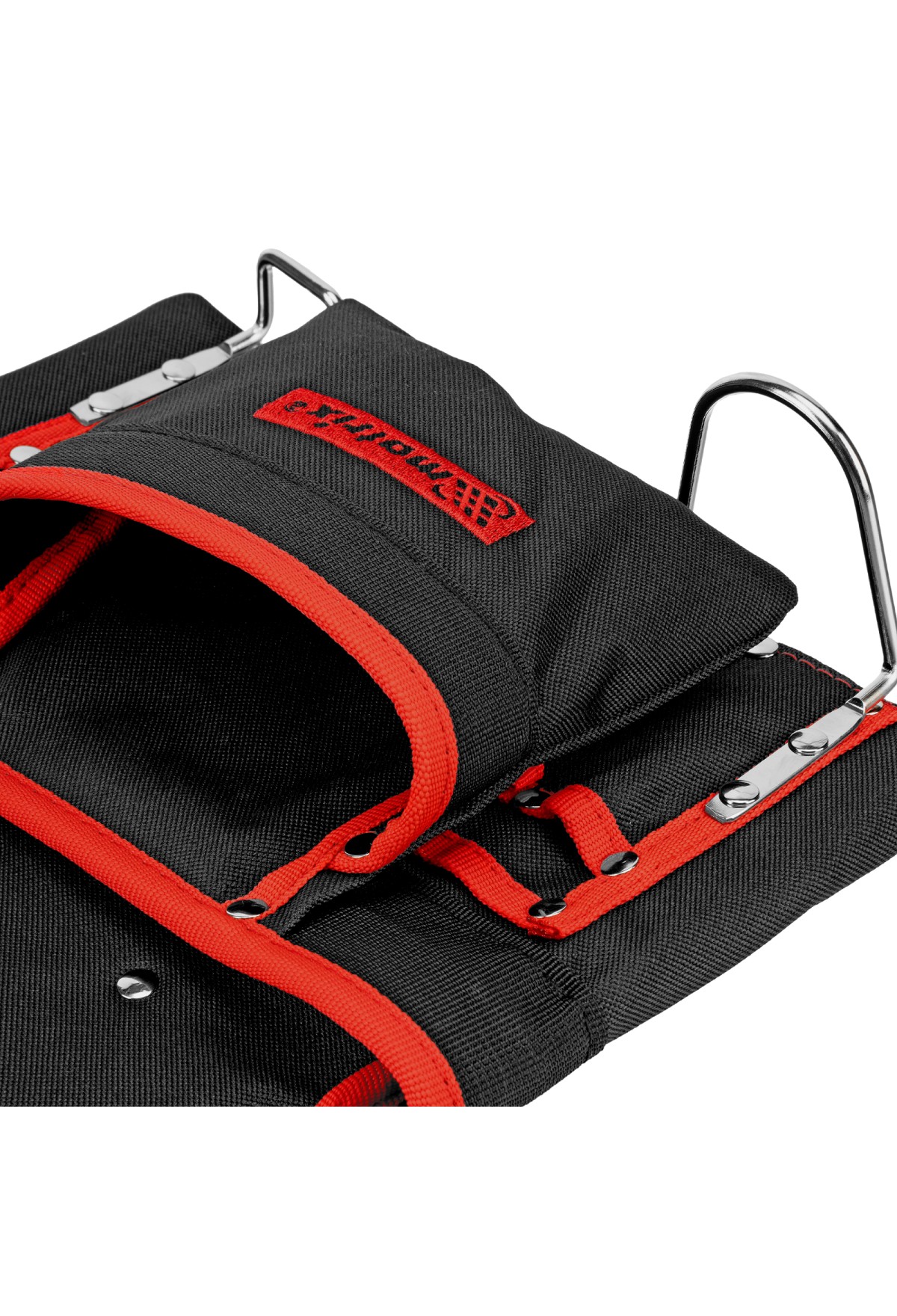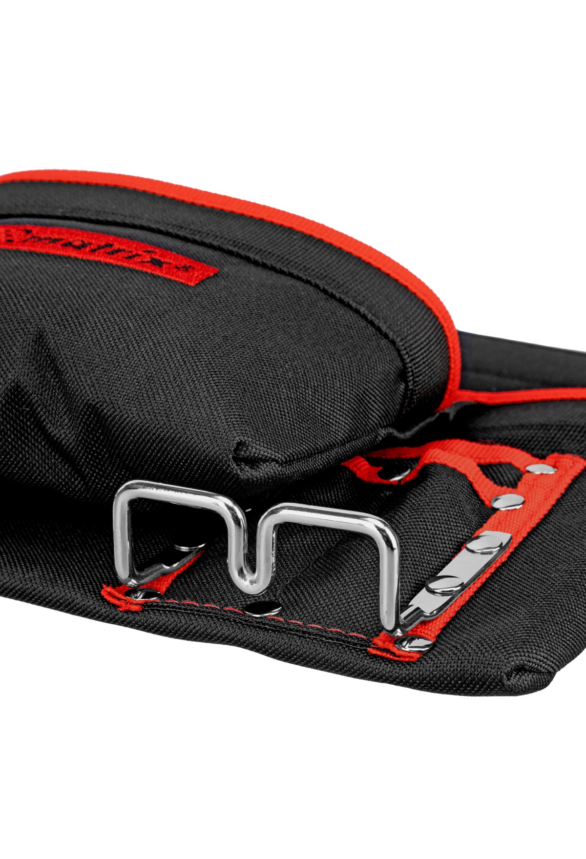 - Быстрый доступ к молотку и клещам — металлические держатели для них закреплены снаружи подсумка.