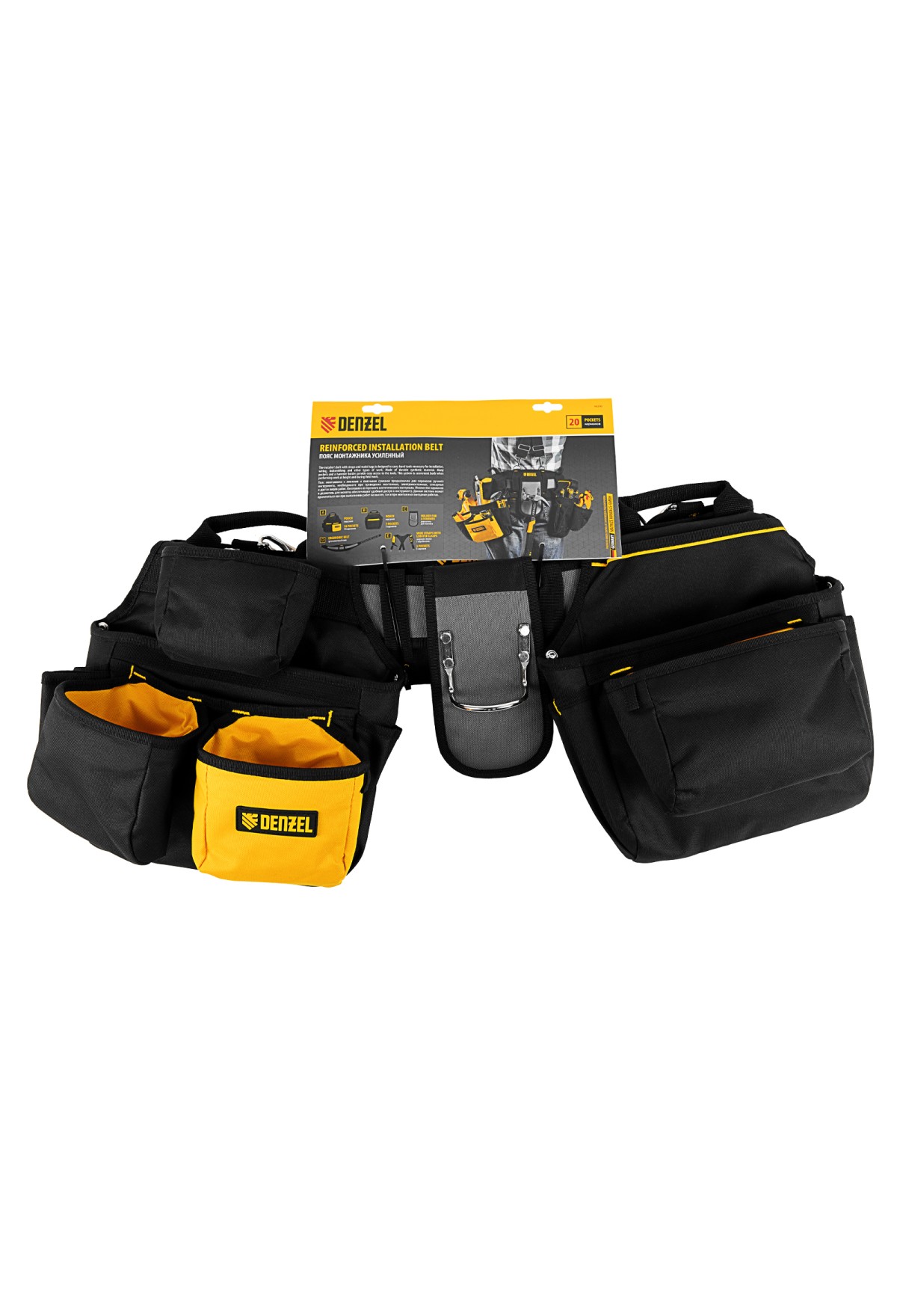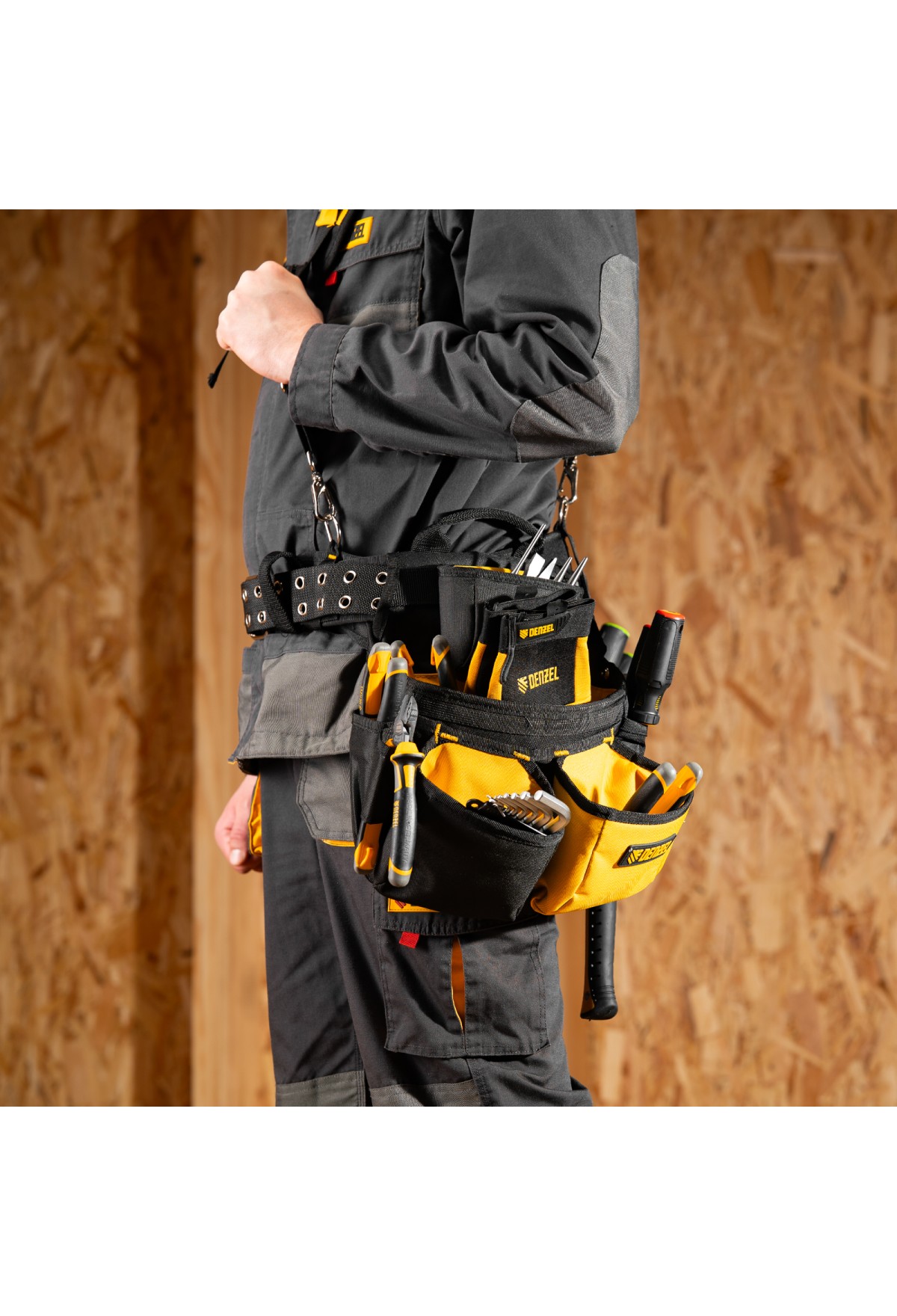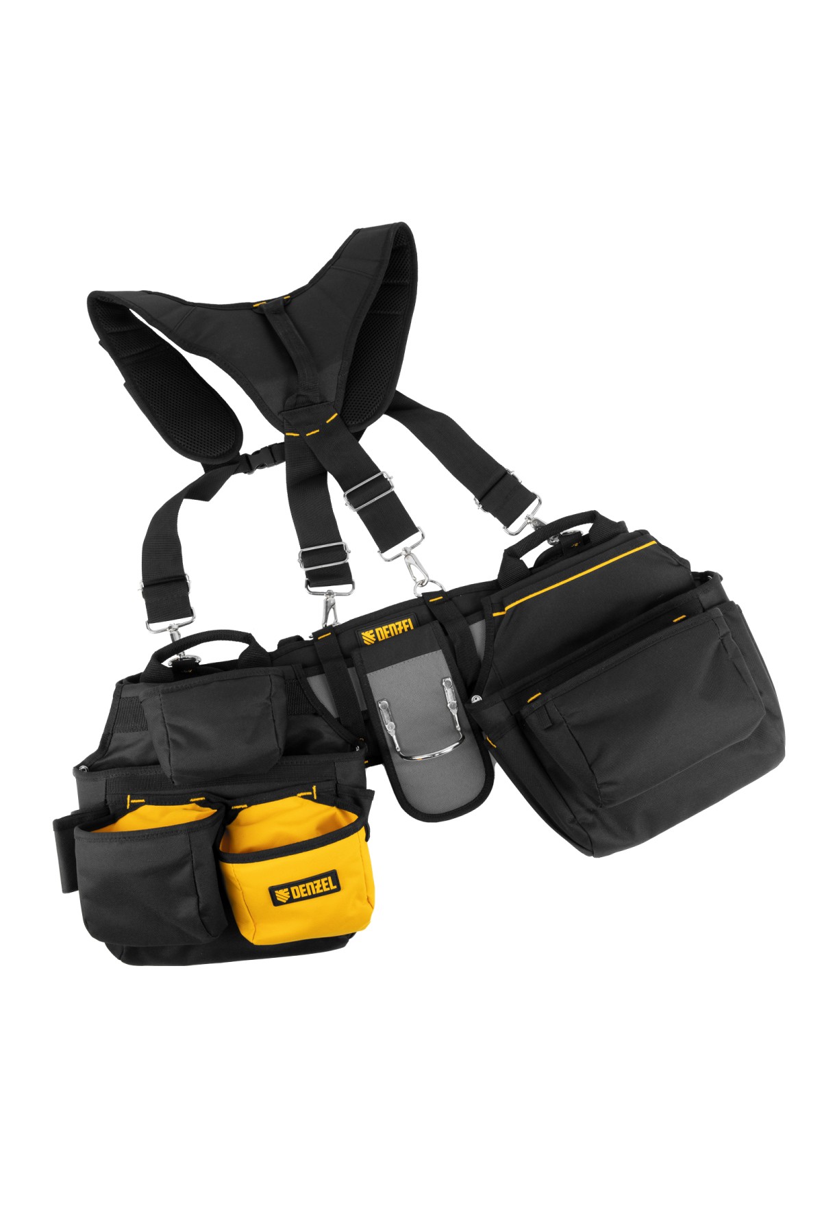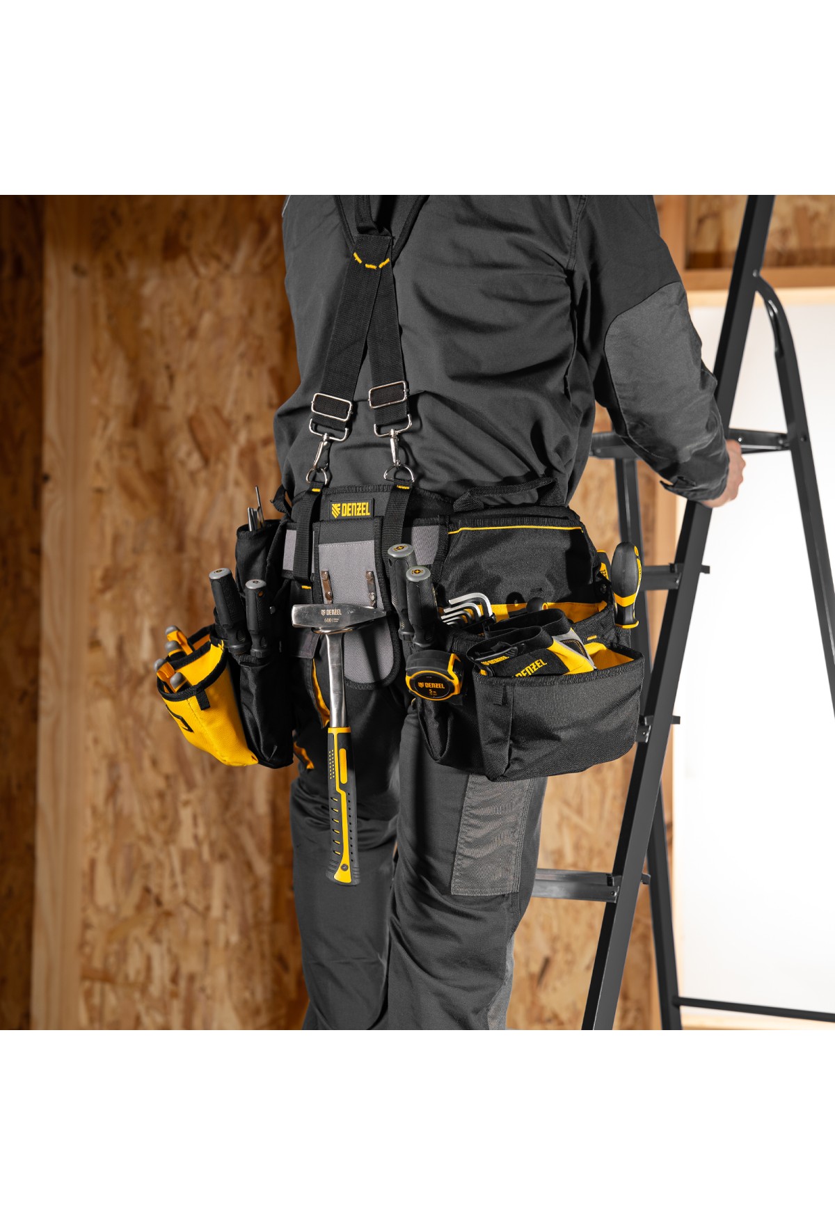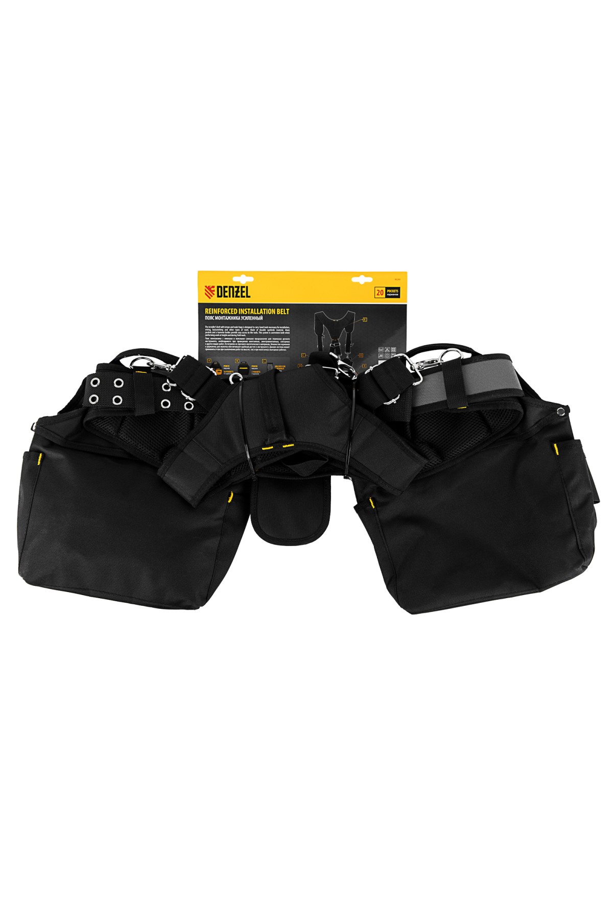 Пояс монтажника усиленный, с лямками, сумки поясные, держатель для молотка// Denzel