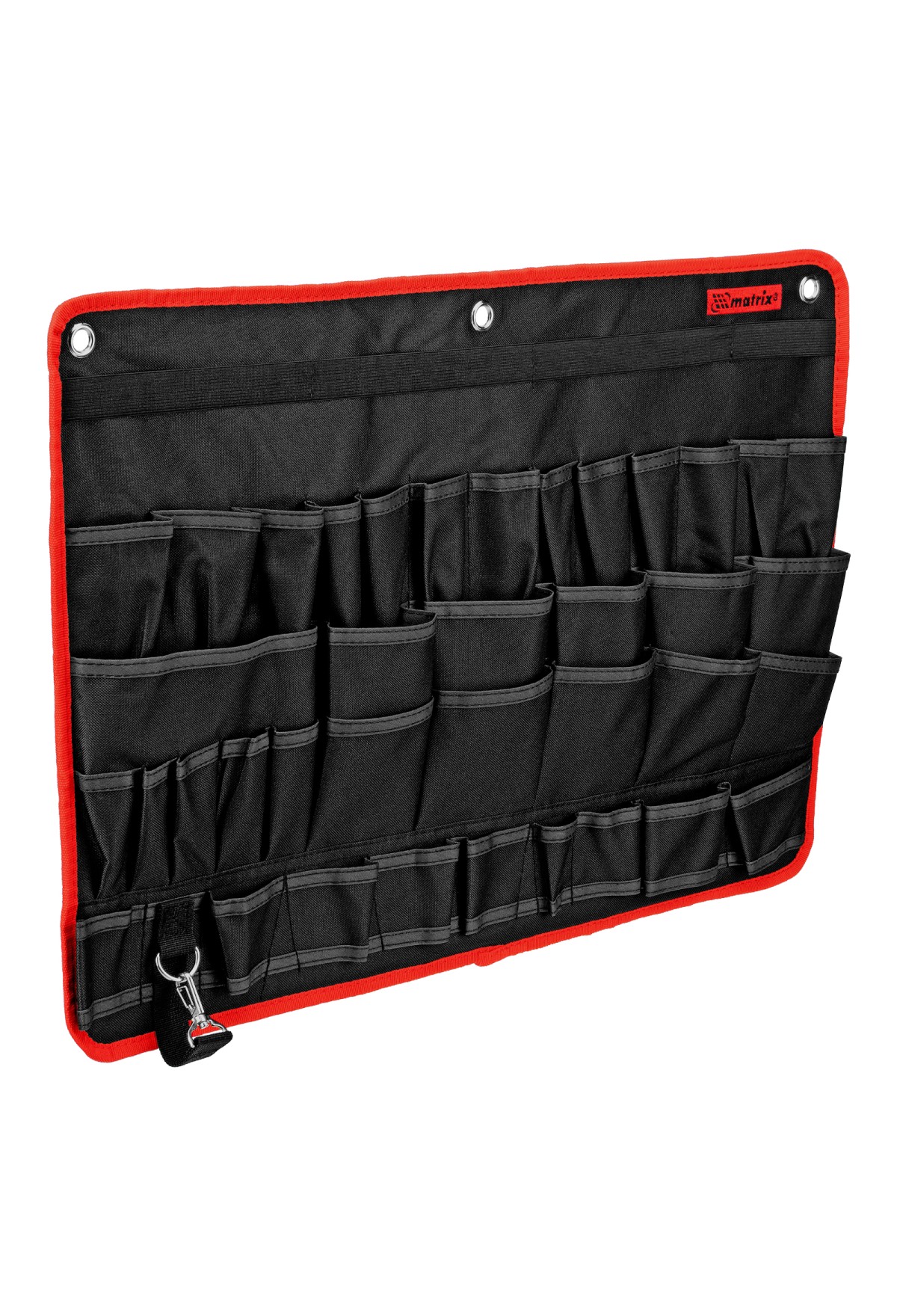 Настенная раскладка для инструмента Matrix 90245 размером 675 х 450 мм предназначена для хранения слесарных, монтажных и других принадлежностей. Благодаря ей все инструменты будут на своих местах и не потеряются. Разместить раскладку очень просто — она вешается на стену при помощи установленных в материале люверсов. Будет полезна дома, на даче и в гараже.