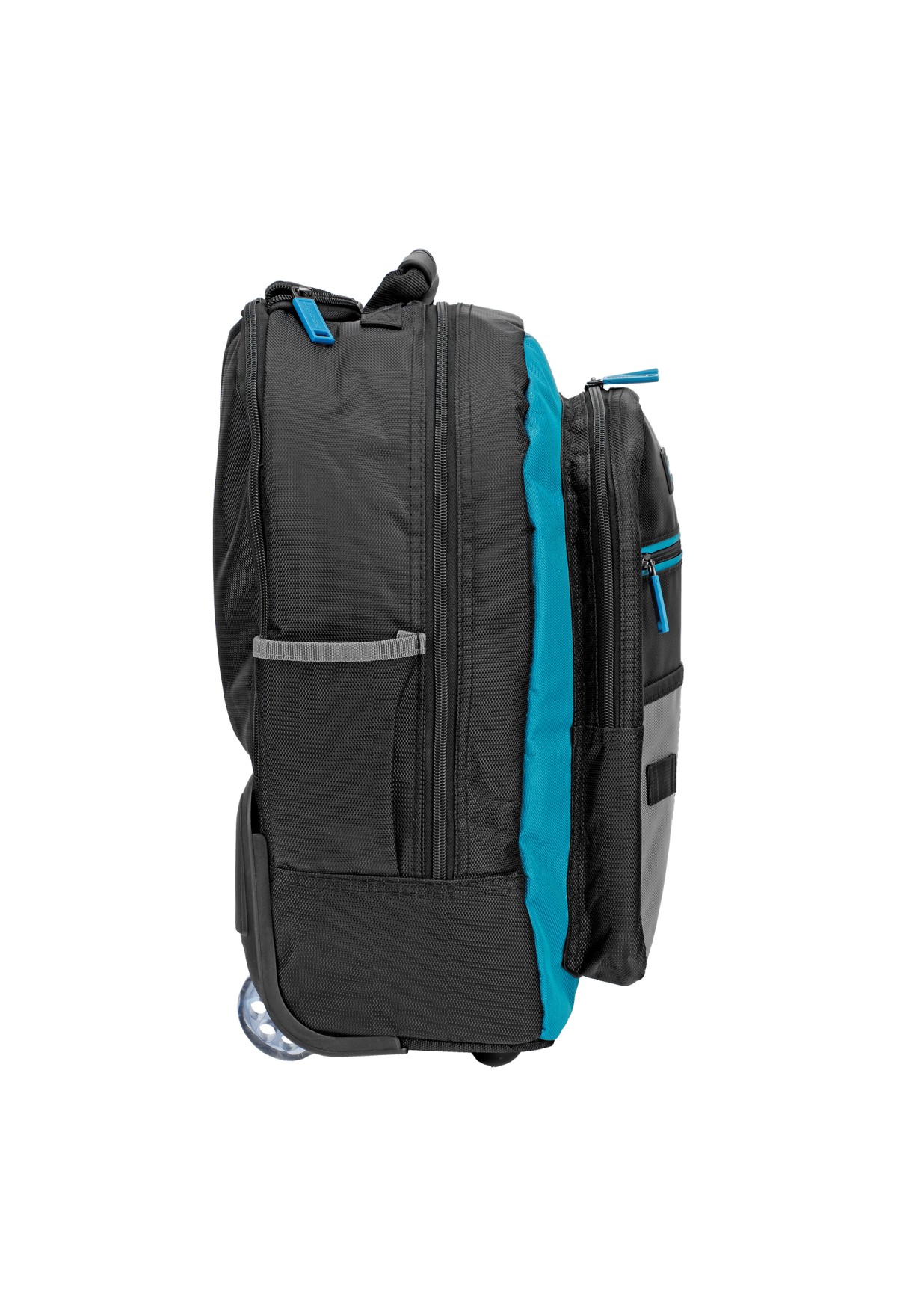 - Удобная транспортировка — колеса и телескопическая ручка облегчают перемещение рюкзака.
